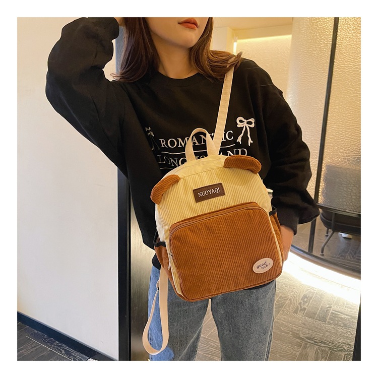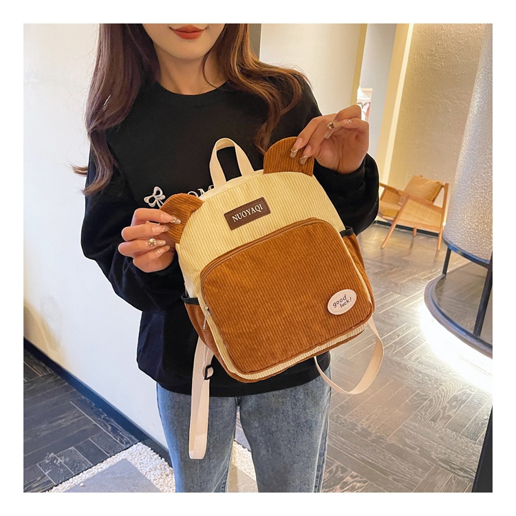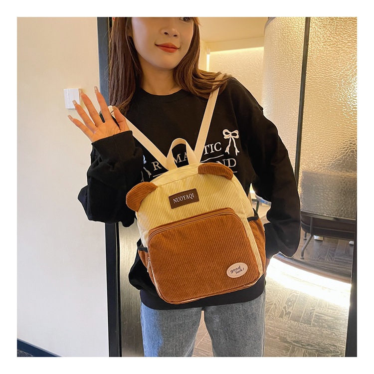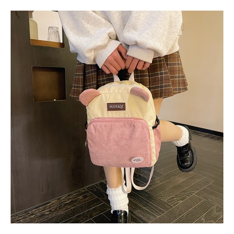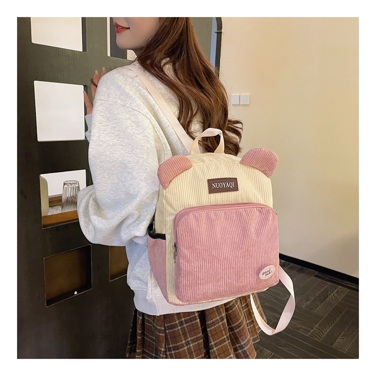 韩版ins高颜值包包女大容量2026新款条绒双肩包时尚可爱背包批发