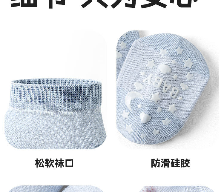 新生婴幼儿宝宝棉A类夏季薄款网眼透气无骨不勒硅胶防滑中筒袜子
