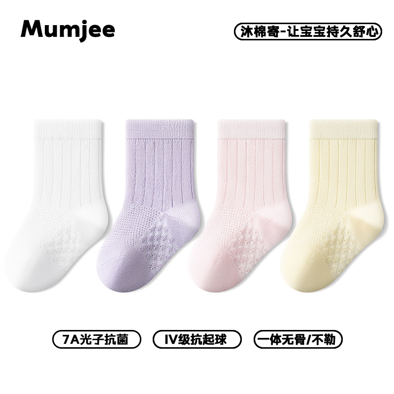 新生婴幼儿男女宝宝棉A类夏季薄款网眼透气无骨不勒松口中筒袜子