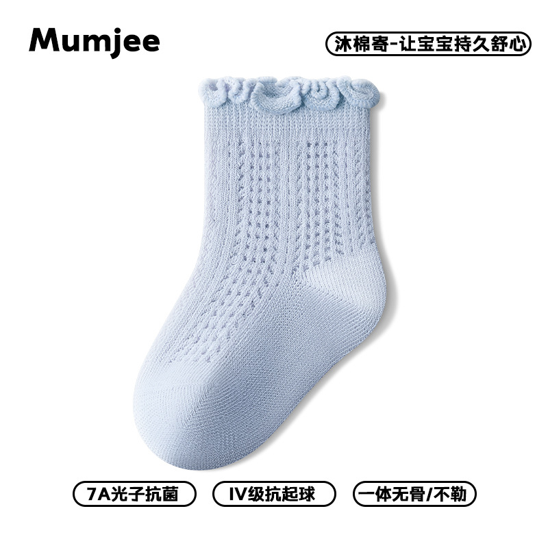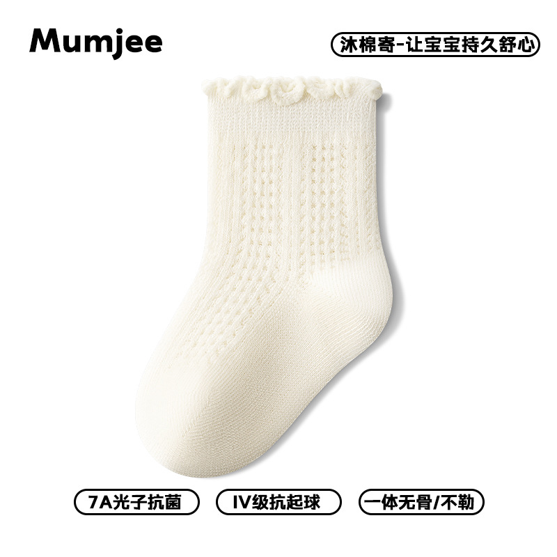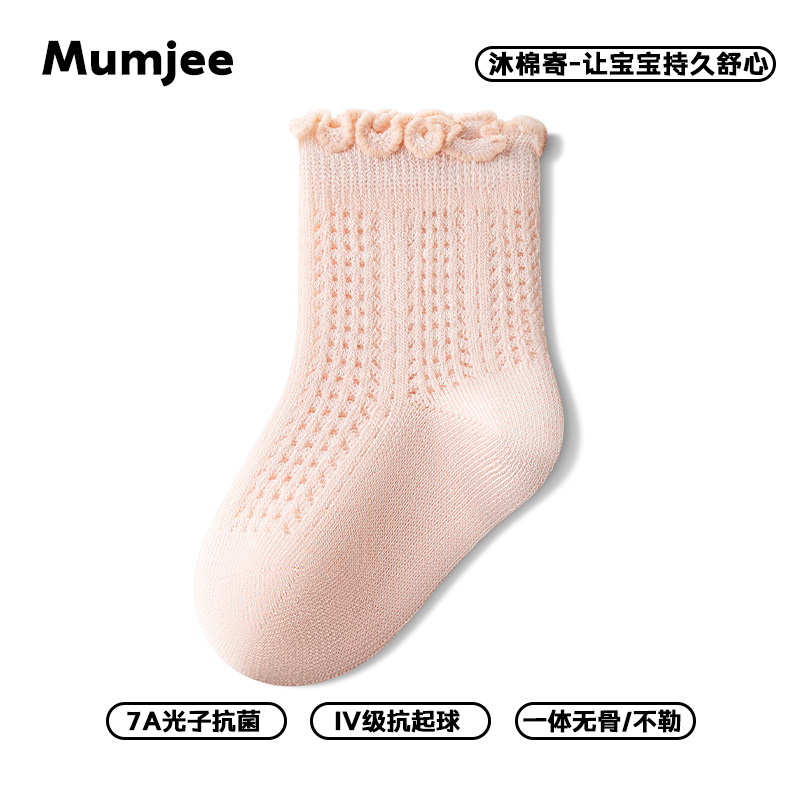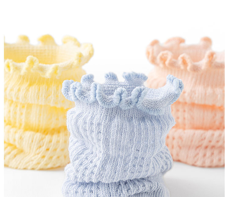 新生婴幼儿女宝宝棉A类夏季薄款网眼透气无骨木耳花边中筒袜子长