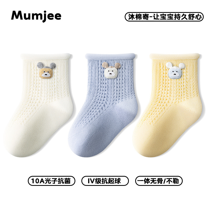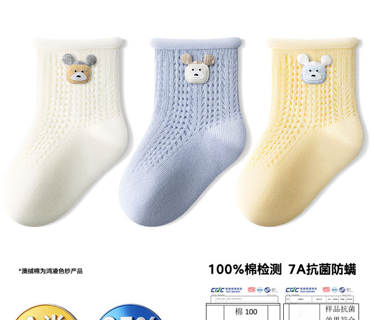 新生婴幼儿男女宝宝棉A类夏季薄款网眼透气无骨不勒松口中筒袜子