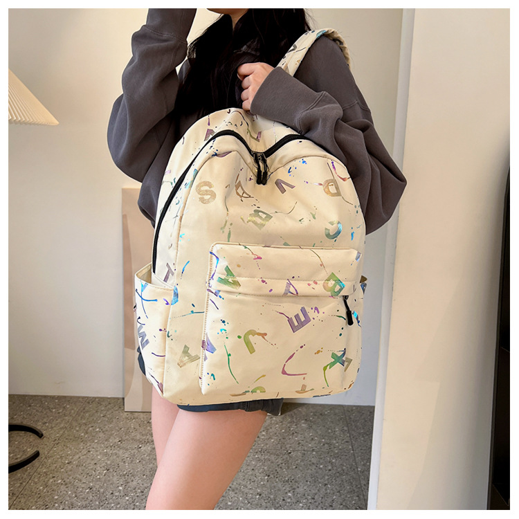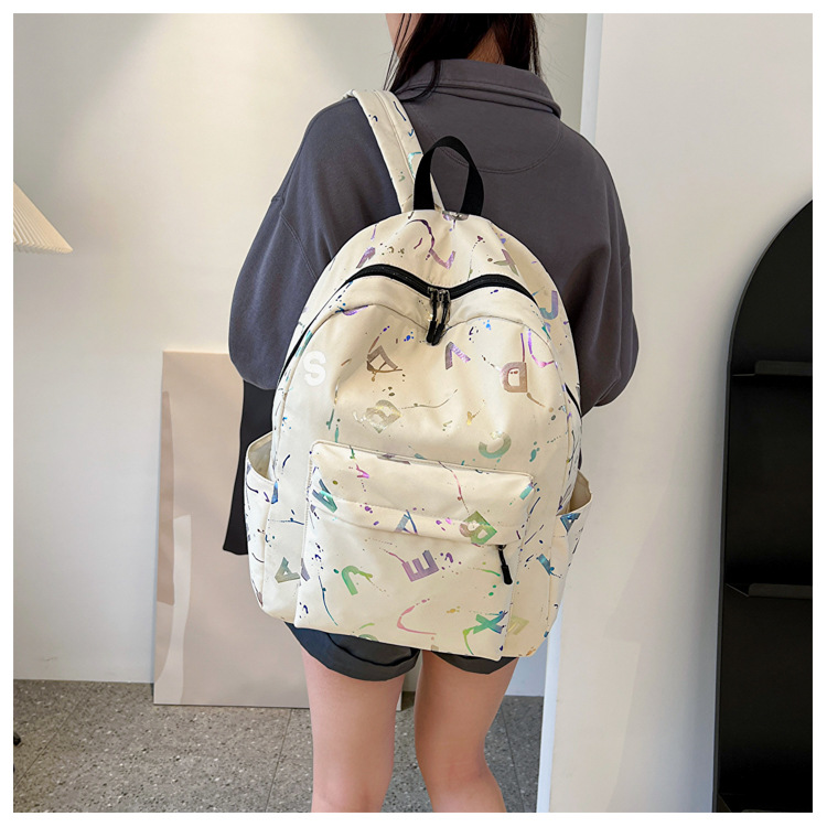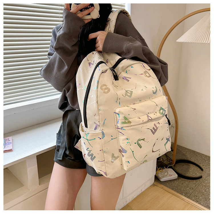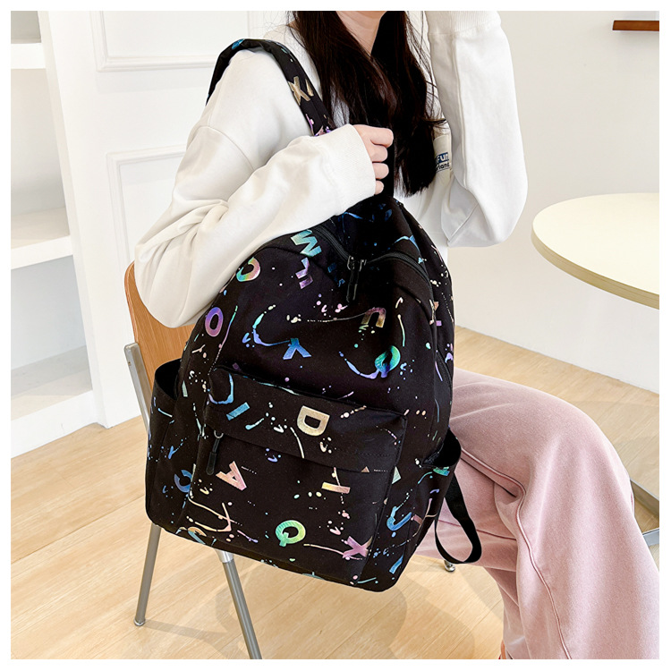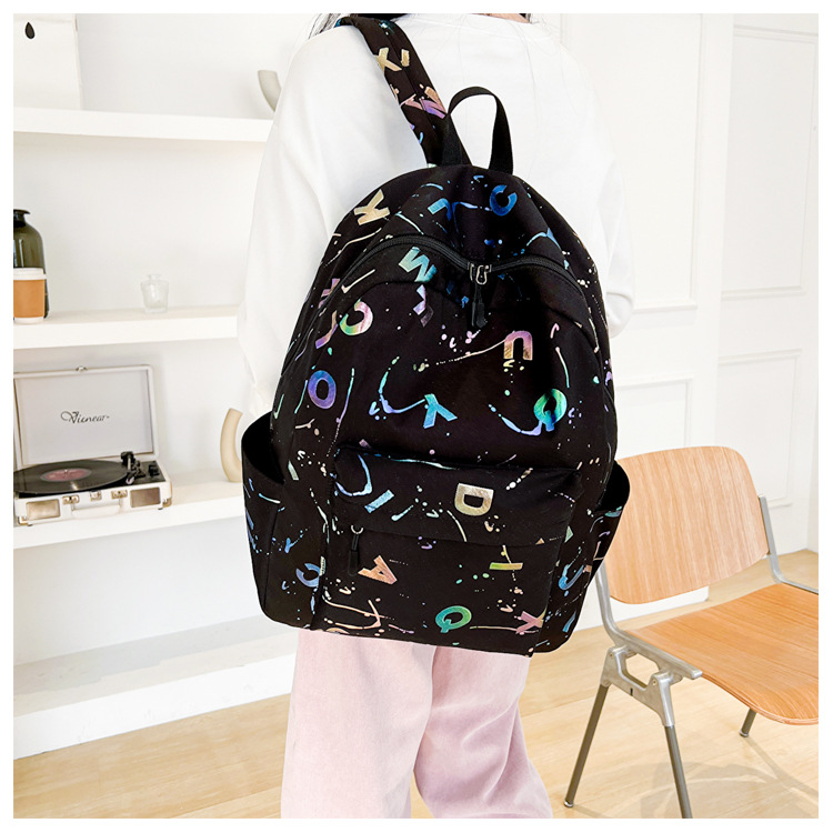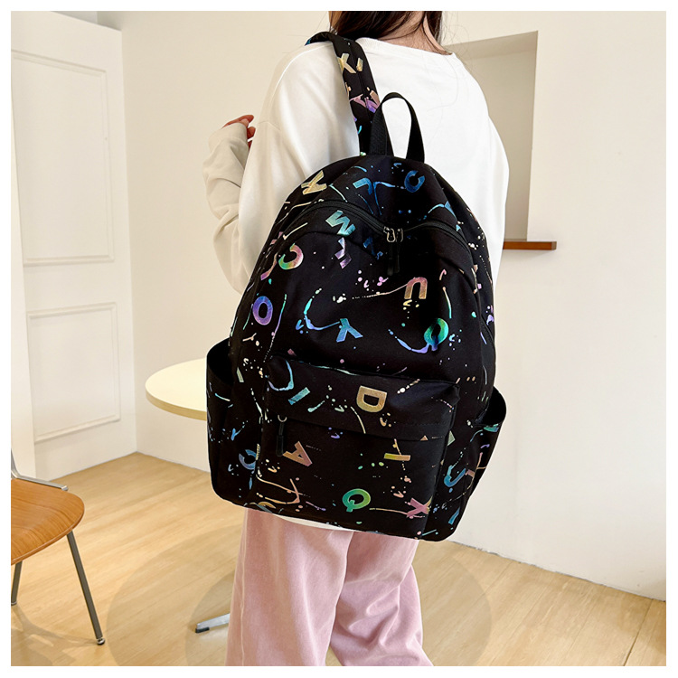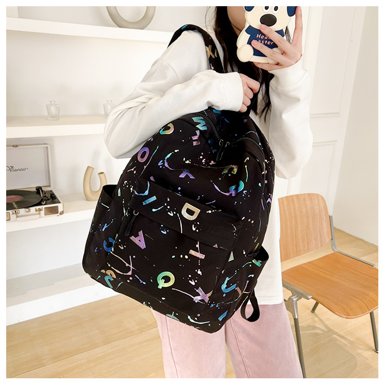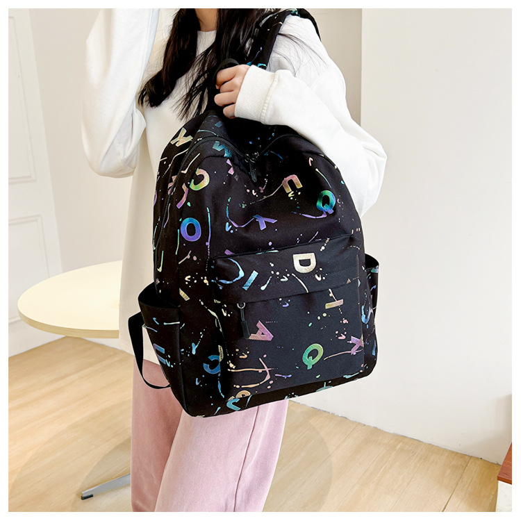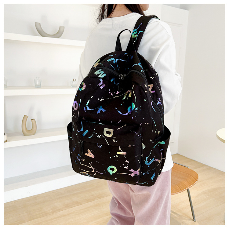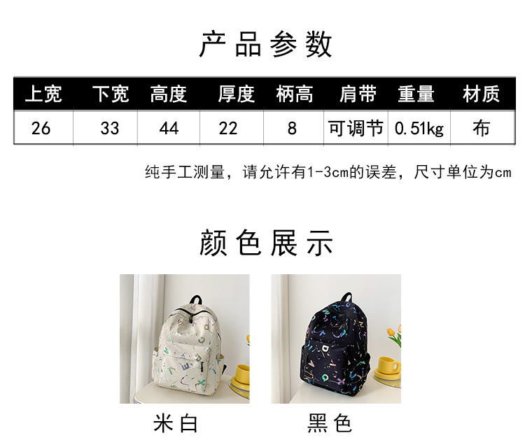 印花双肩包女韩版中学生书包简约大容量旅行背包休闲初高中生书包