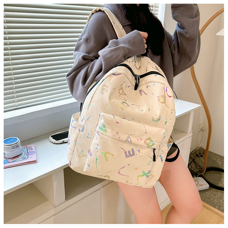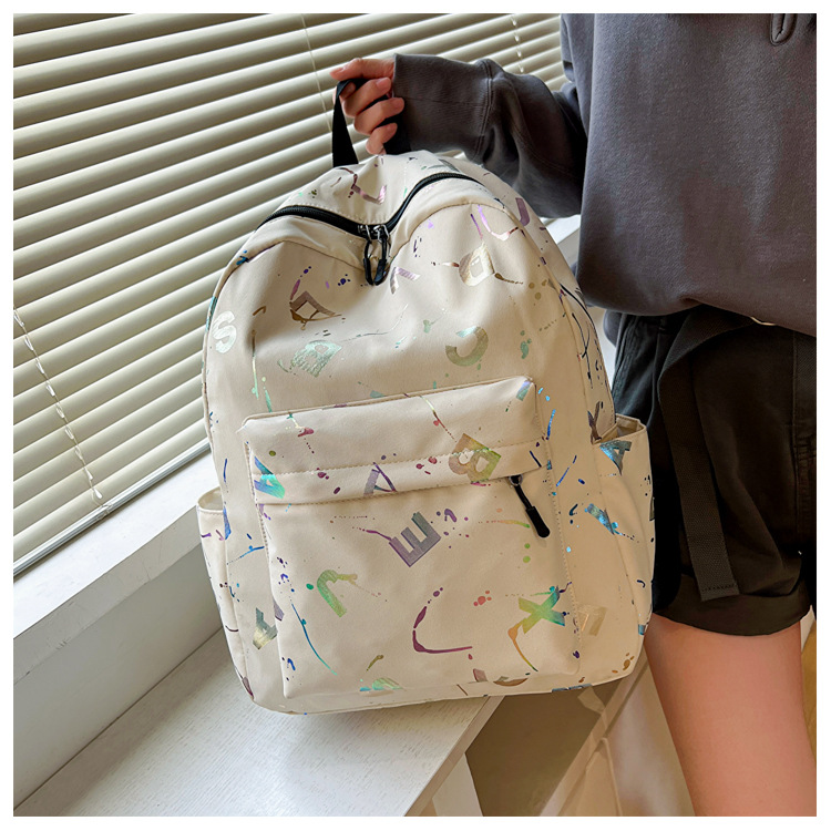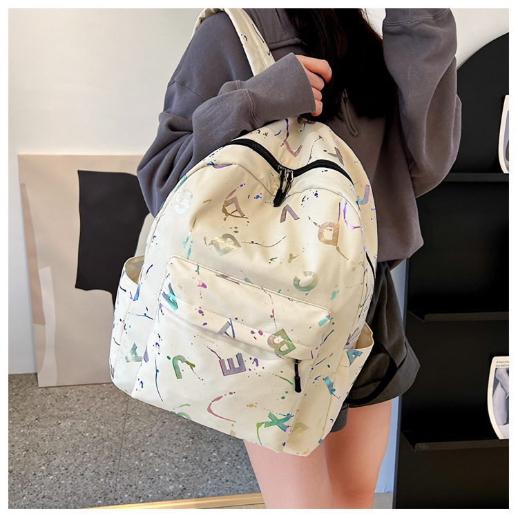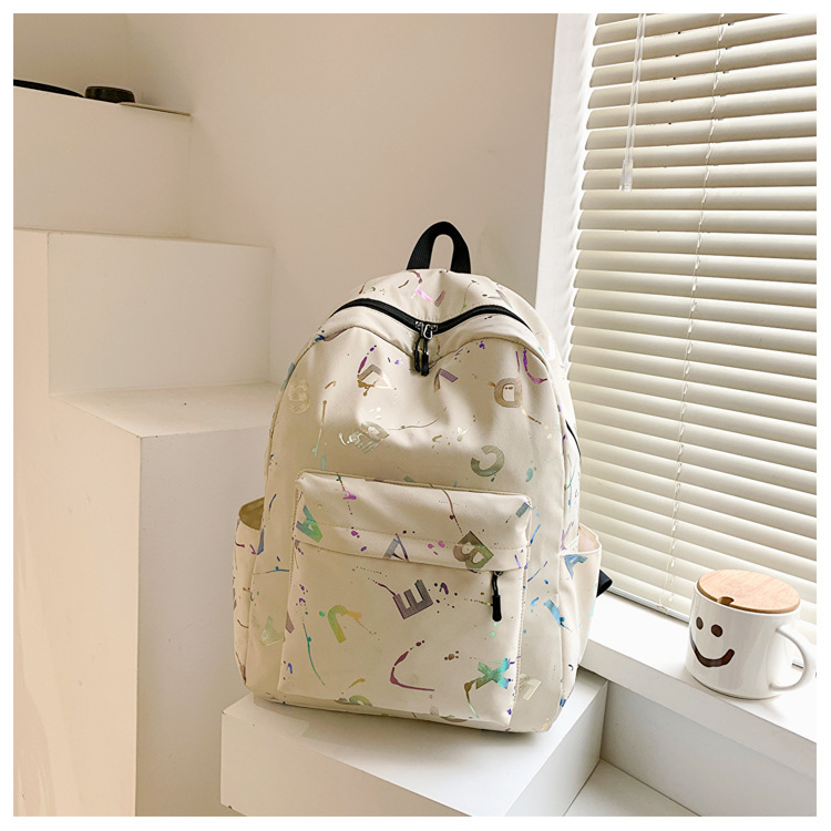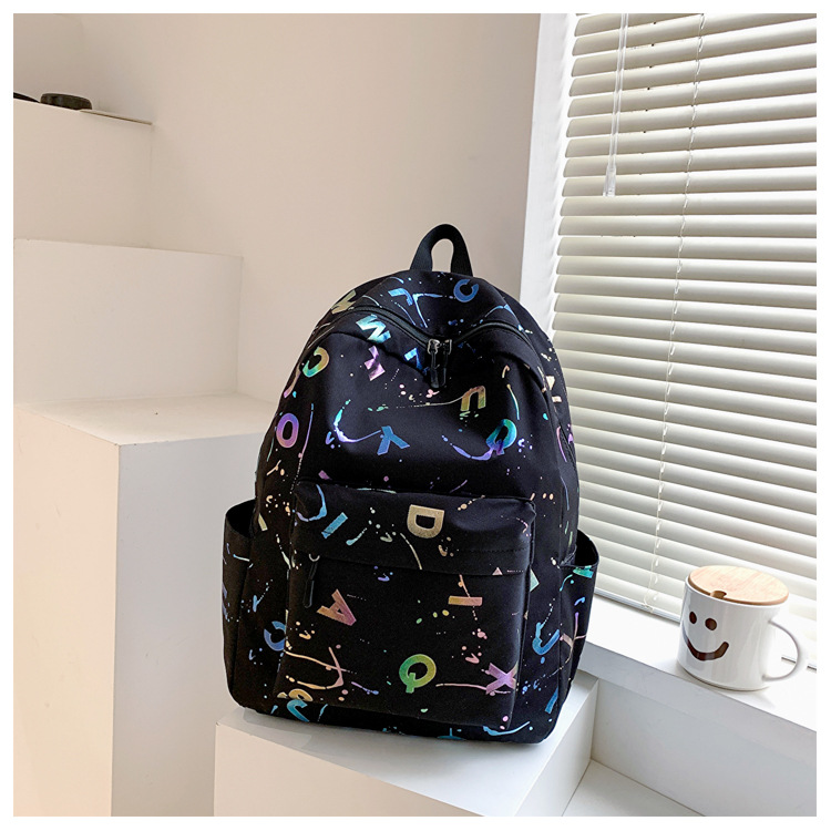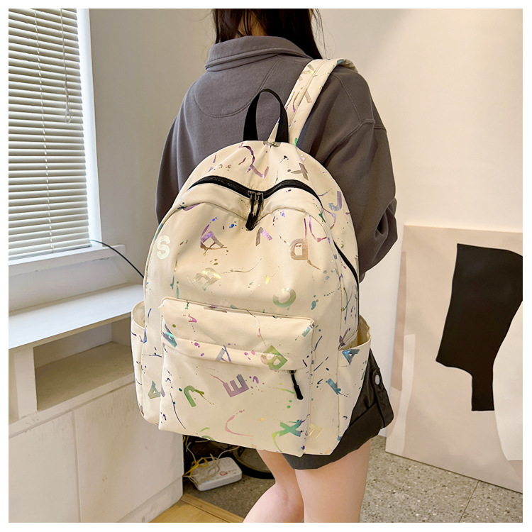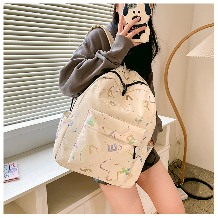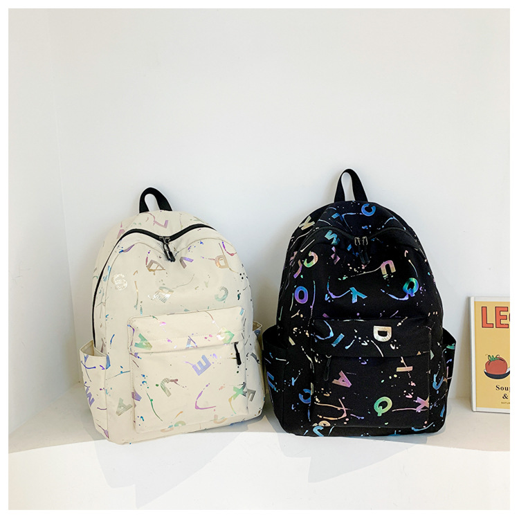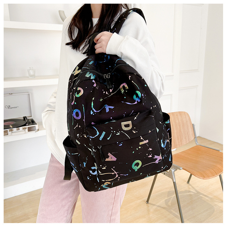 印花双肩包女韩版中学生书包简约大容量旅行背包休闲初高中生书包