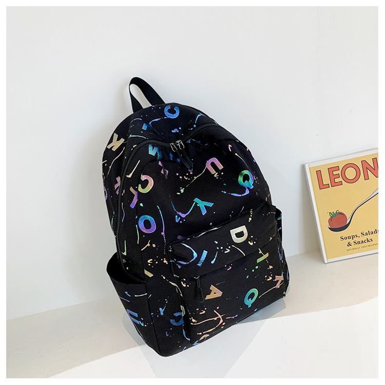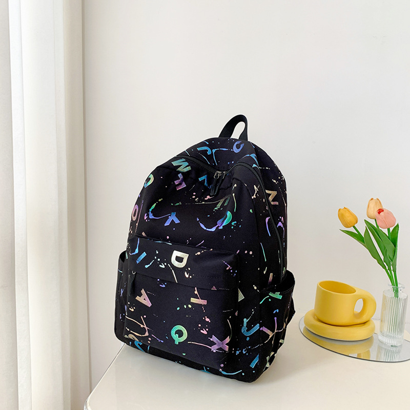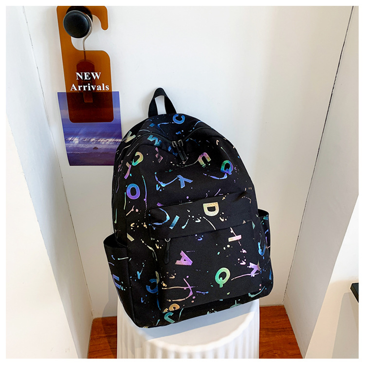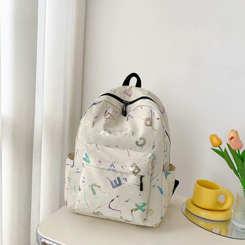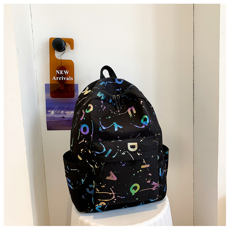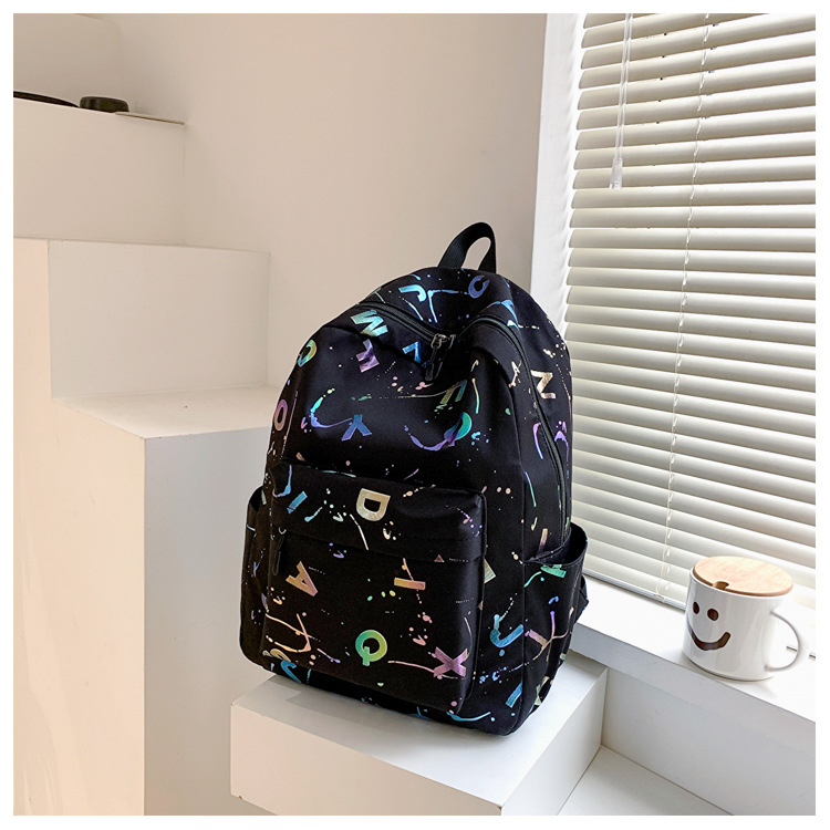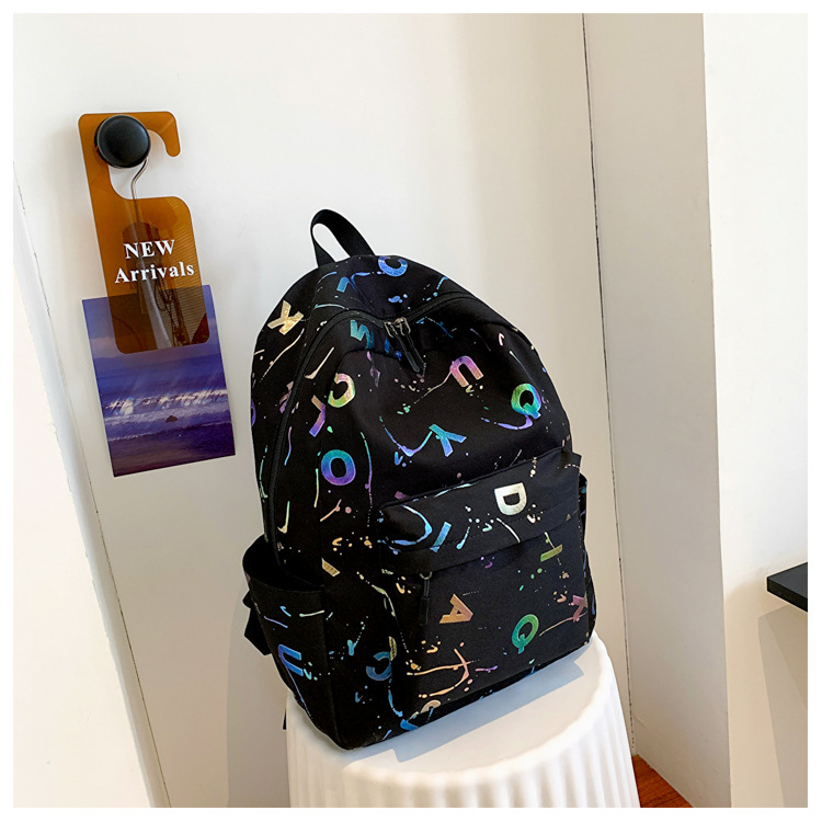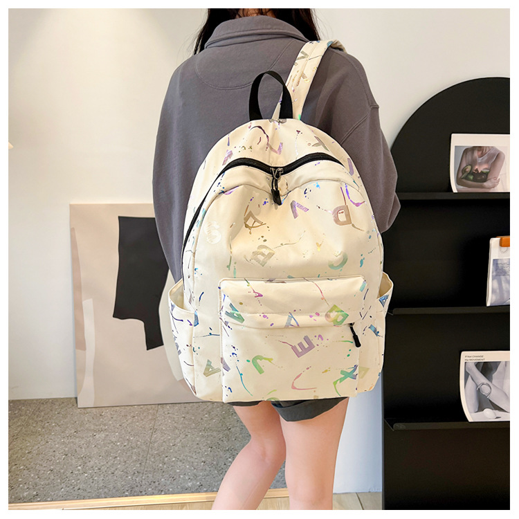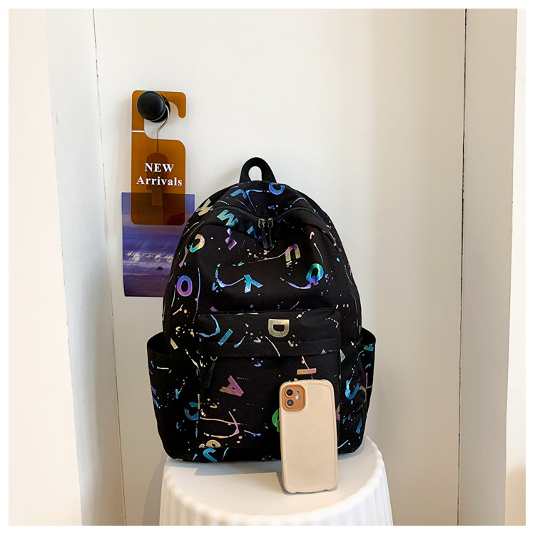 印花双肩包女韩版中学生书包简约大容量旅行背包休闲初高中生书包