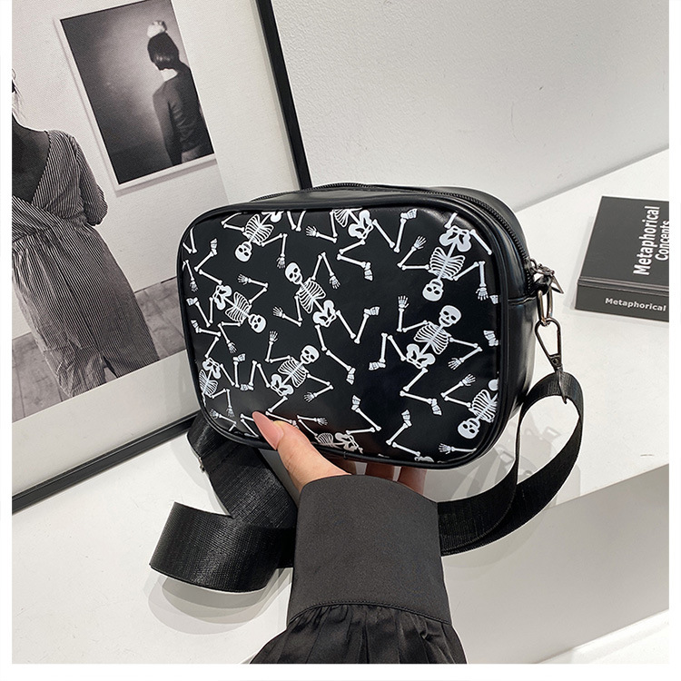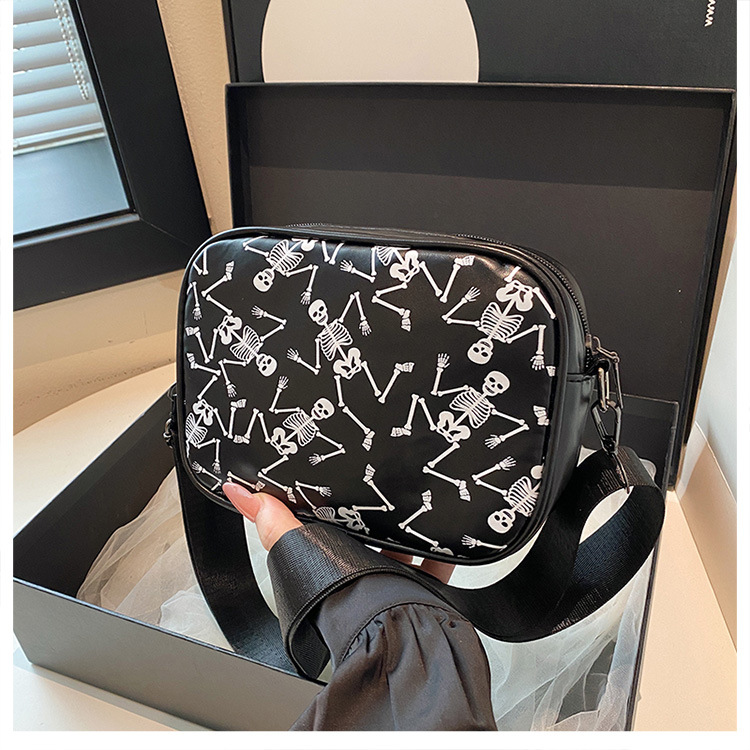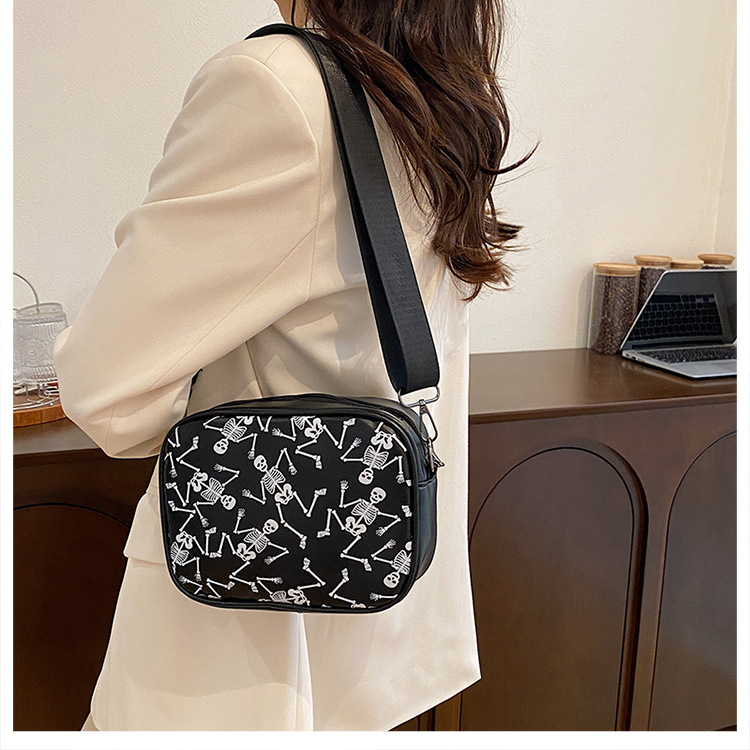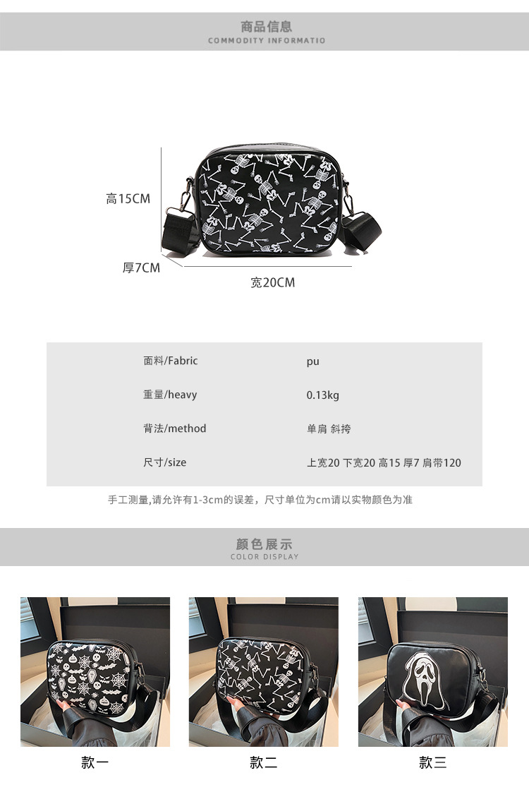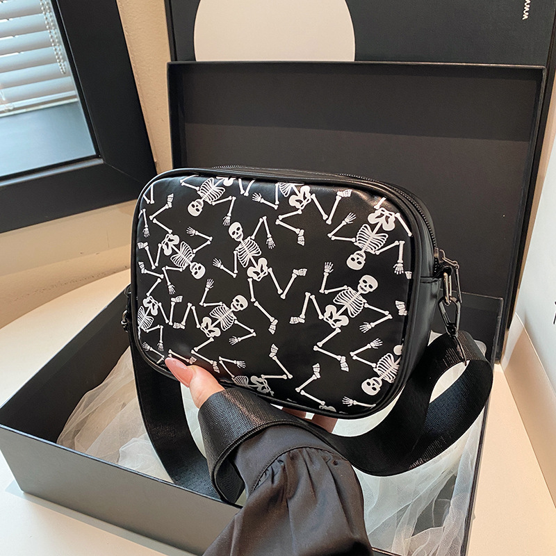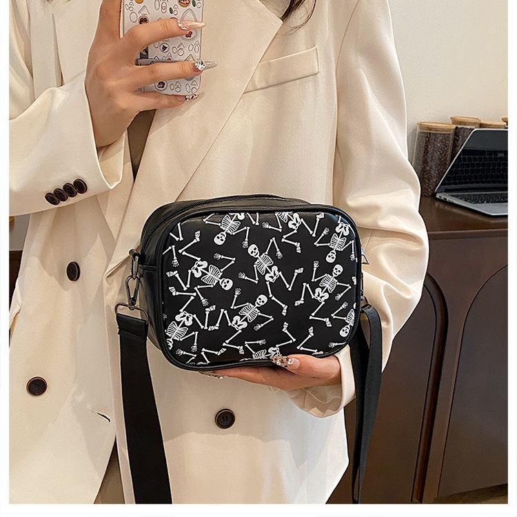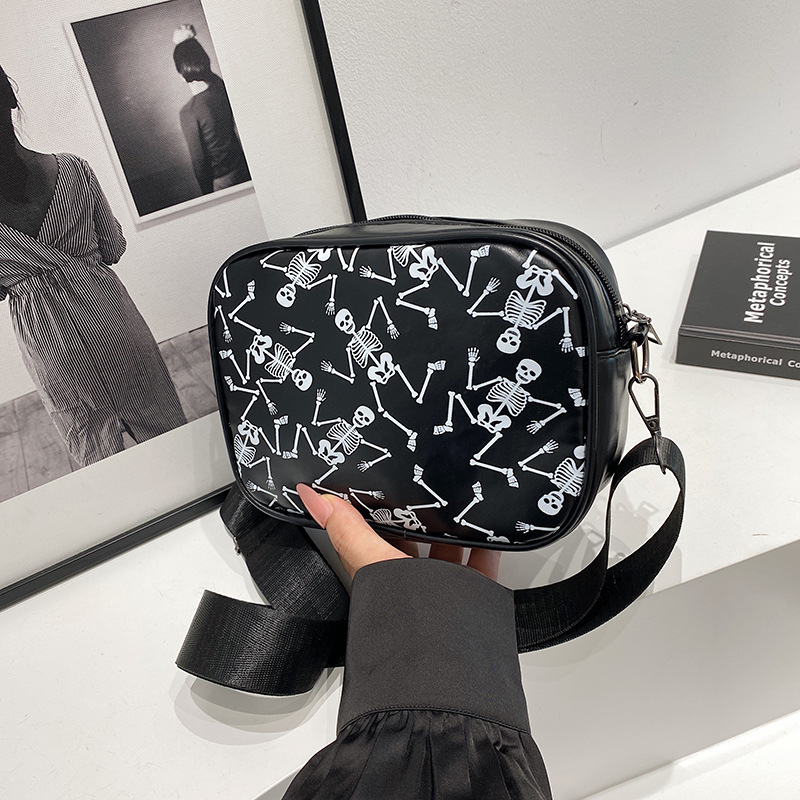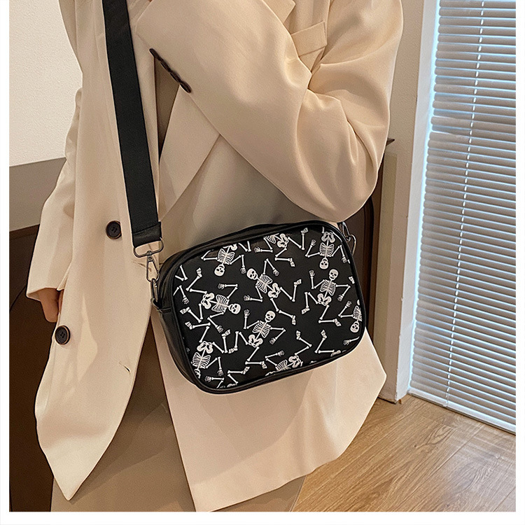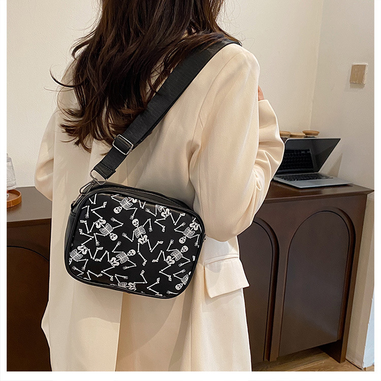 万圣节骷髅图案小方包2026春季新款韩版小众设计个性流行单肩包包