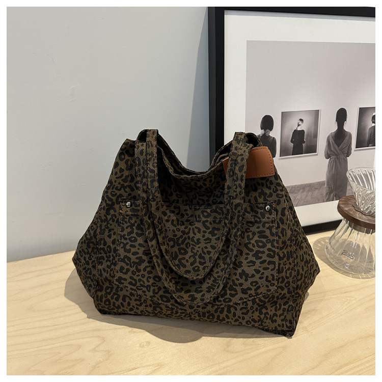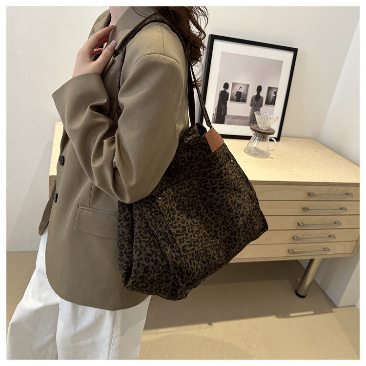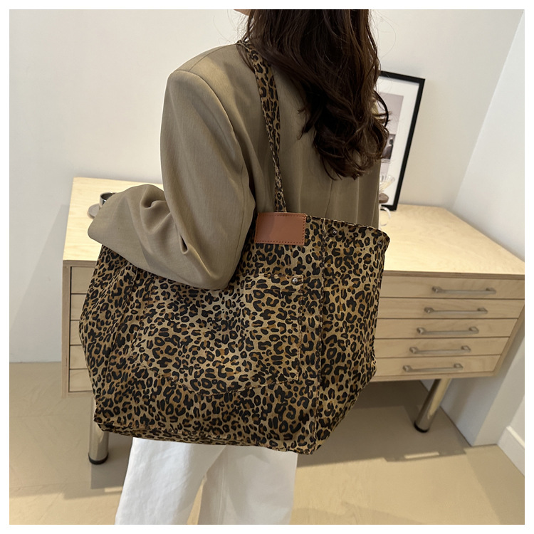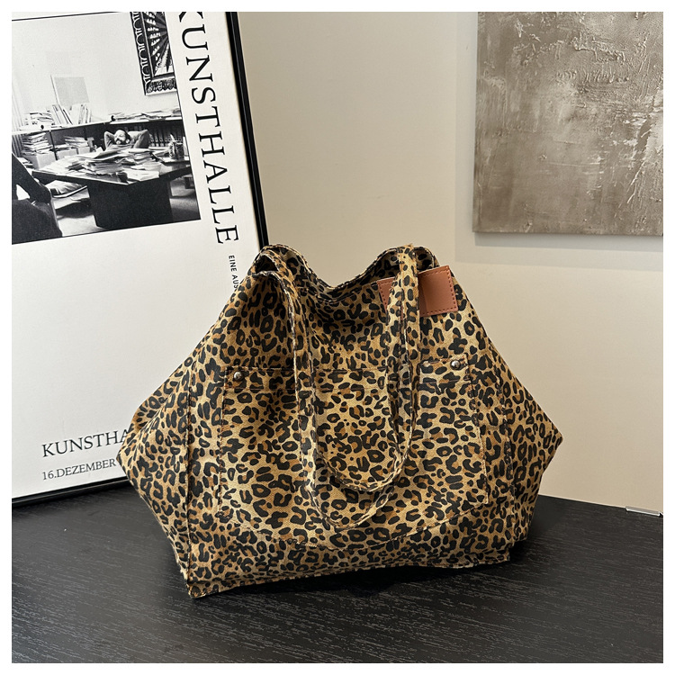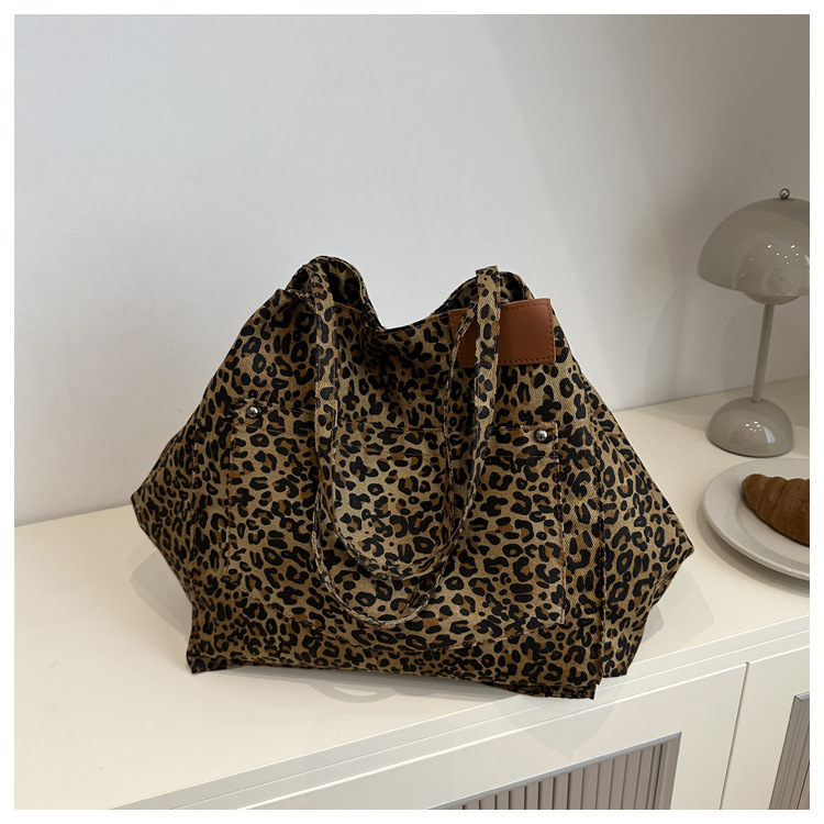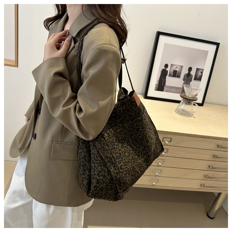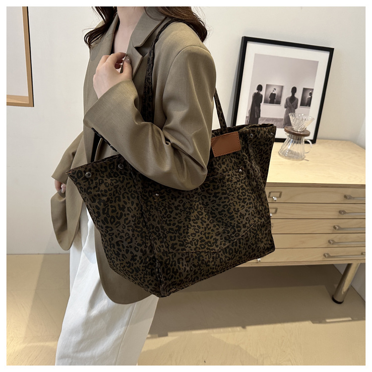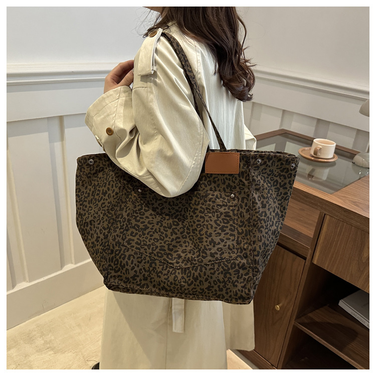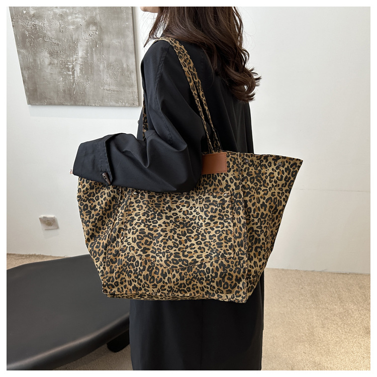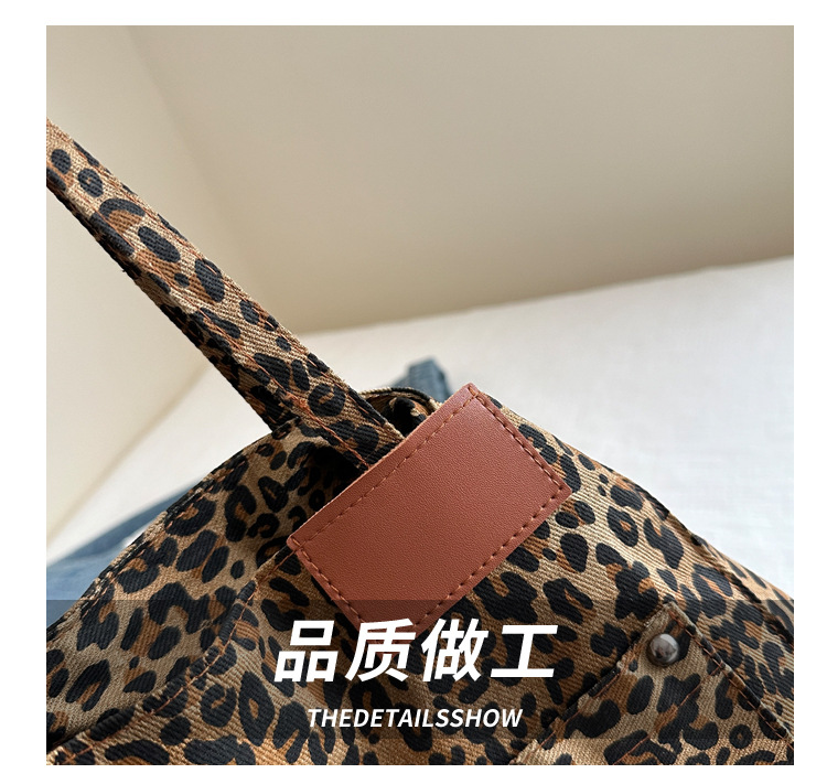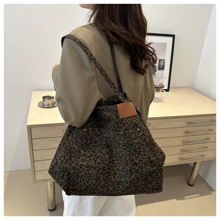 2026豹纹帆布单肩包大容量托特包包女旅行手提大包复古印花女包