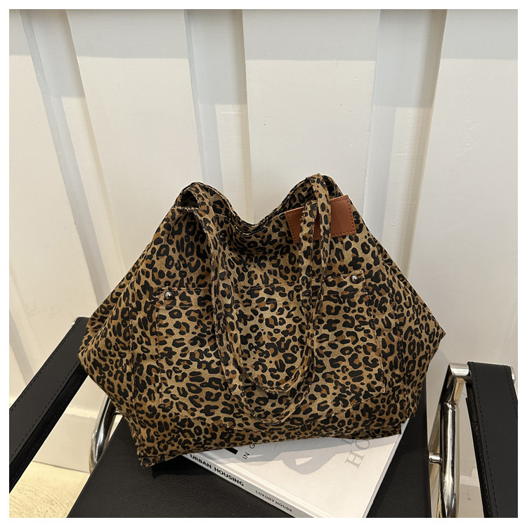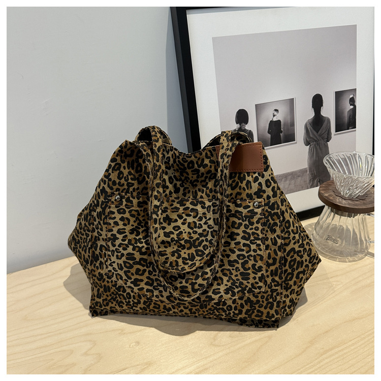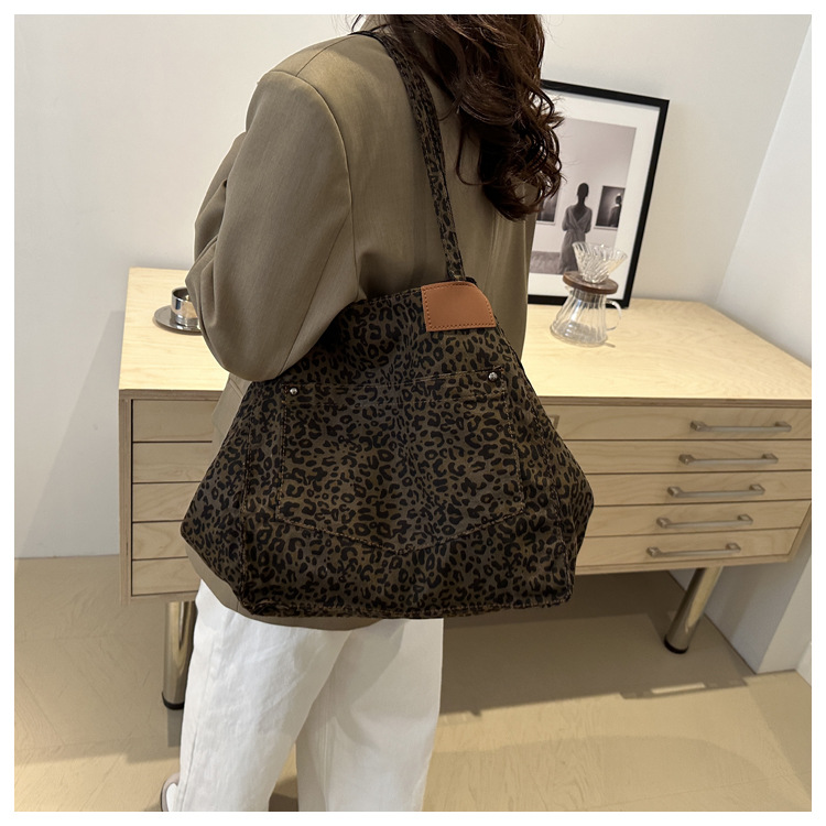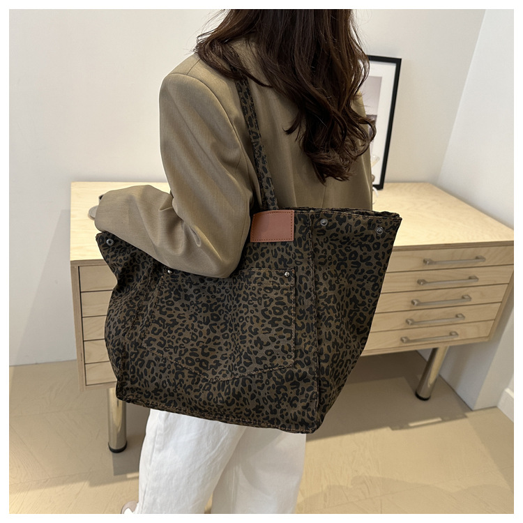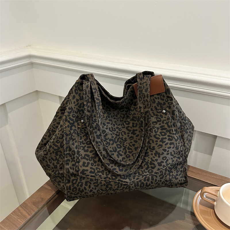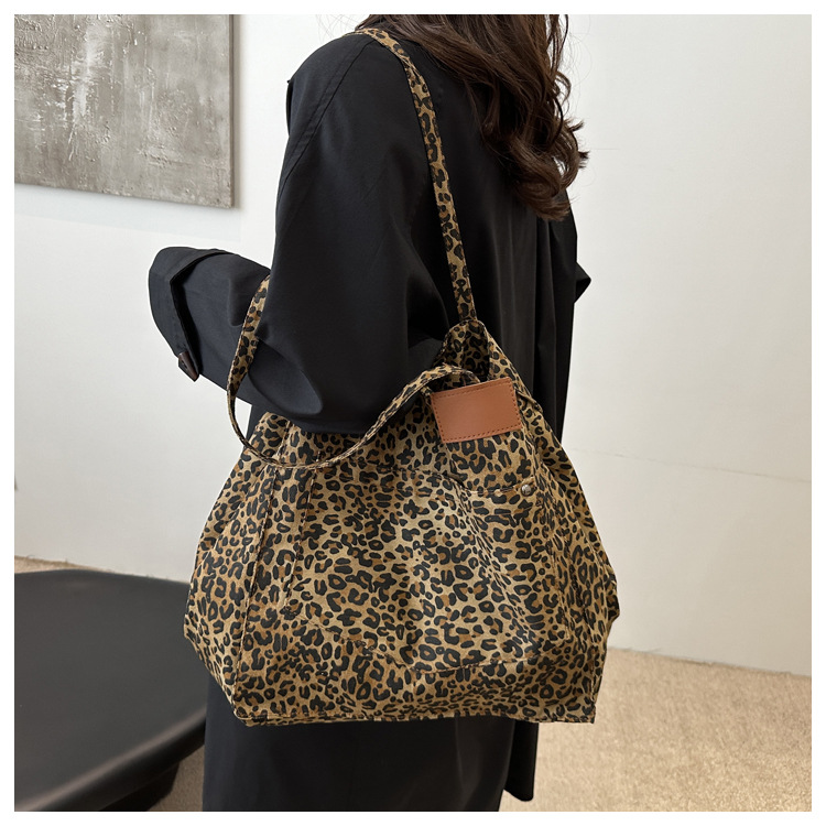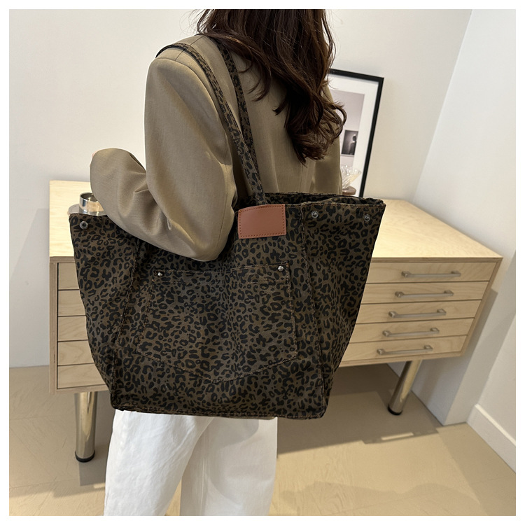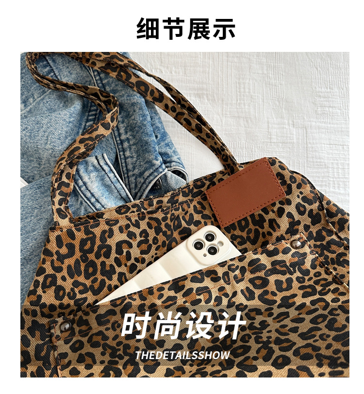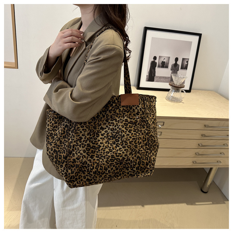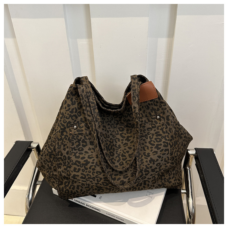 2026豹纹帆布单肩包大容量托特包包女旅行手提大包复古印花女包