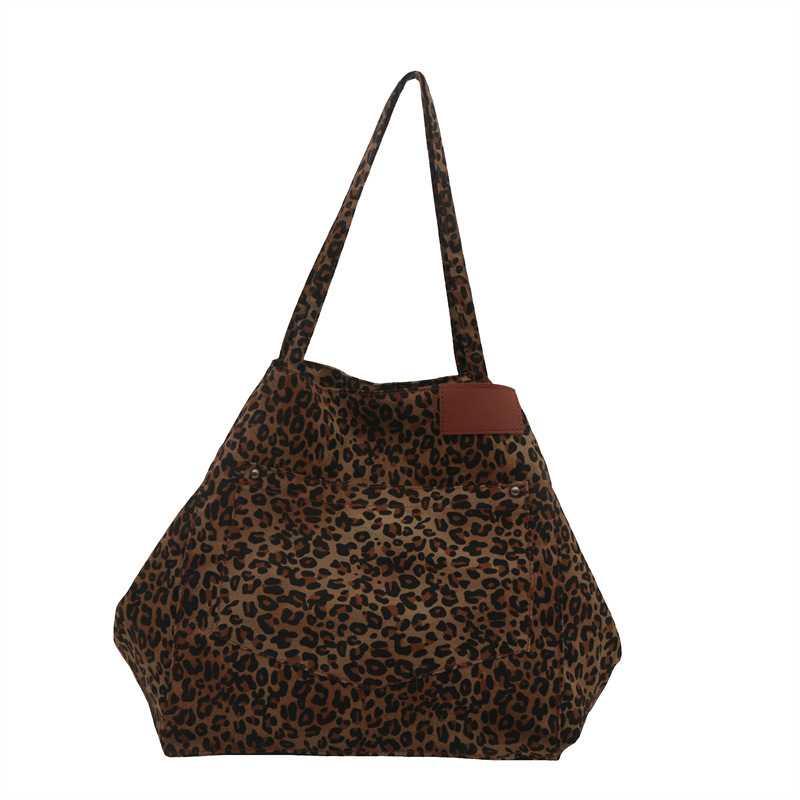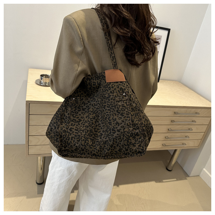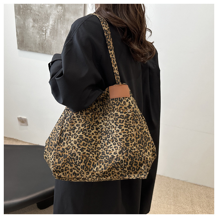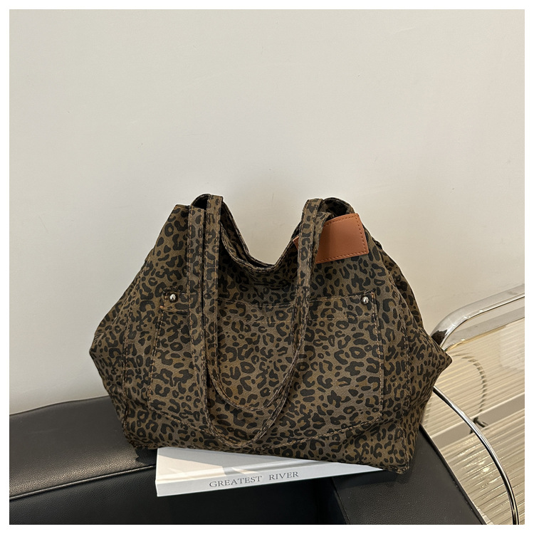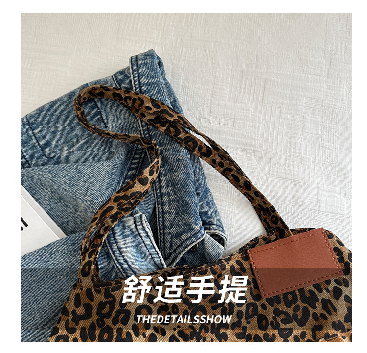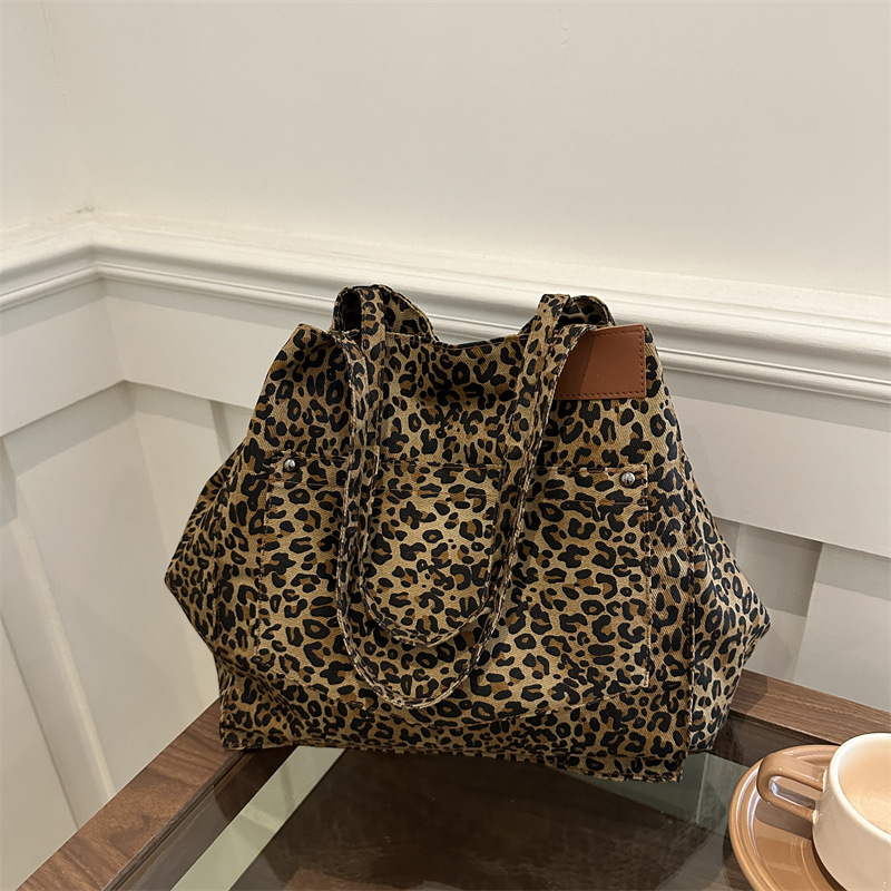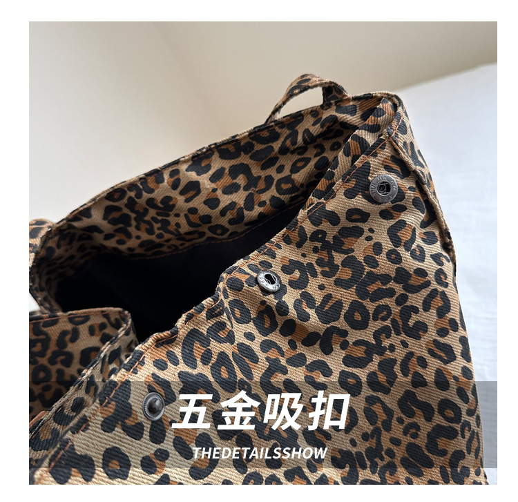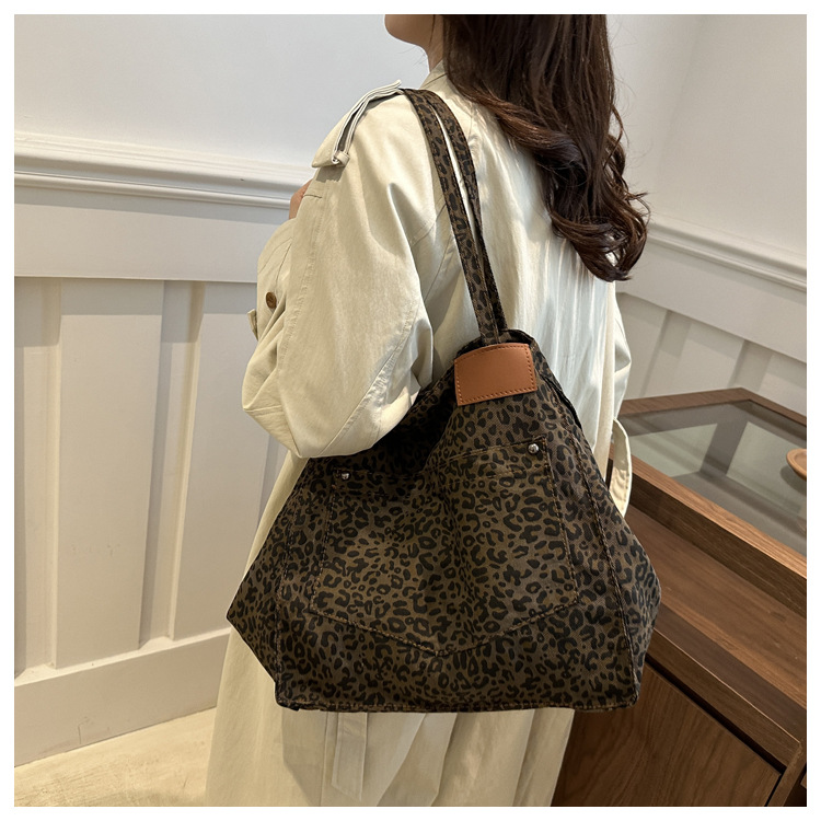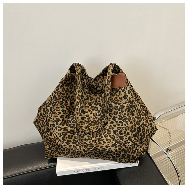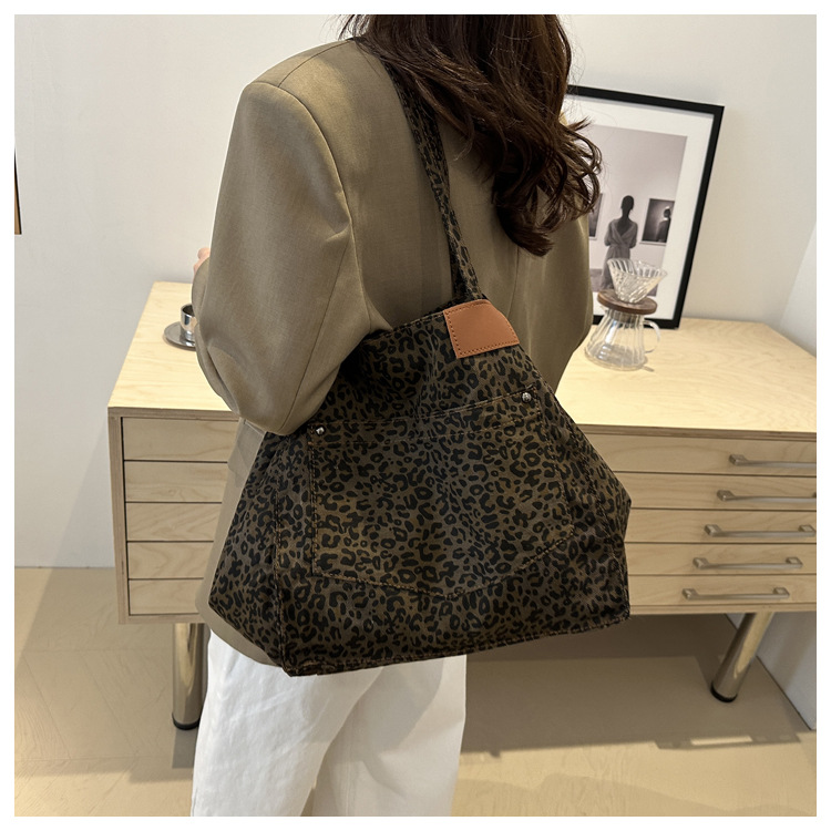 2026豹纹帆布单肩包大容量托特包包女旅行手提大包复古印花女包