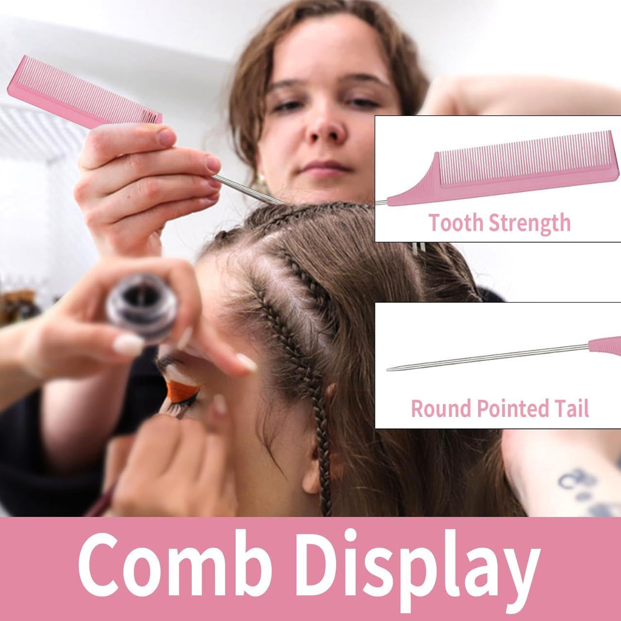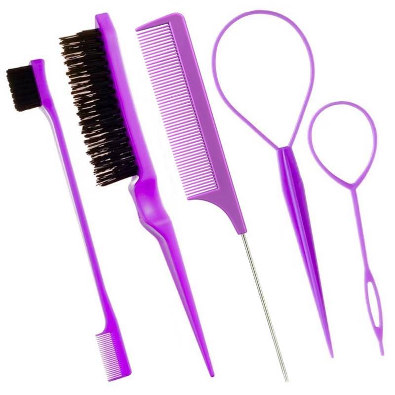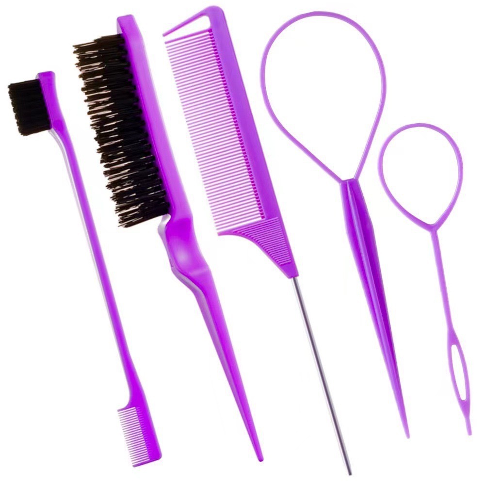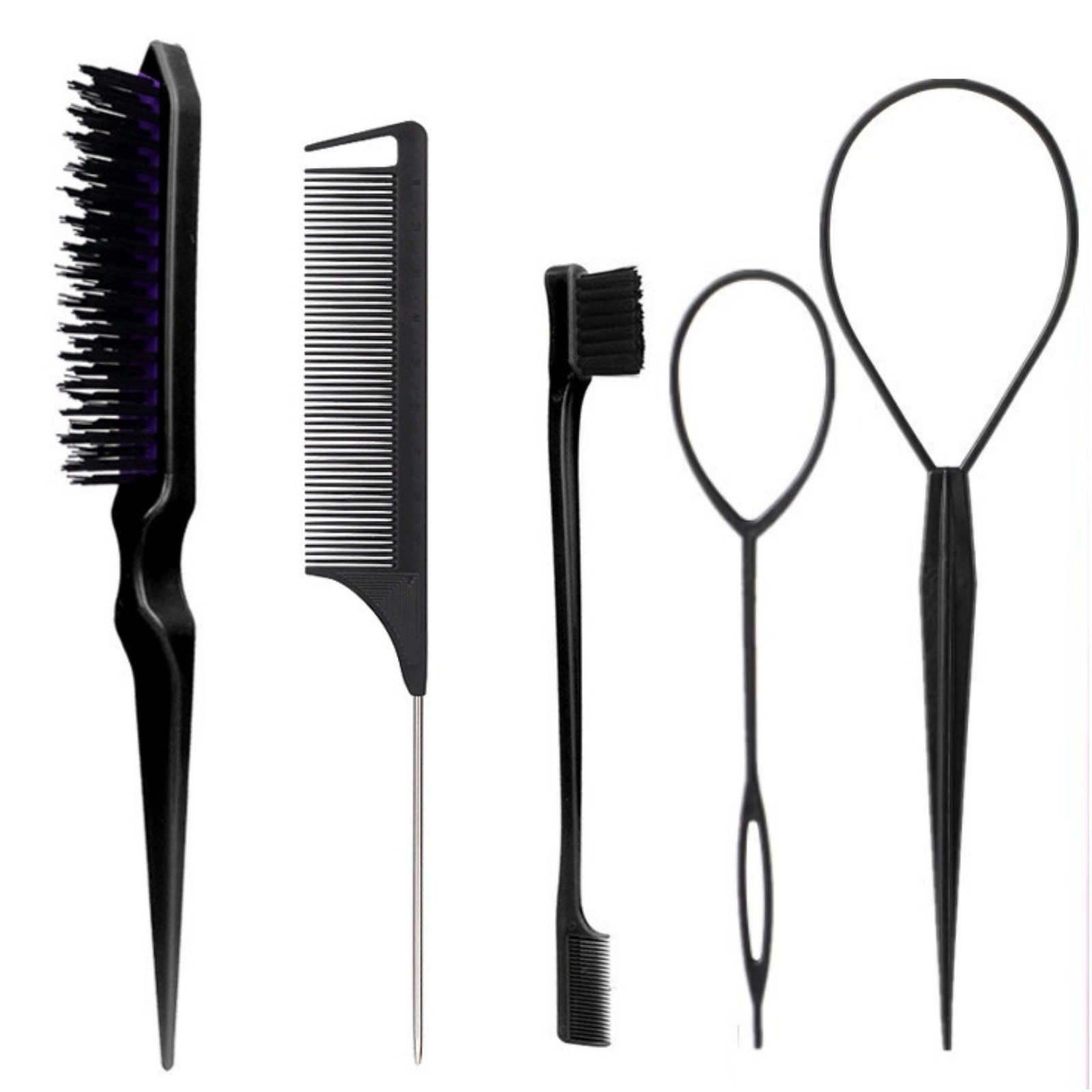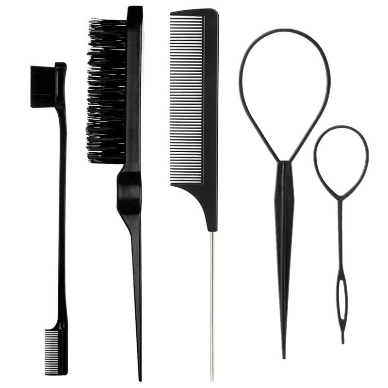 跨境爆款双头眉刷挑染钢针尖尾梳掏发器盘发打毛梳美发工具套装