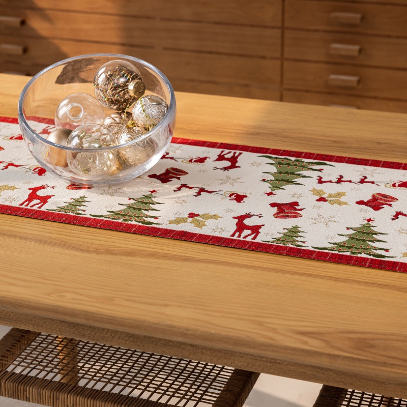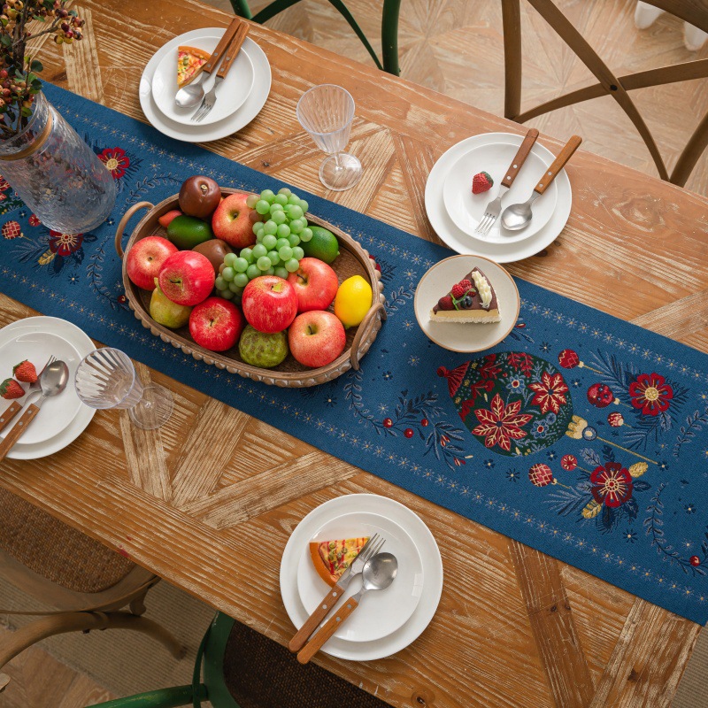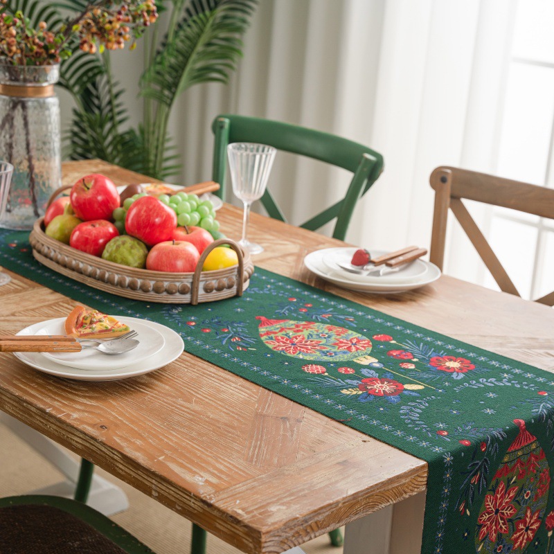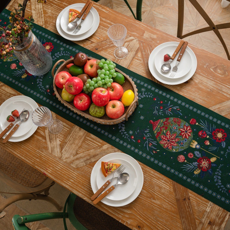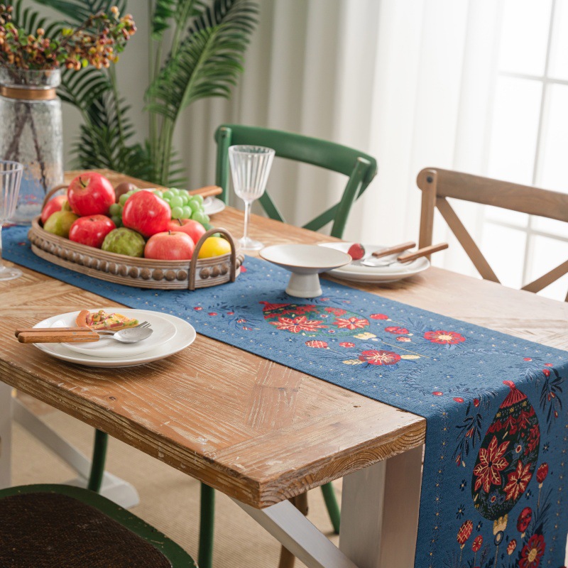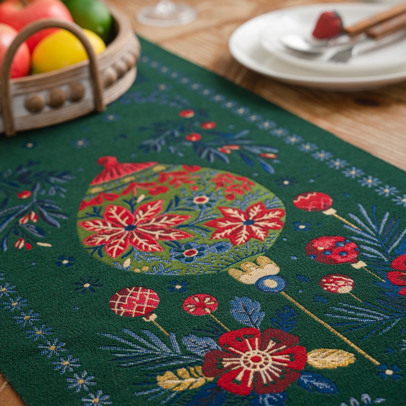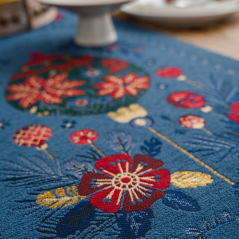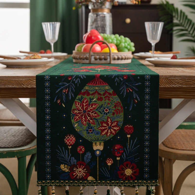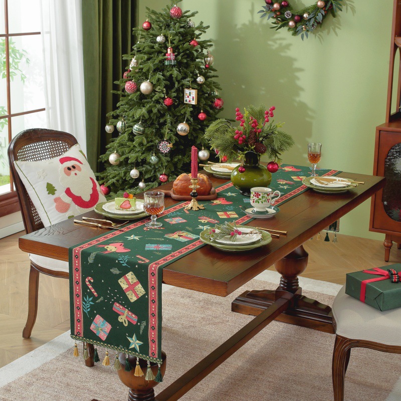 新款外贸跨境圣诞桌旗雪花餐厅装饰餐旗流苏提花餐柜盖巾床尾旗