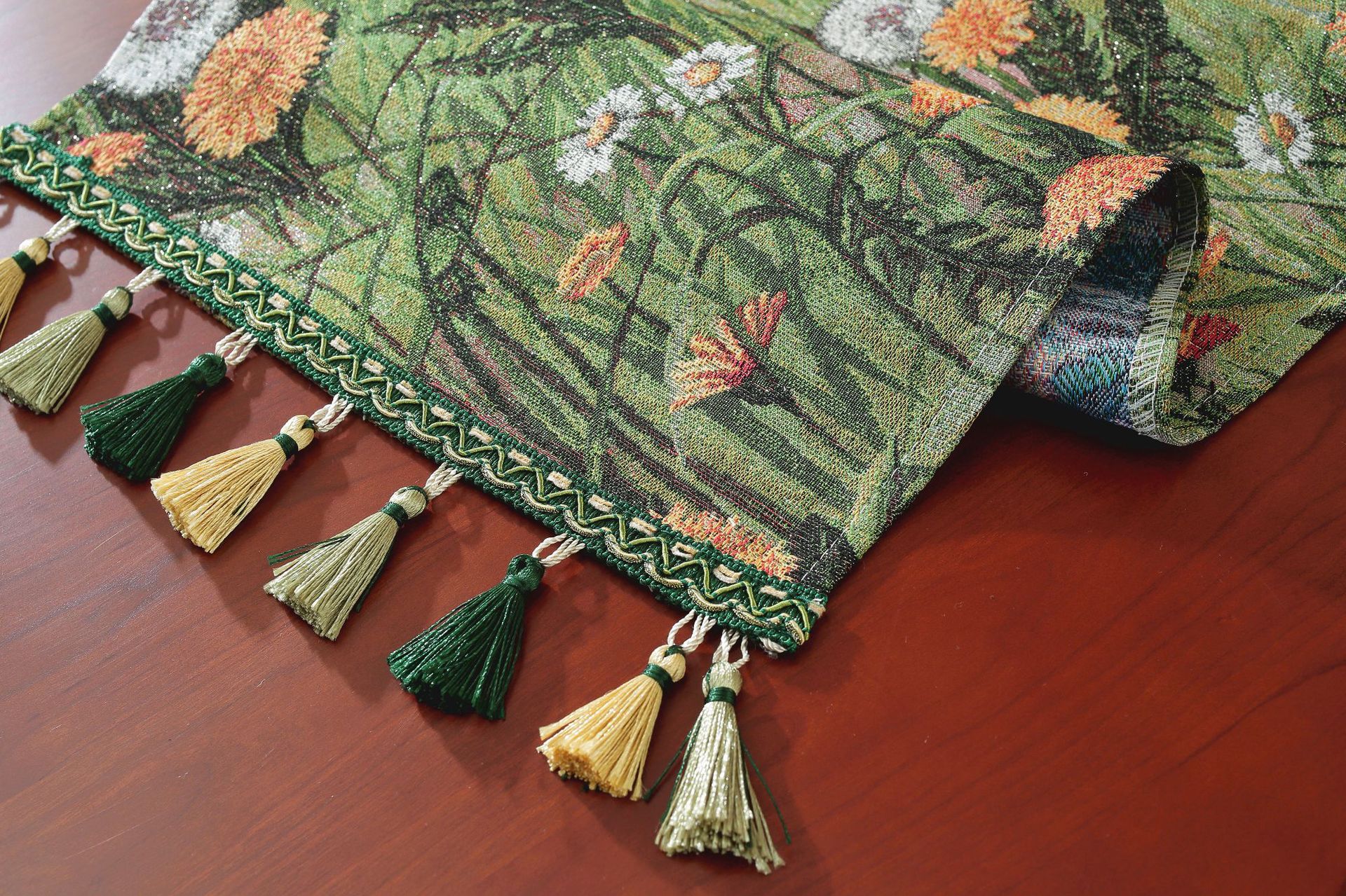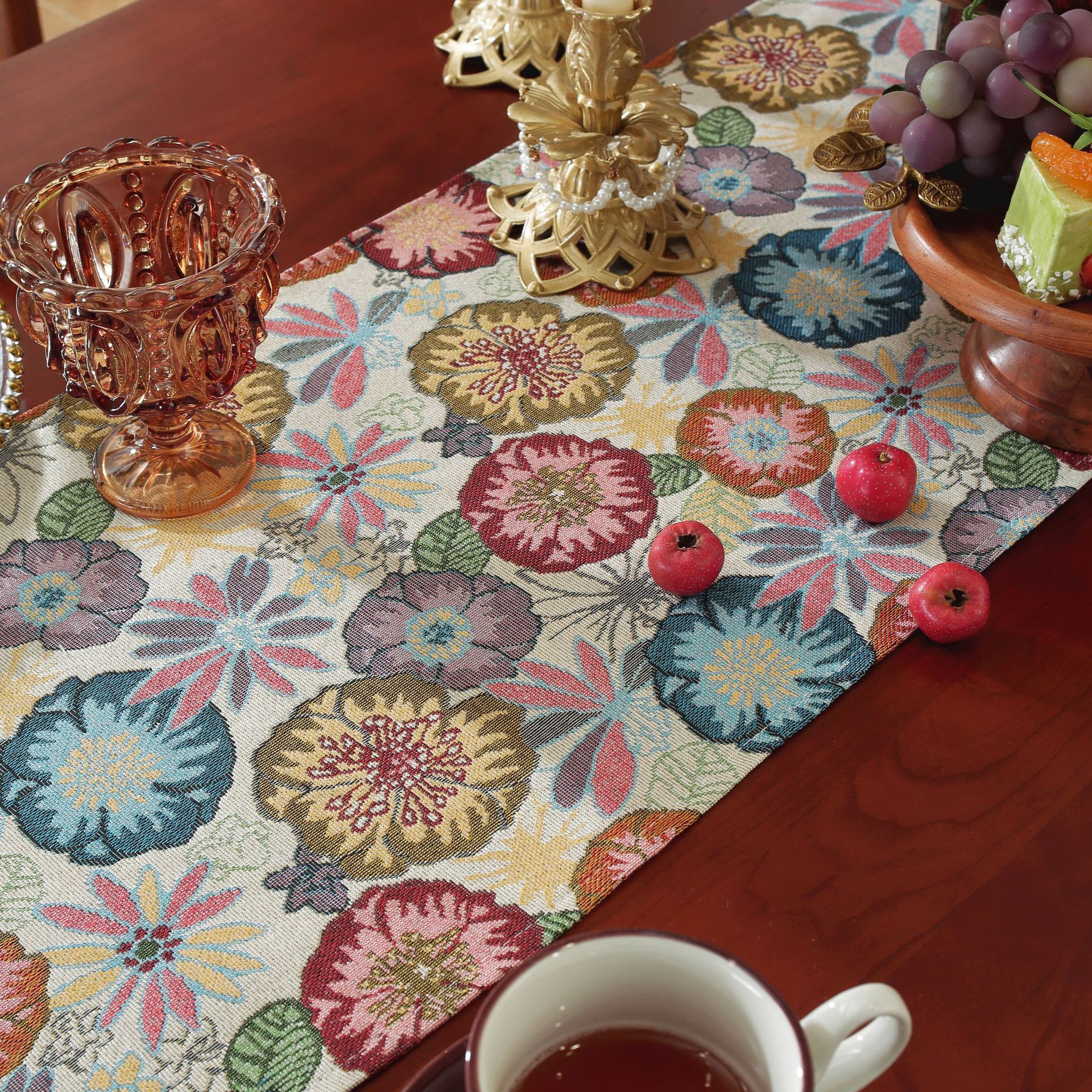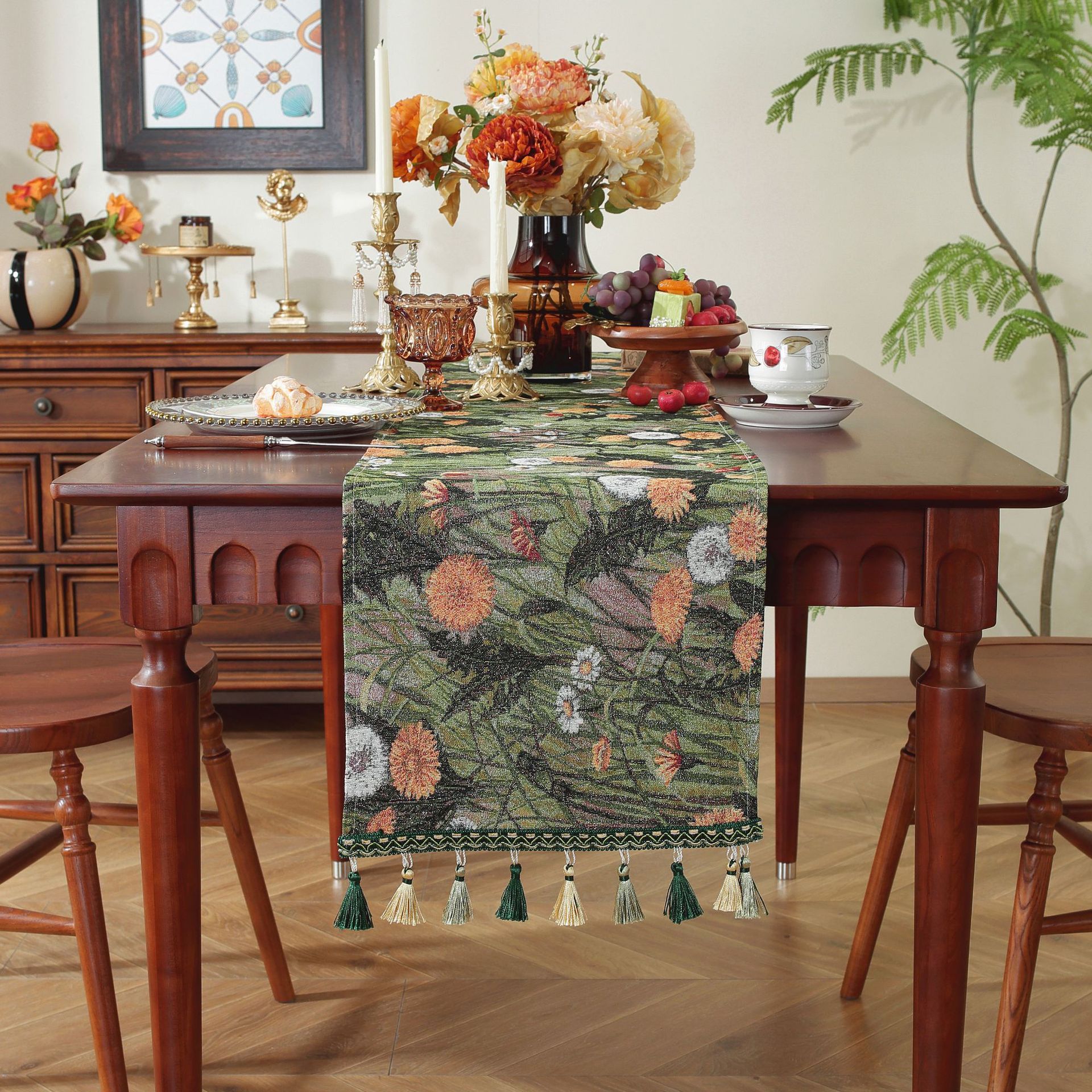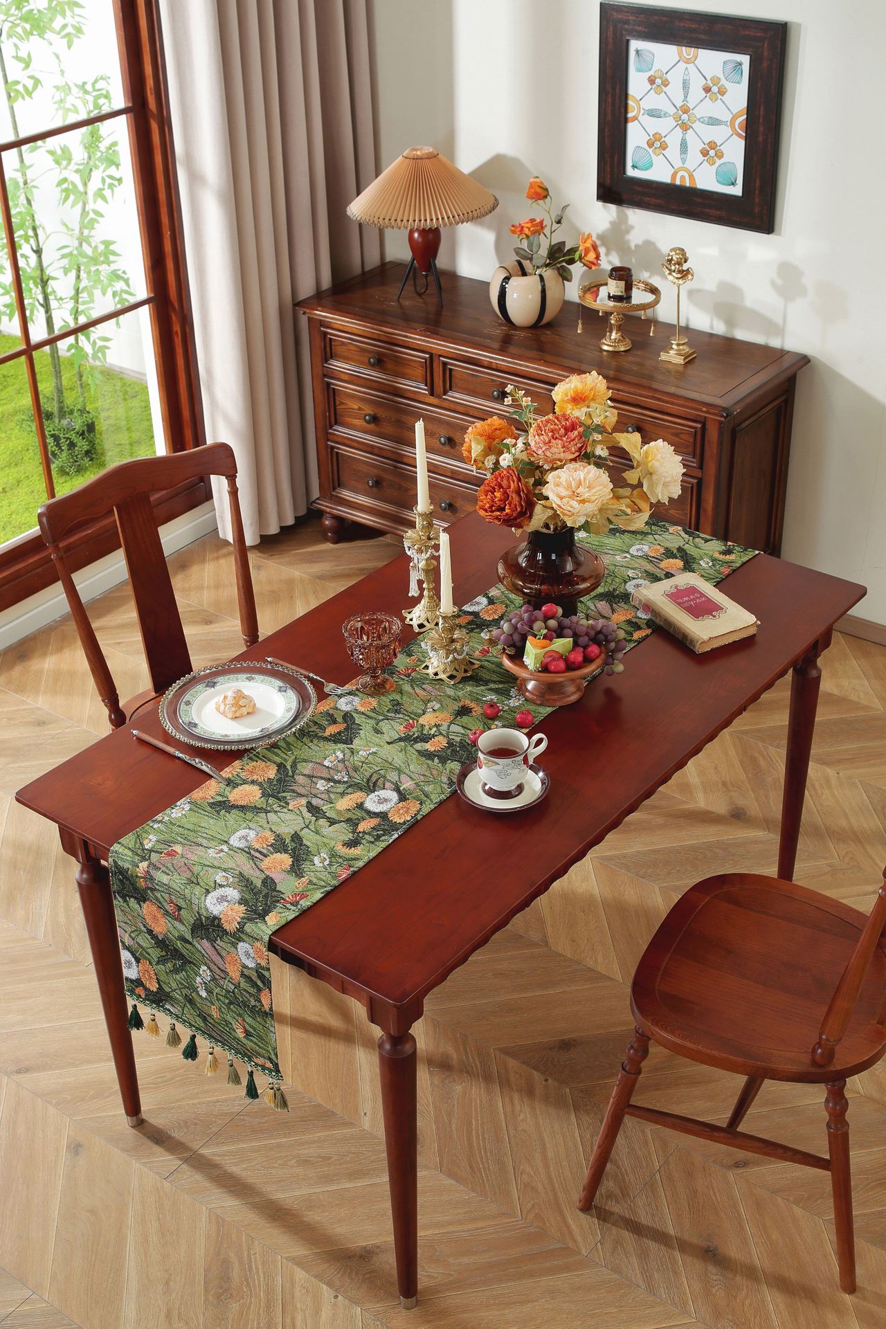 美式复古桌旗全涤色织提花茶几餐桌装饰电视柜盖巾床尾旗流苏