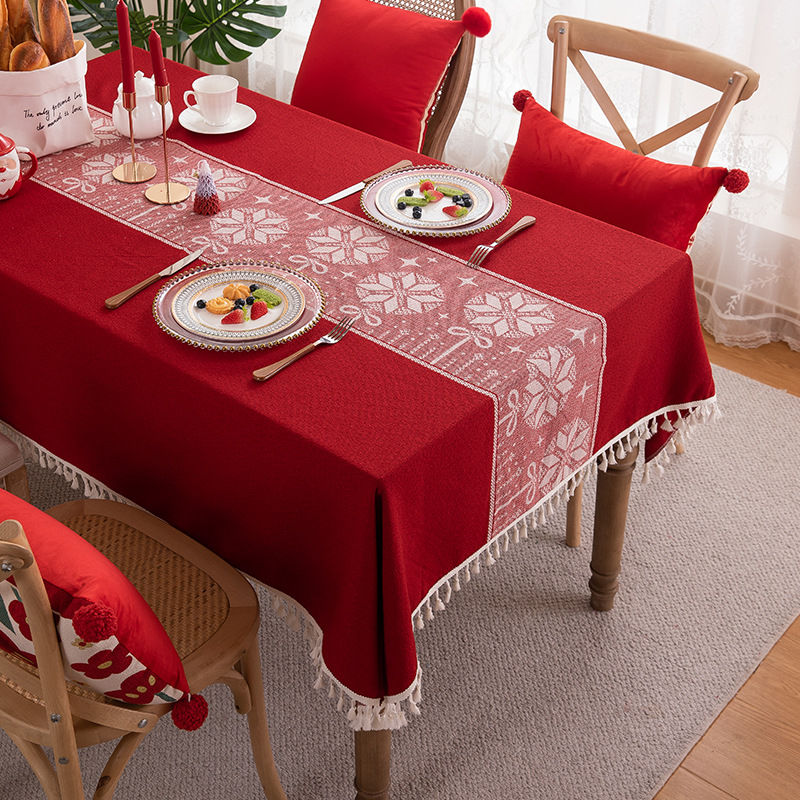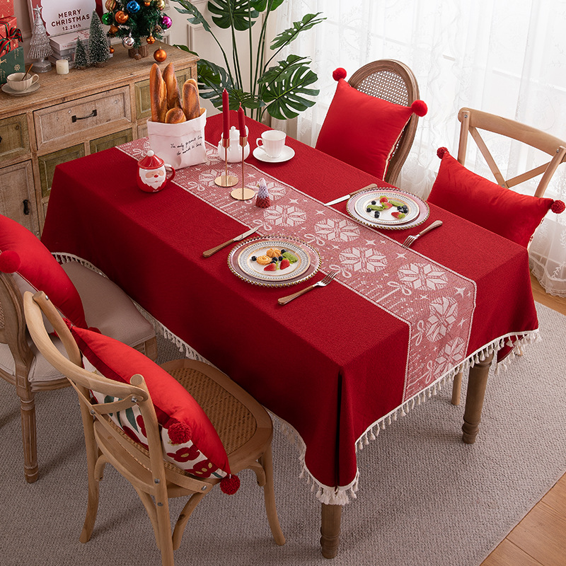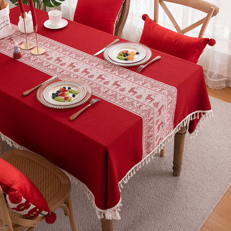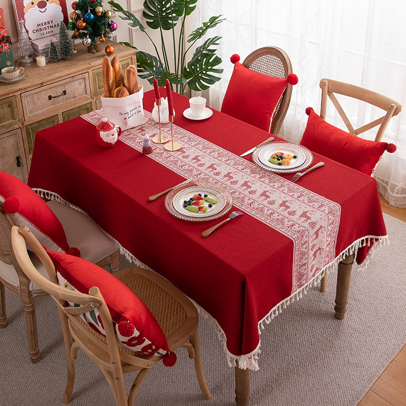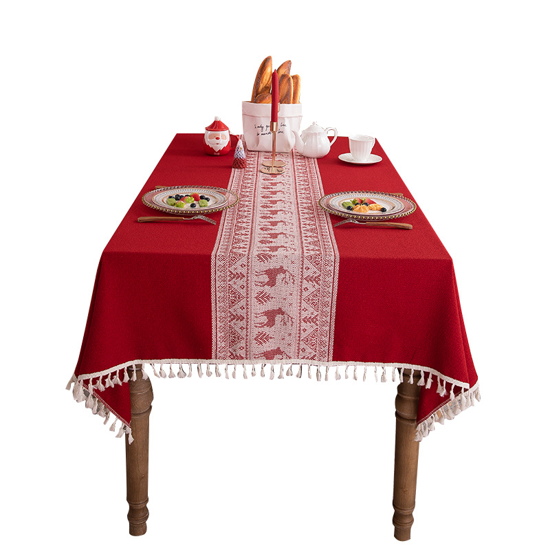 跨境新款红色圣诞鹿色织提花轻奢复古桌布美式高级感长方形茶几盖