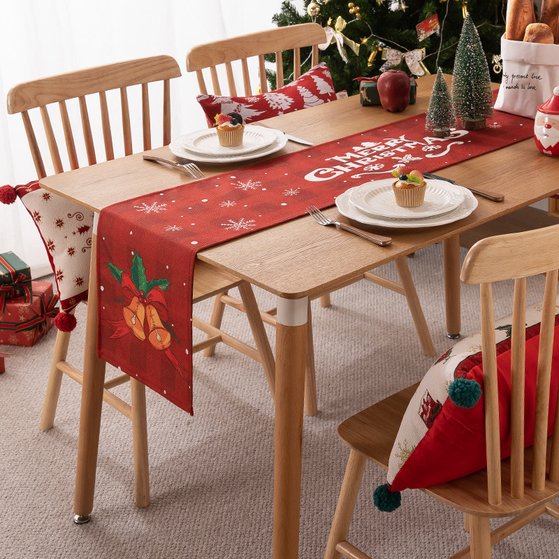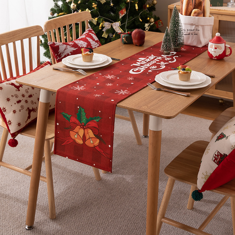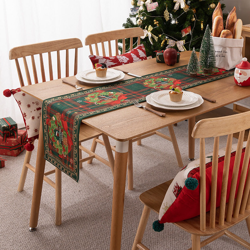 亚马逊新款圣诞桌旗英格兰格子涤纶圣诞聚餐派对装饰隔热桌垫厂家