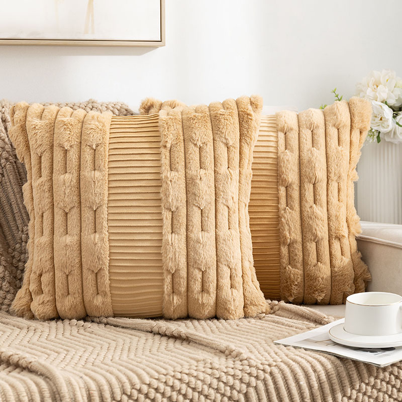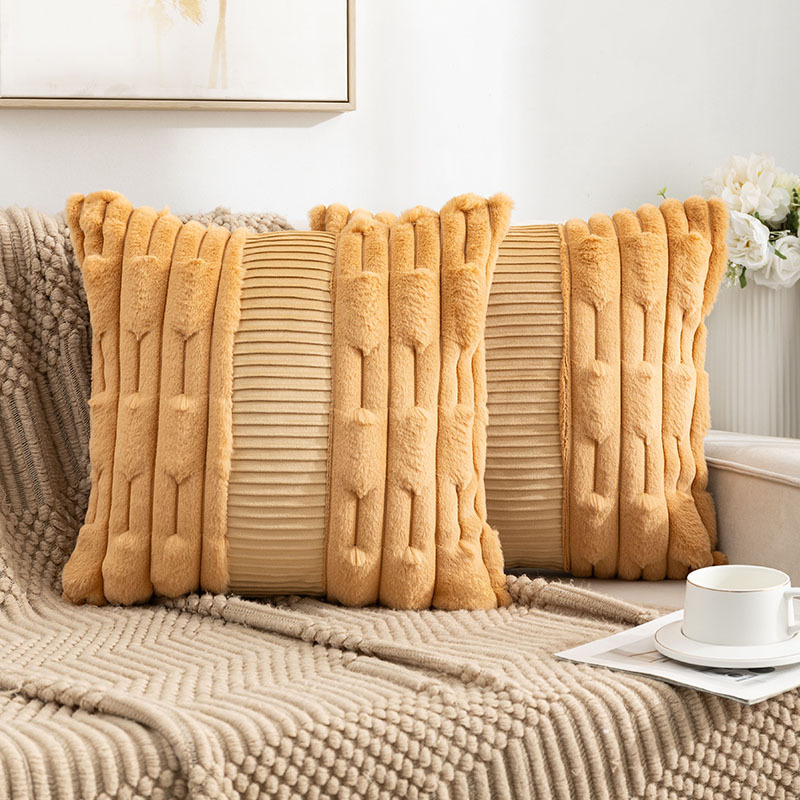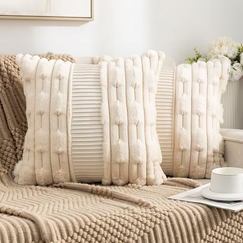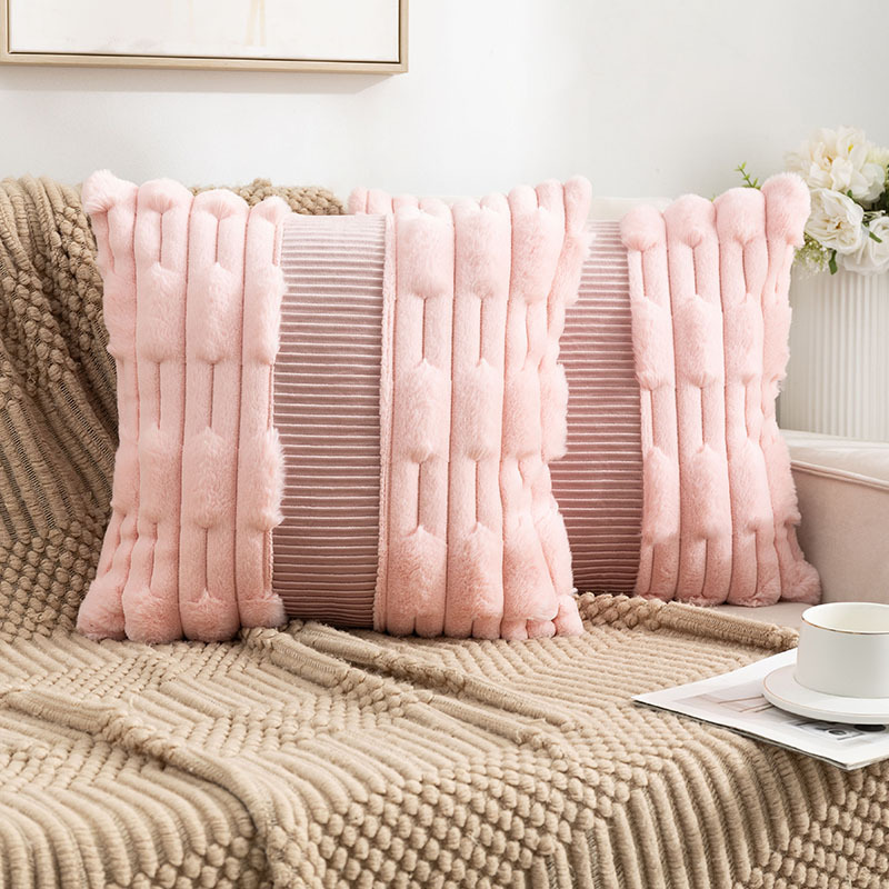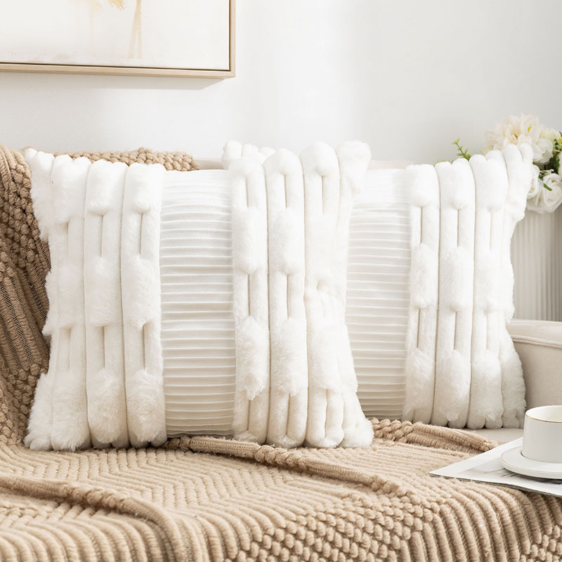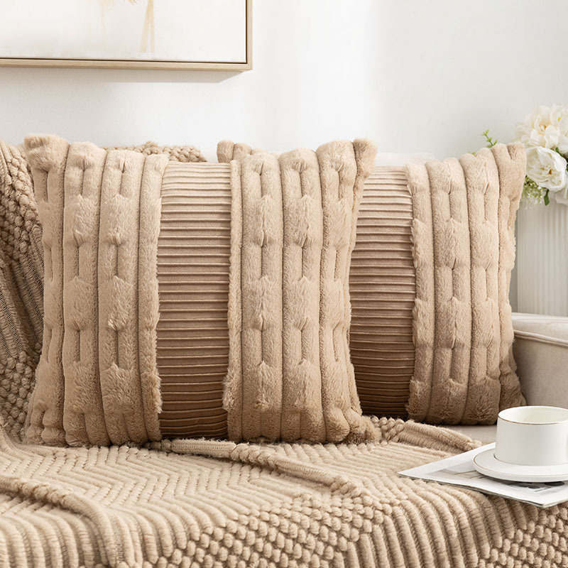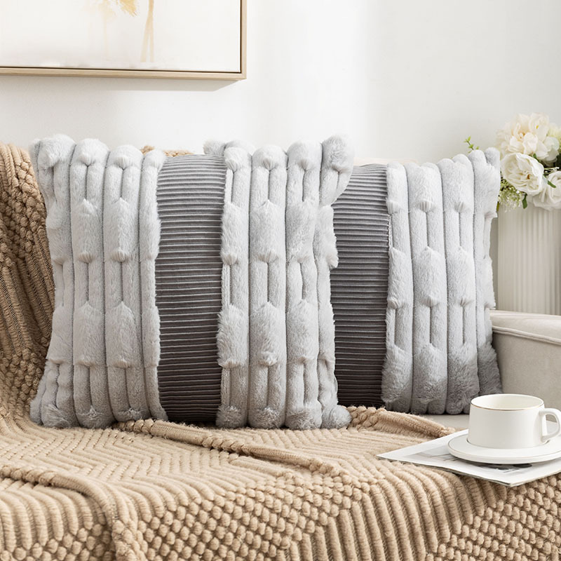 亚马逊热卖兔毛抱枕套拼接荷兰绒靠垫客厅沙发抱枕套床头靠垫批发