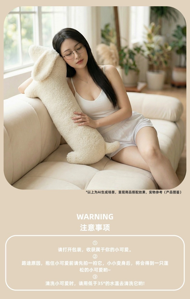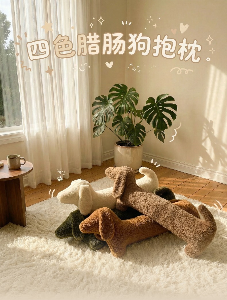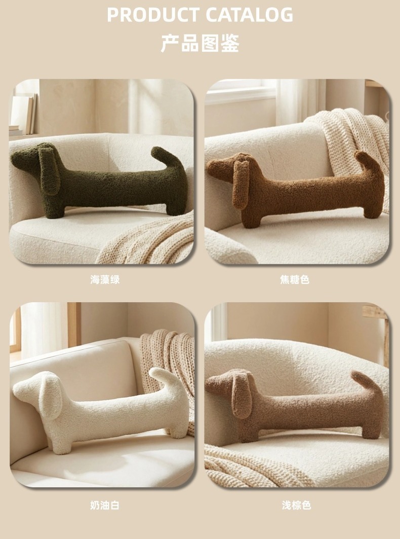 极简纯色腊肠狗抱枕仿羊驼绒亲肤大号床上陪睡觉夹腿安抚长条抱枕