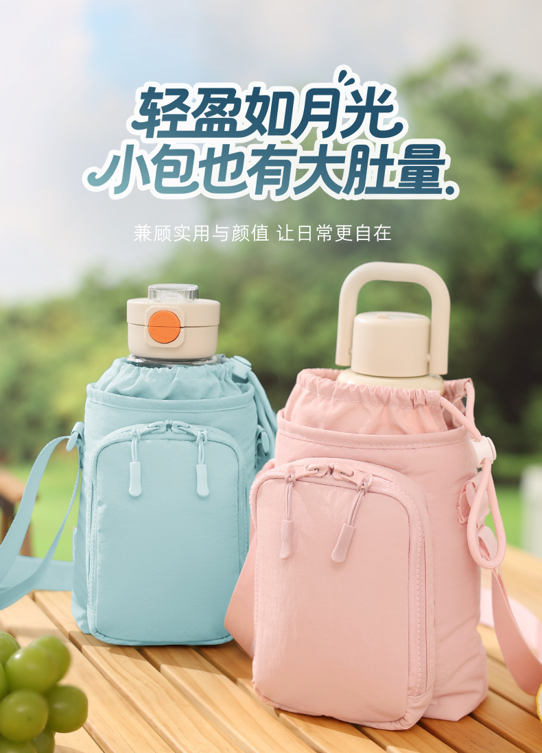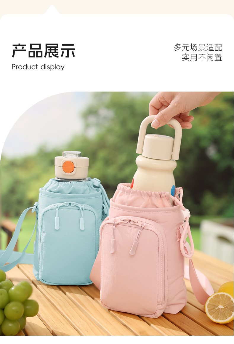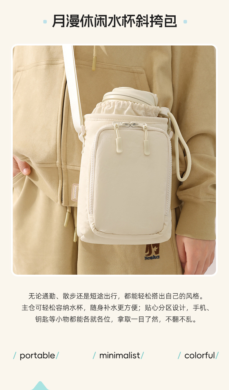新款休闲运动水杯包户外旅行杯套带手机袋月漫休闲水杯斜挎包