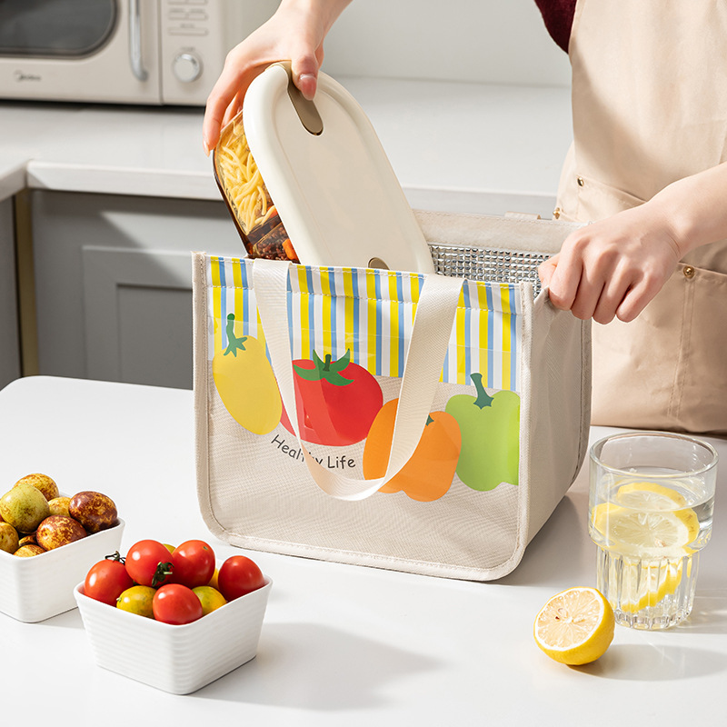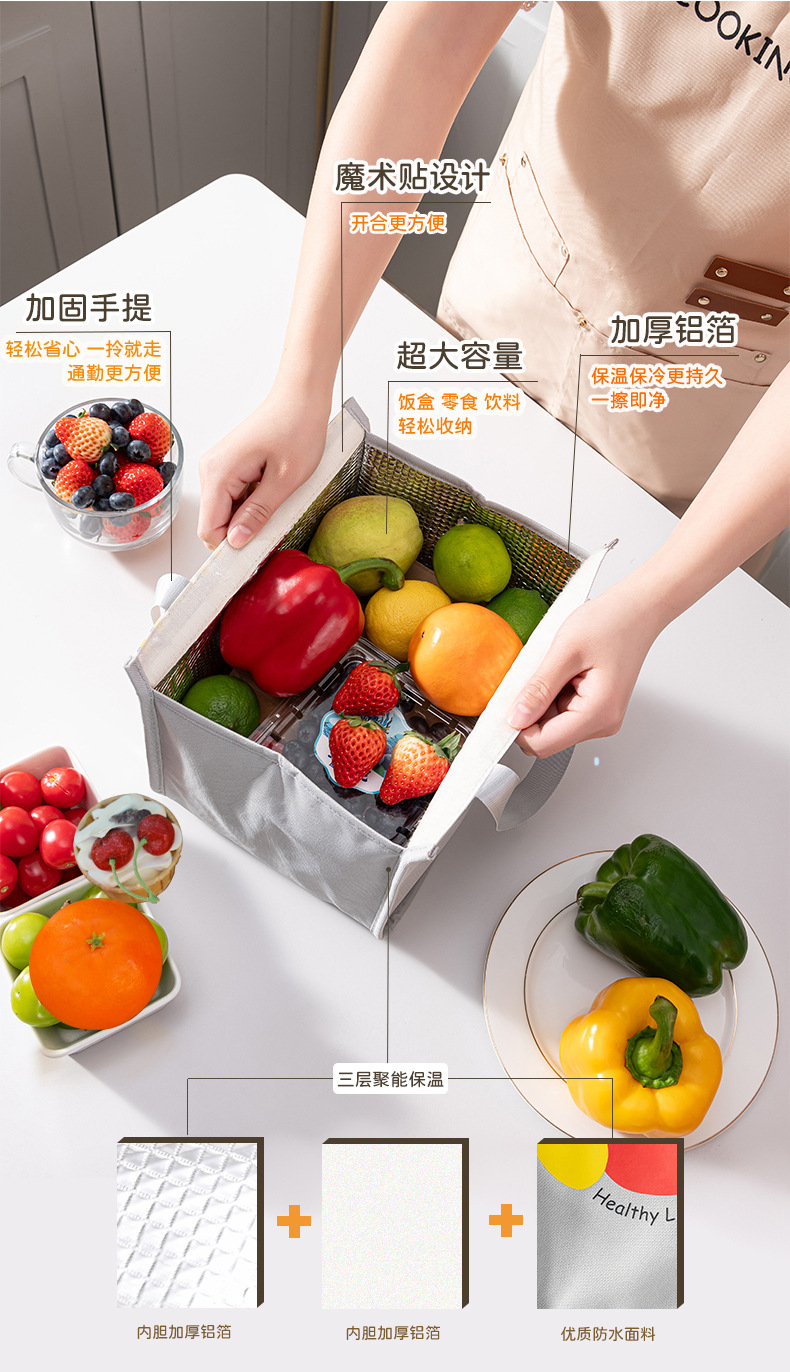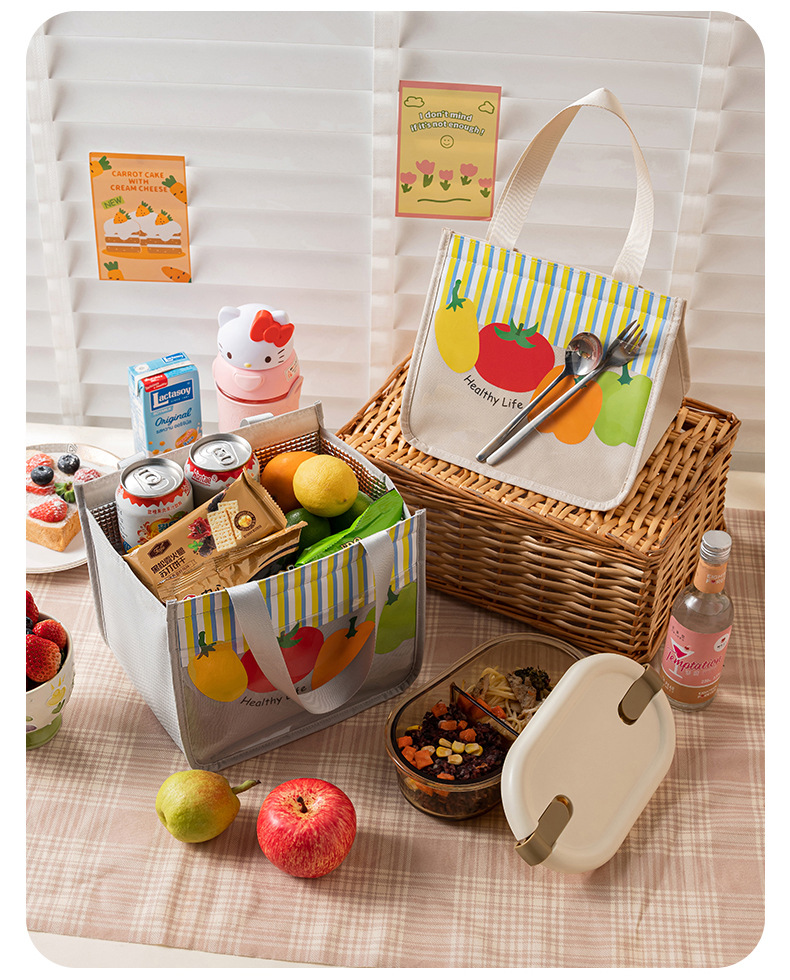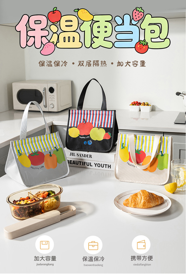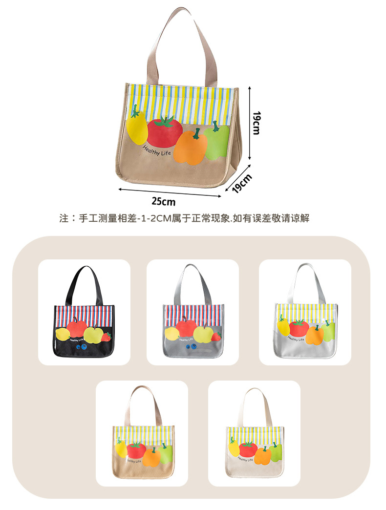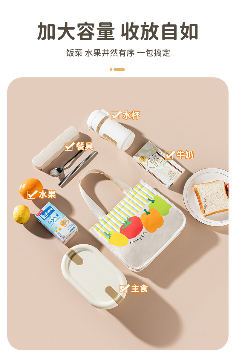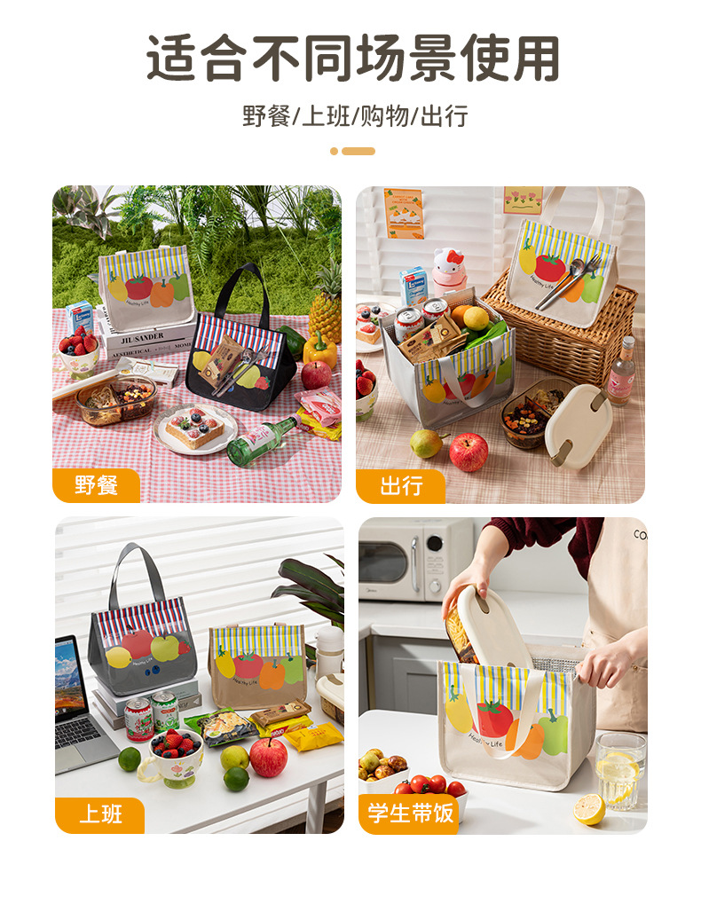 新款缤果手提便当包学生餐包上班族手提饭盒袋户外野餐包一件代发