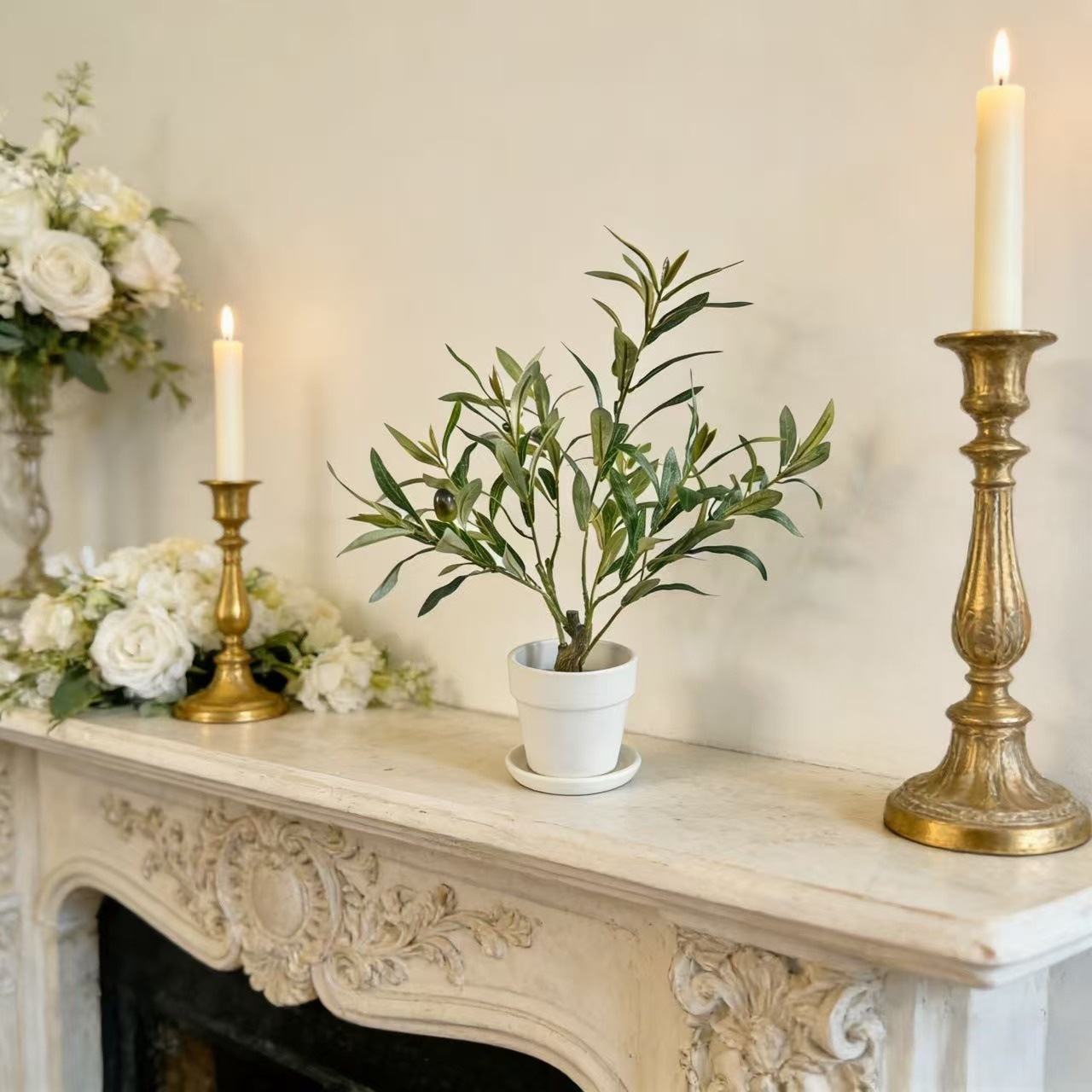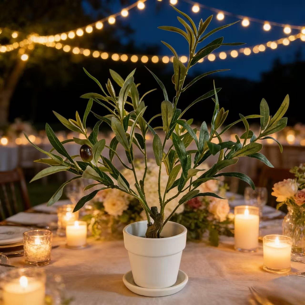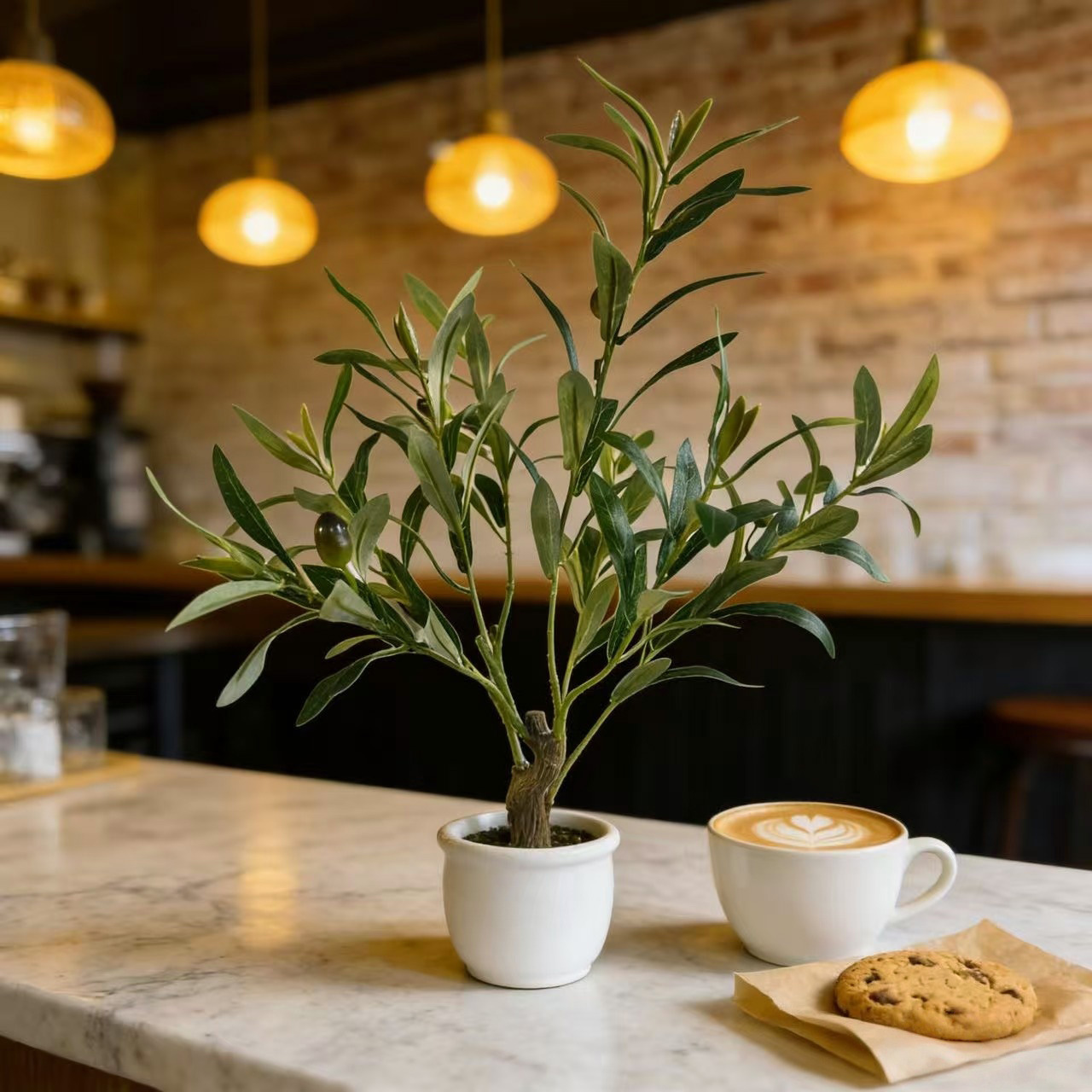 跨境仿真带果橄榄枝叶盆栽绿植橄榄带果仿真盆栽家居婚庆插花布置