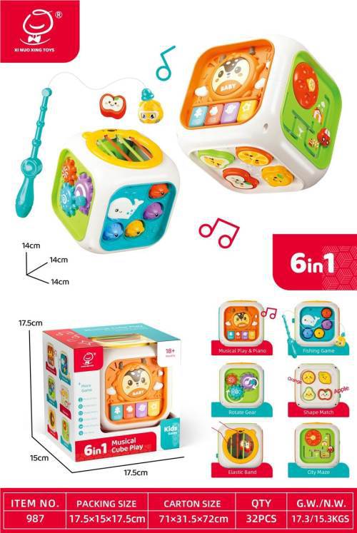 儿童手拍鼓益智六面鼓婴儿玩具益智盒多面体早教鼓类多功能