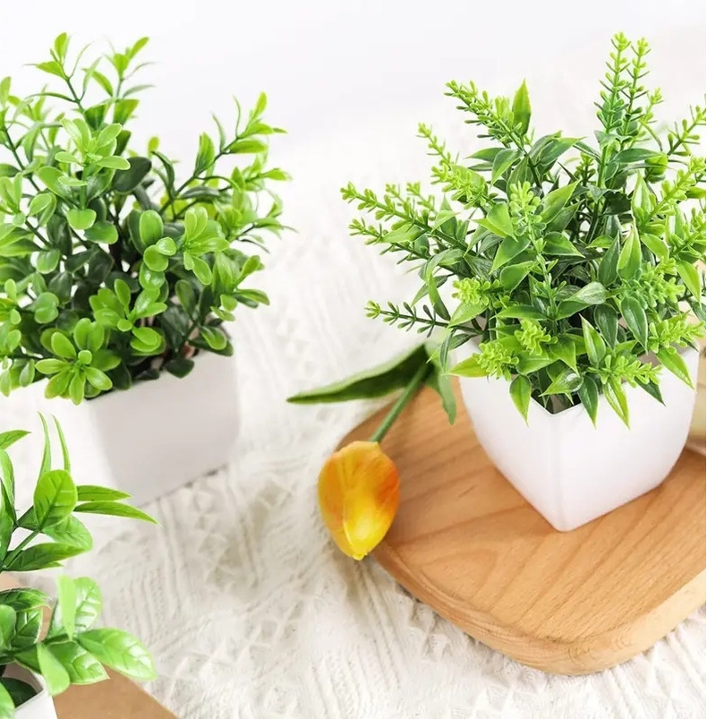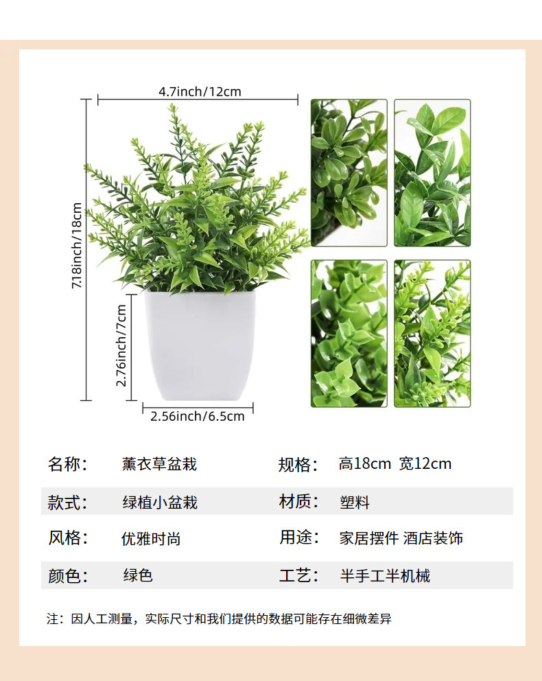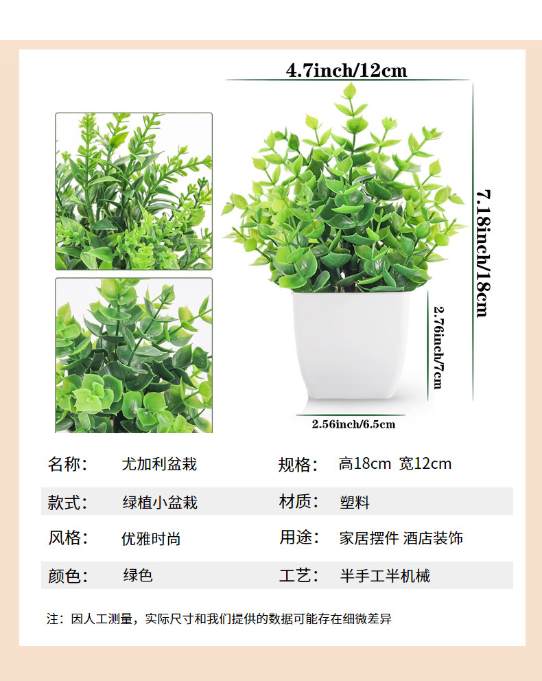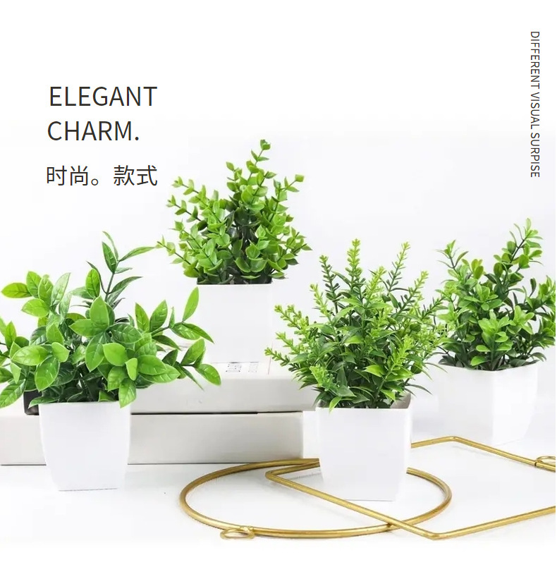 亚马逊仿真小盆栽薰衣草尤加利绿植家居装饰绿色植物小盆景假花