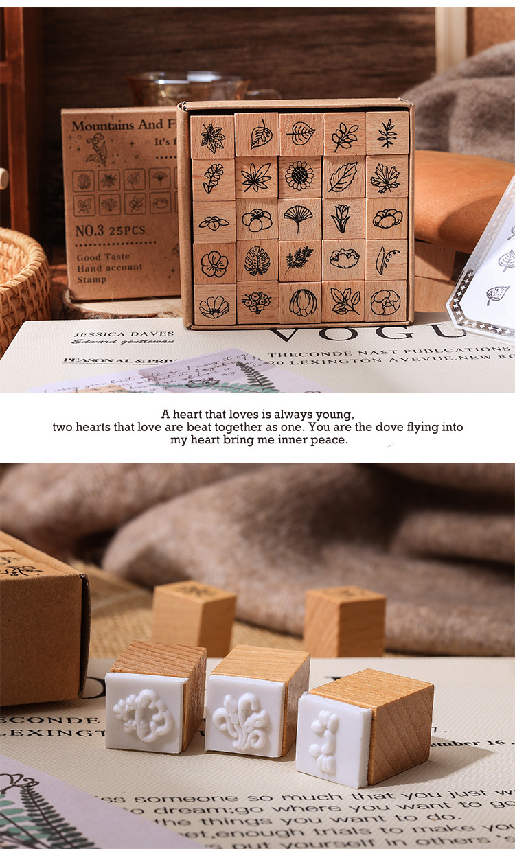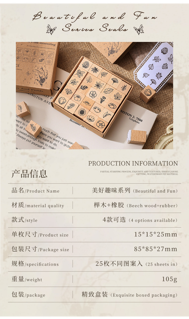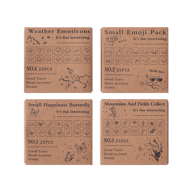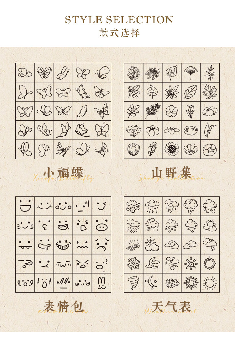 悦真美好趣味榉木橡胶木质手帐印章跨境表情天气儿童手账印章印泥
