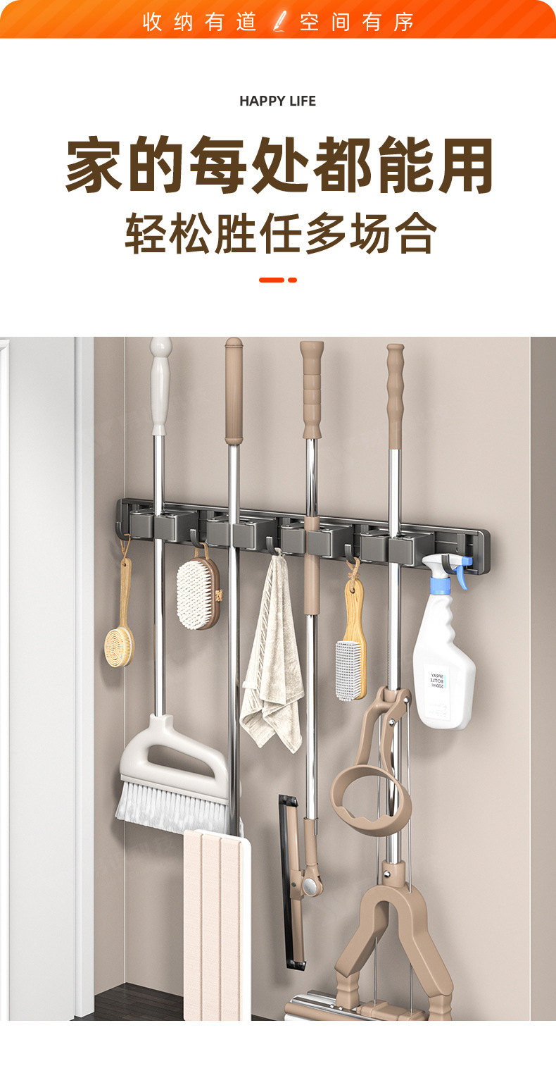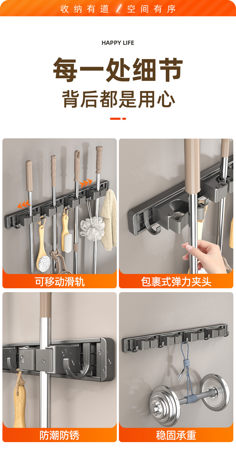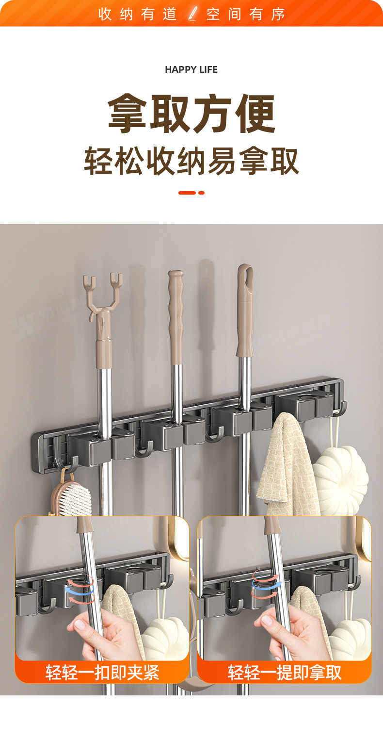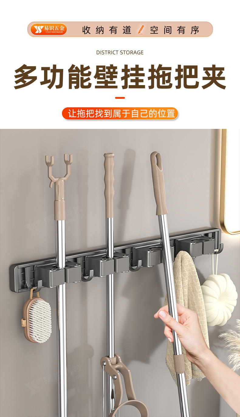 厂家供应壁挂夹挂钩免打孔拖把夹扫把架神器卫生间卡扣厨房置物架