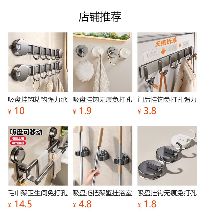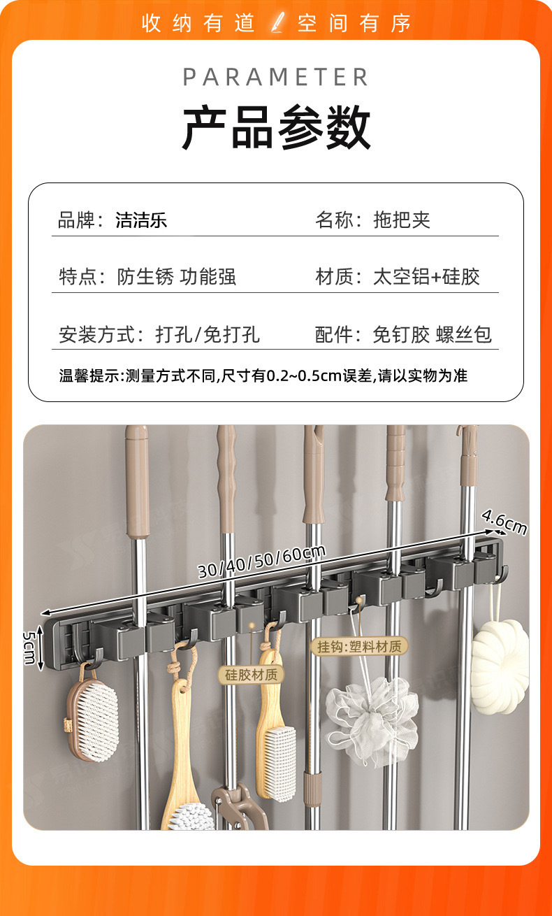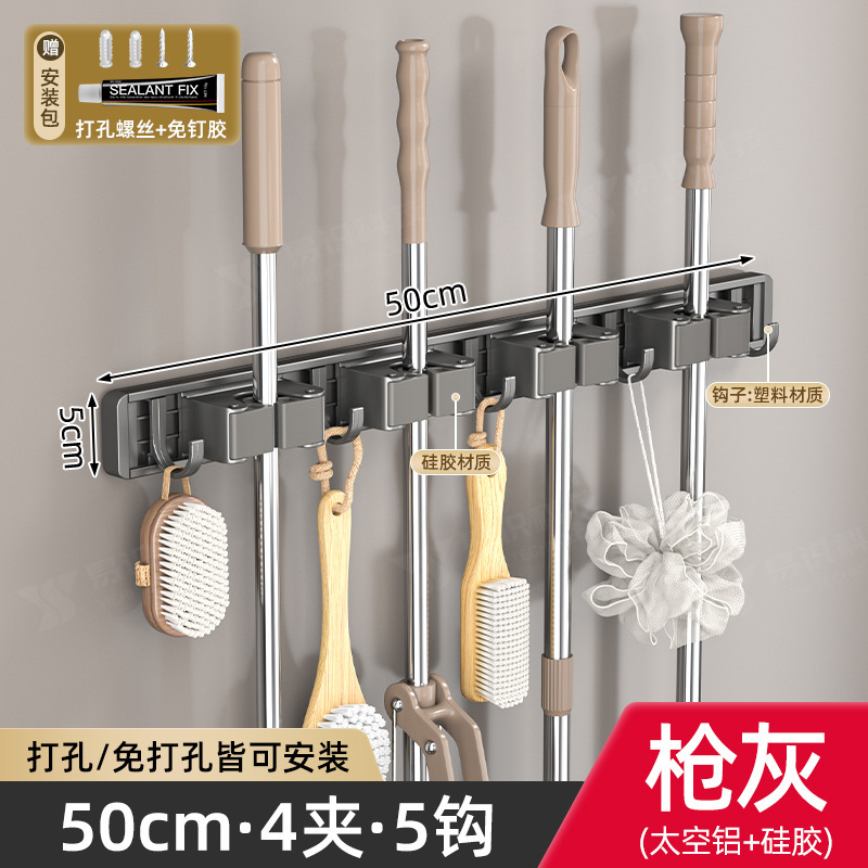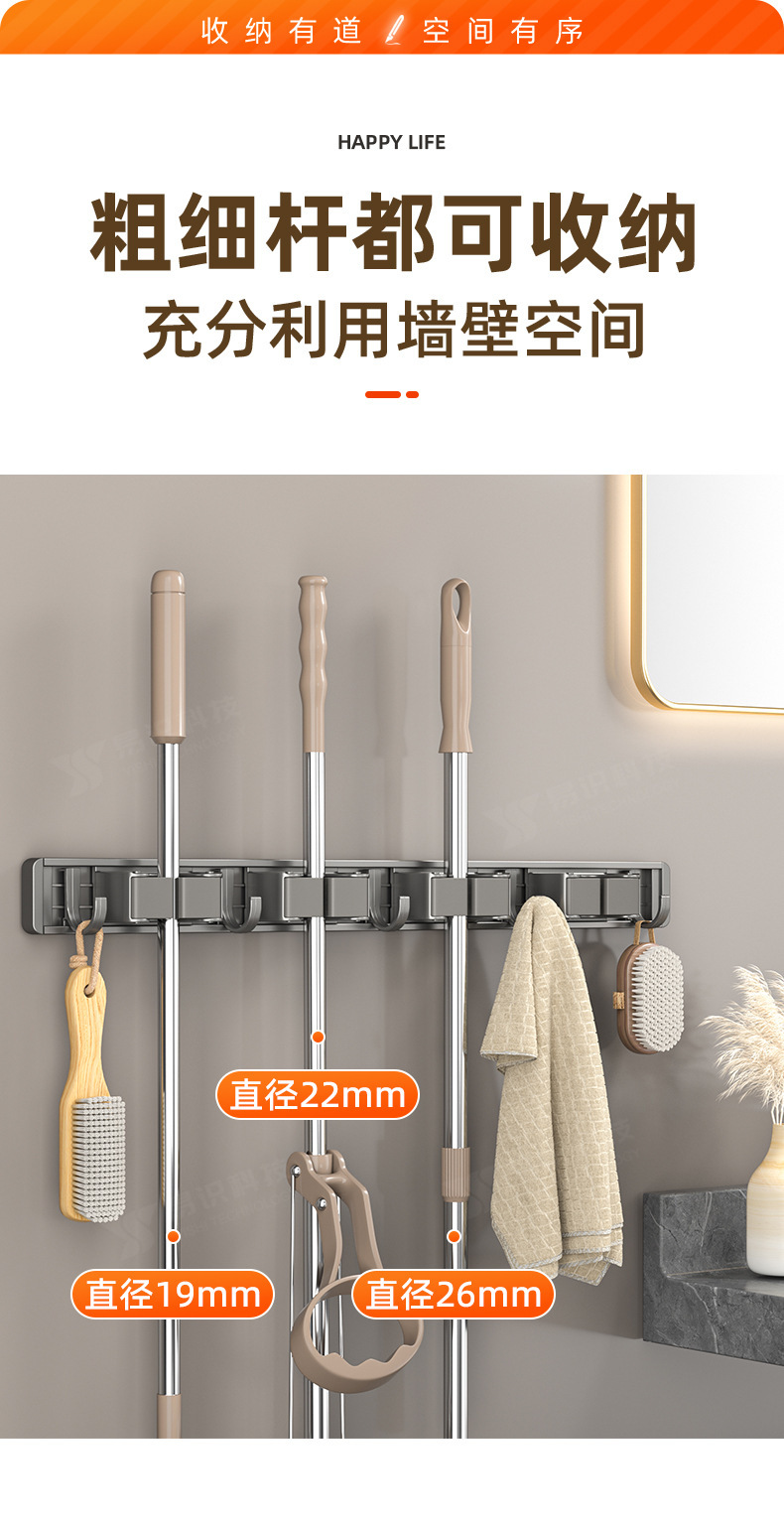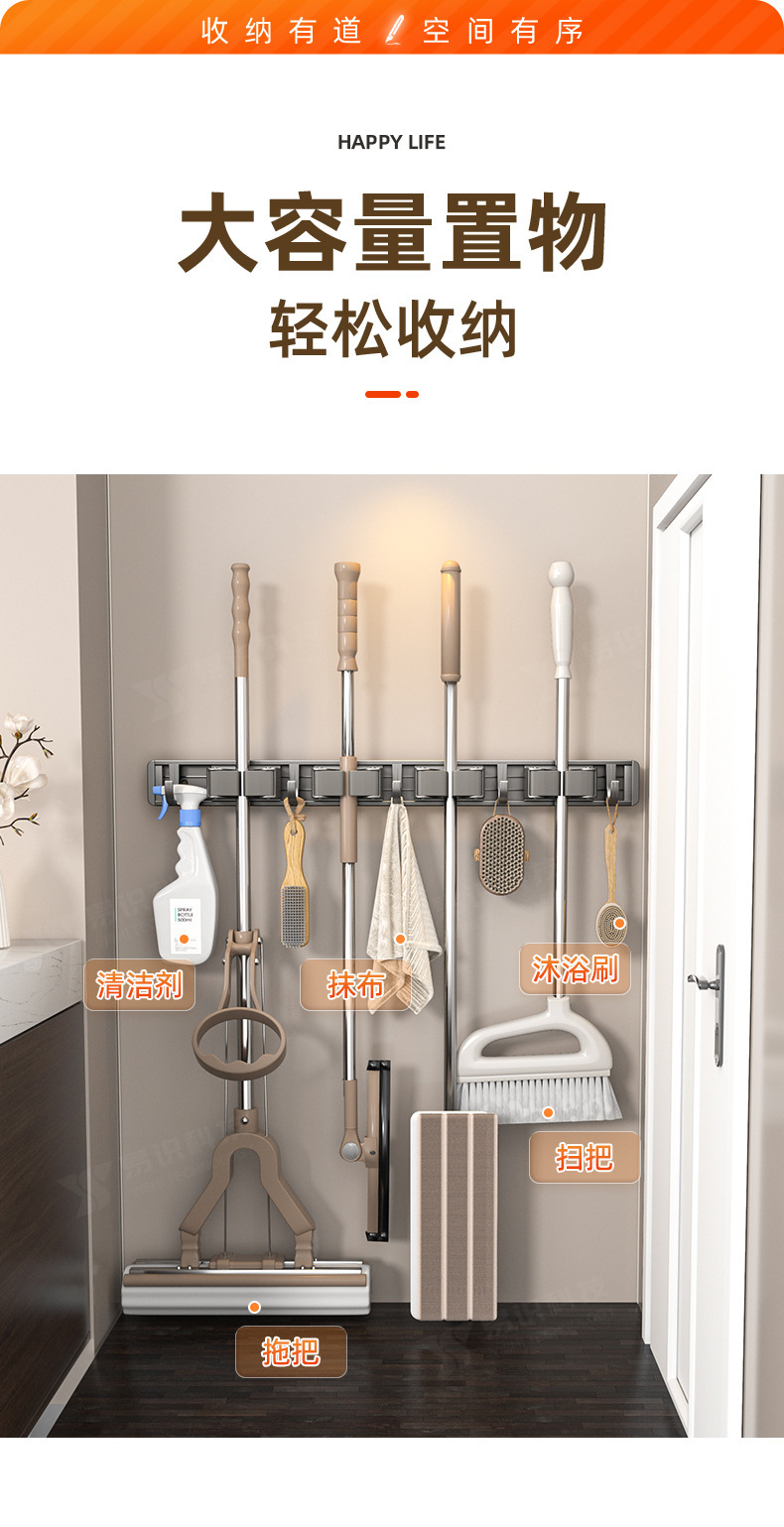 厂家供应壁挂夹挂钩免打孔拖把夹扫把架神器卫生间卡扣厨房置物架