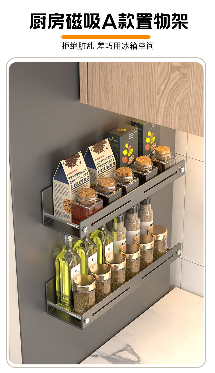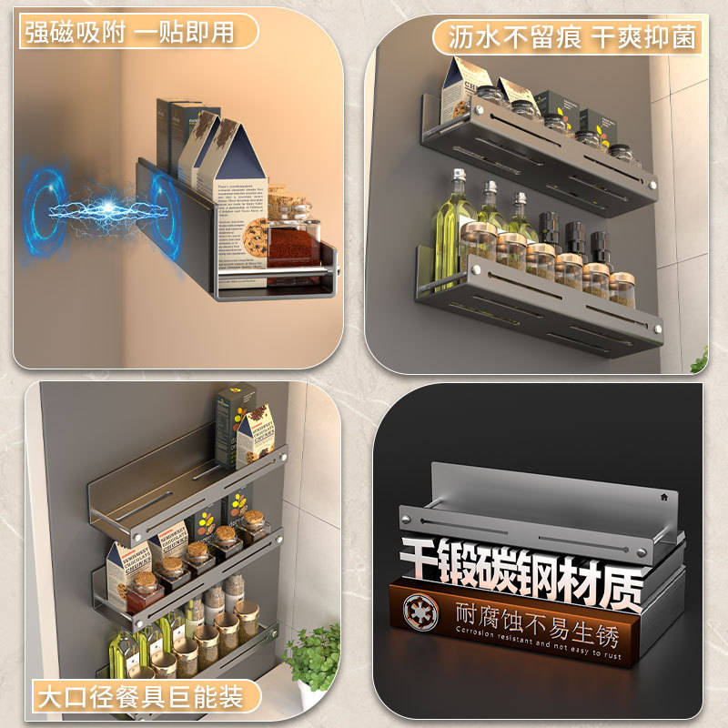 厨房磁吸置物架免打孔壁挂式调料架调味品多功能家用磁铁收纳架子