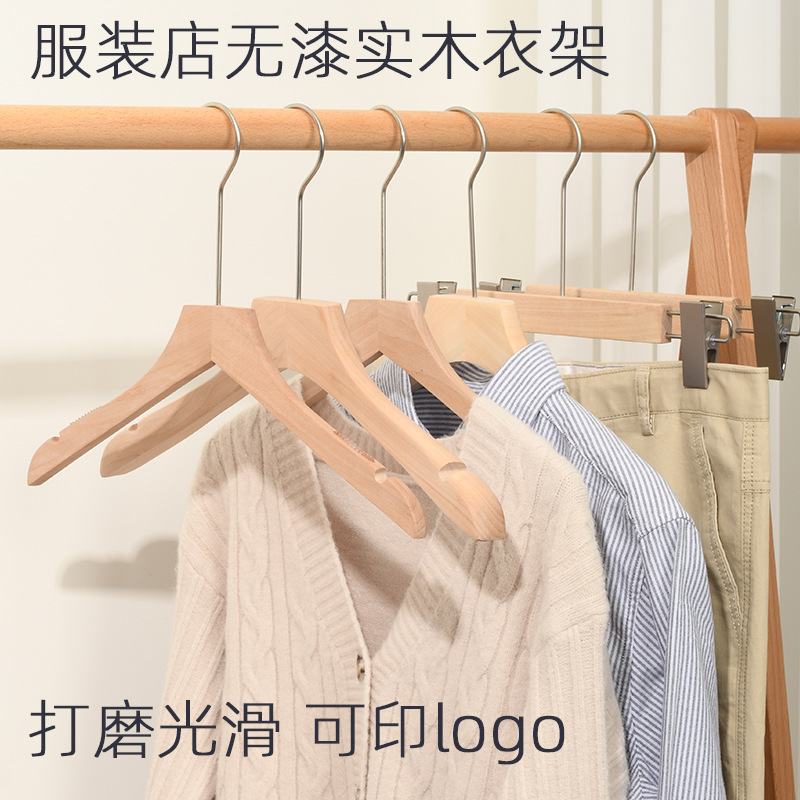 服装店衣架女装防滑无痕实木衣架原木无漆捆绳衣挂裤架子工厂批发