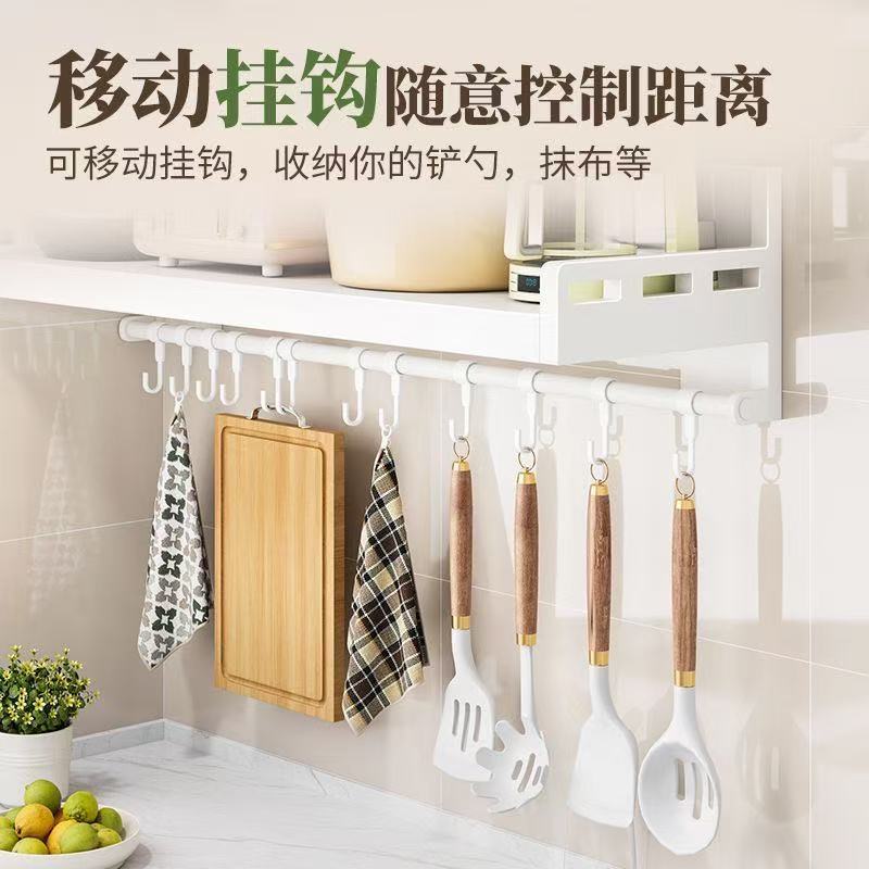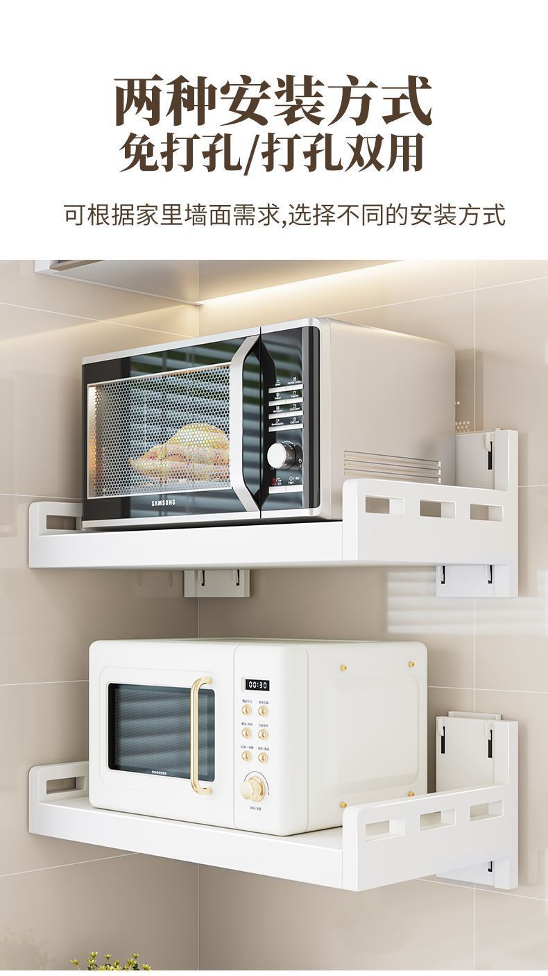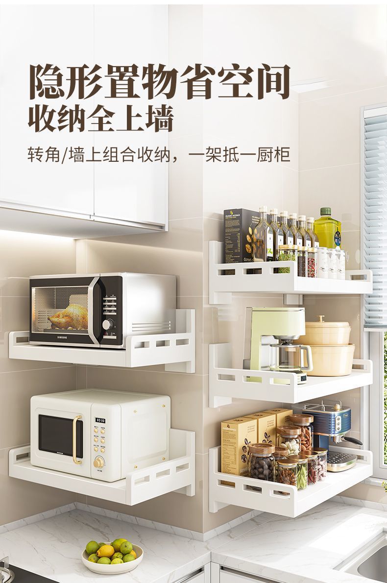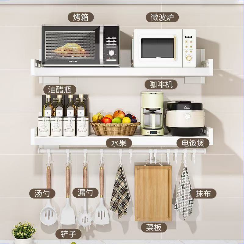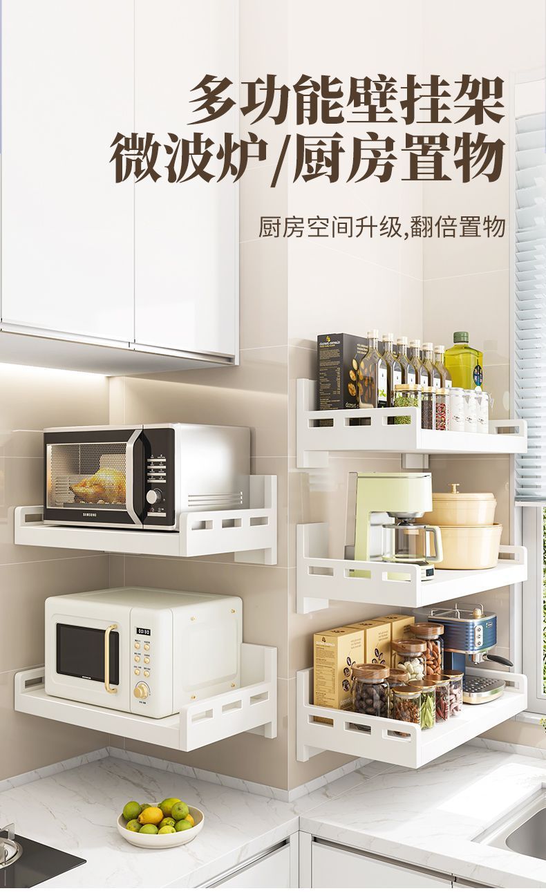 厨房不锈钢置物架壁挂式白色多功能免打孔家用微波炉调味料收纳架