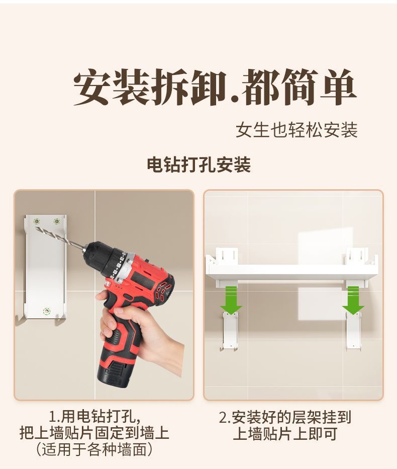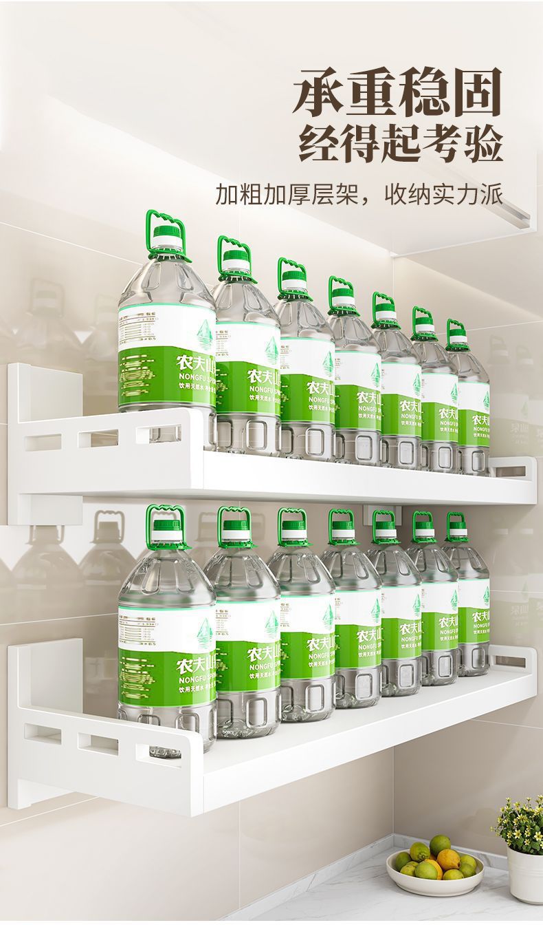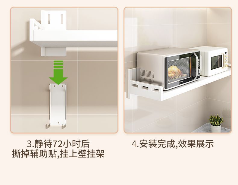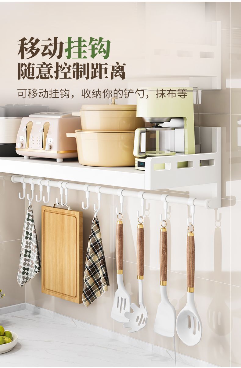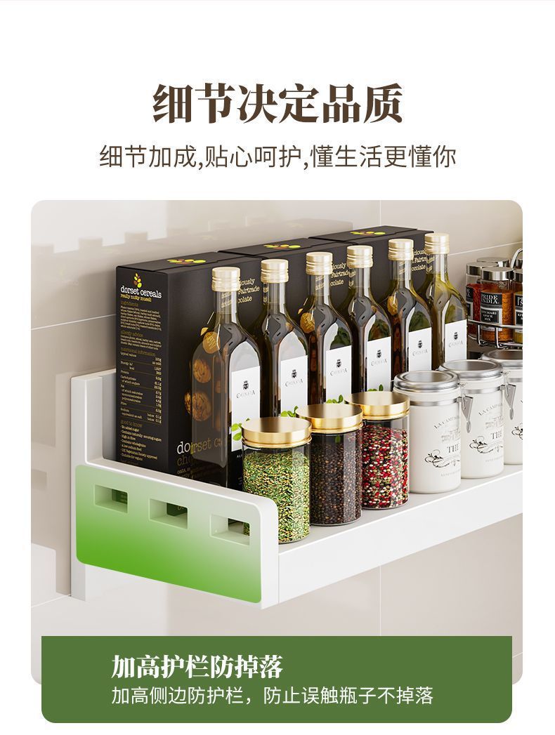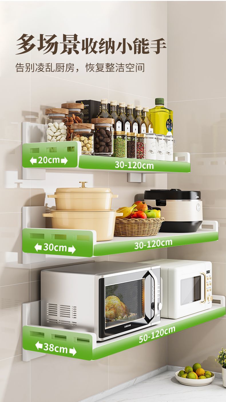 厨房不锈钢置物架壁挂式白色多功能免打孔家用微波炉调味料收纳架