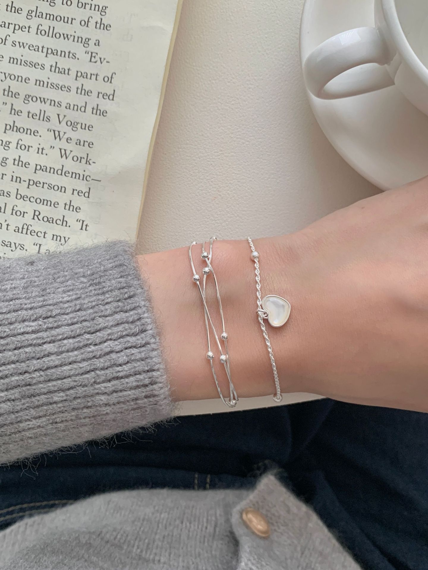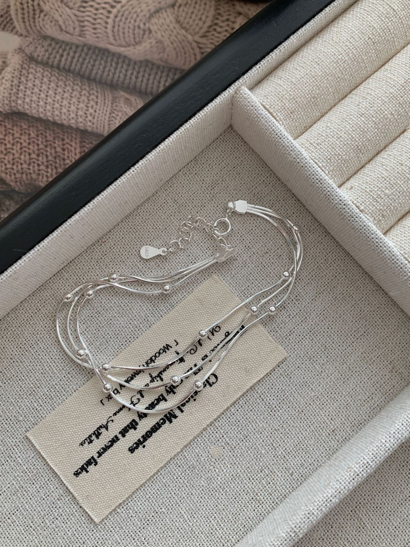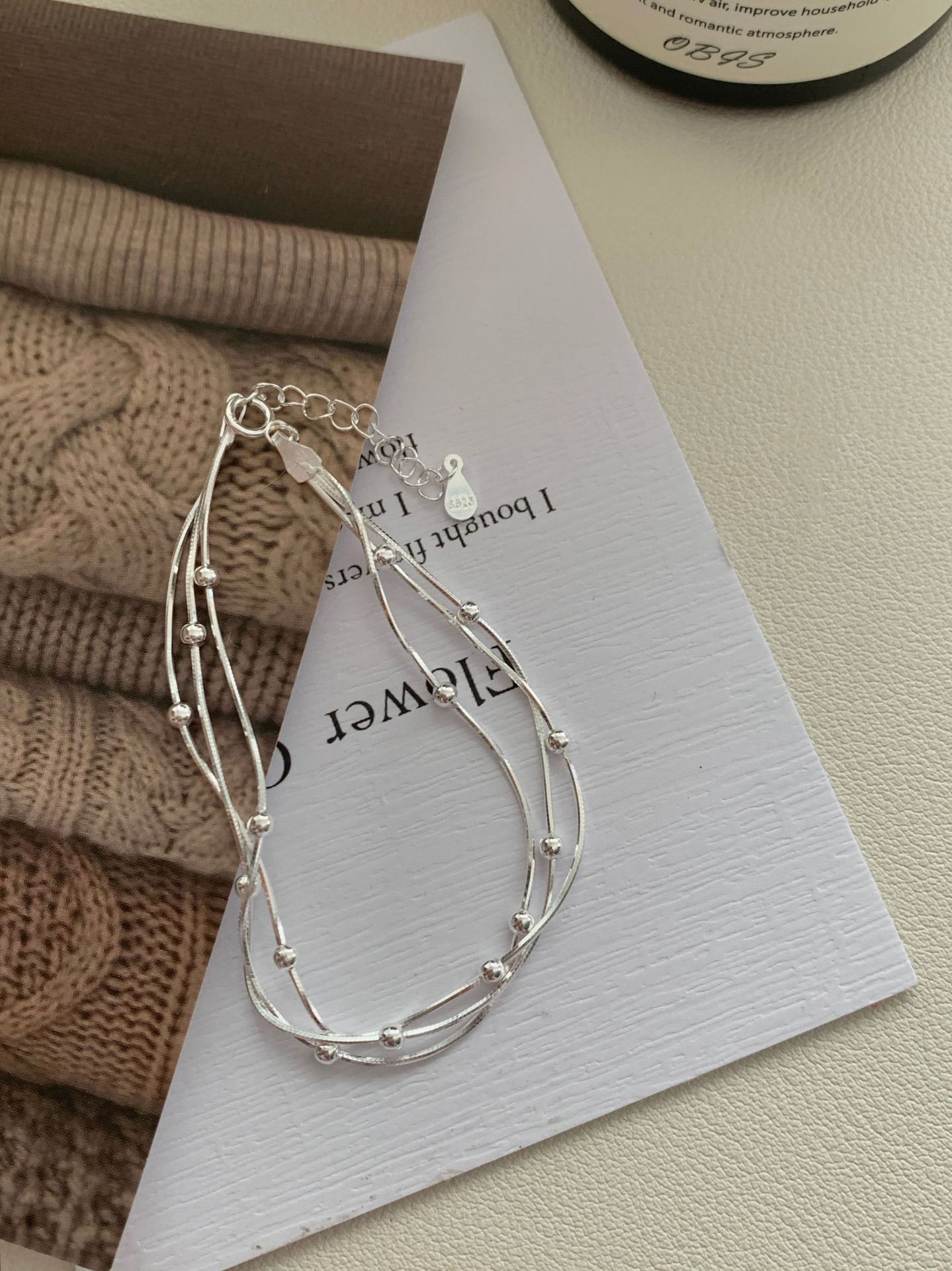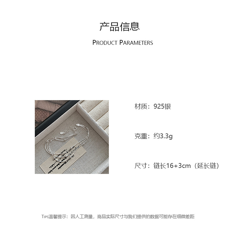 S925纯银三层间珠蛇骨手链女韩国冷淡ins高级感小众设计新款手饰