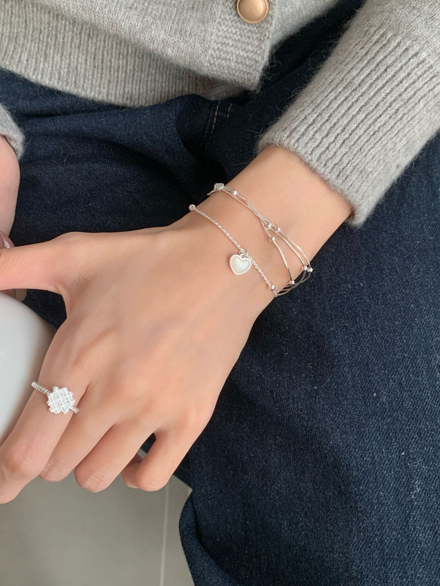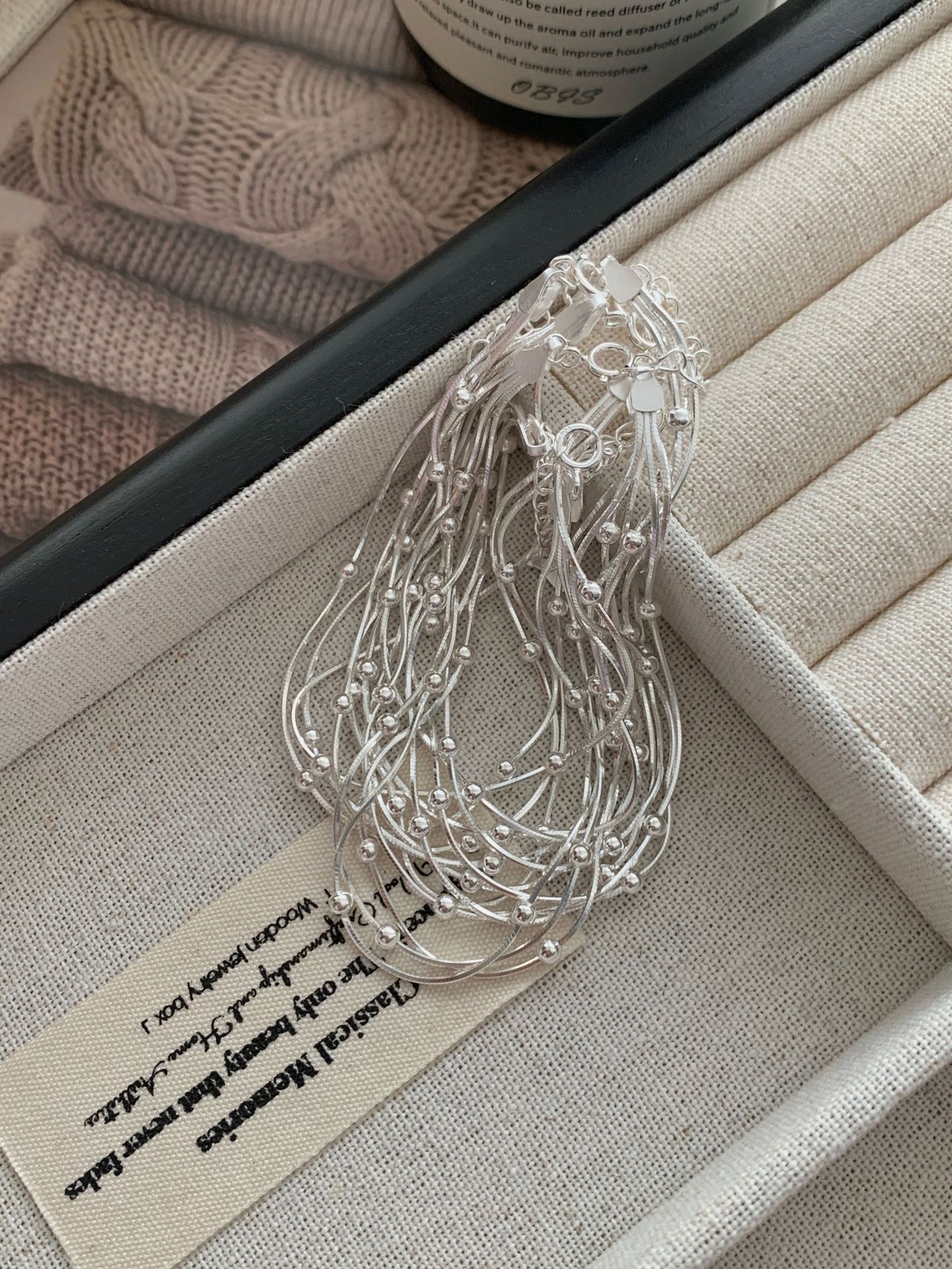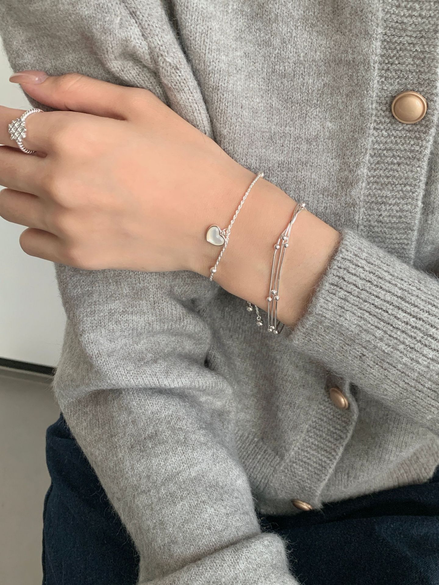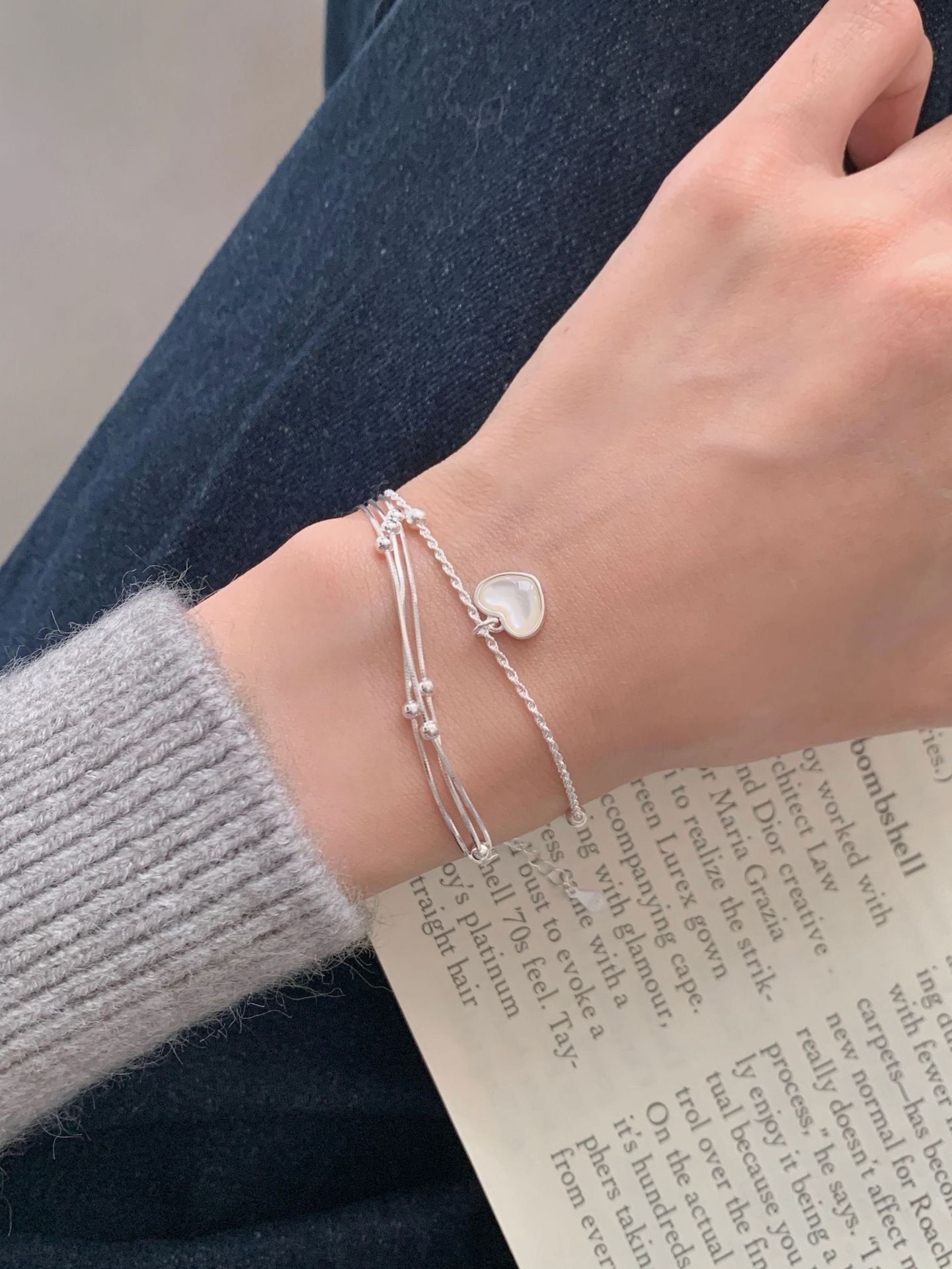 S925纯银三层间珠蛇骨手链女韩国冷淡ins高级感小众设计新款手饰