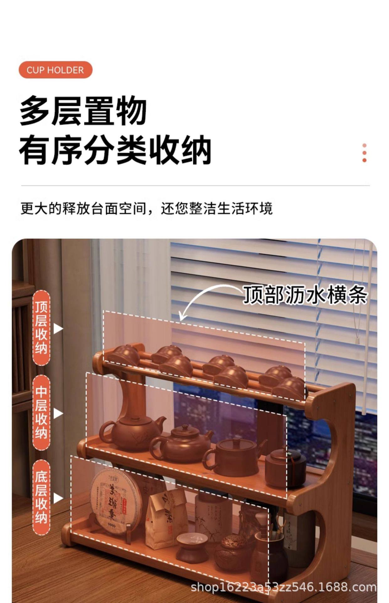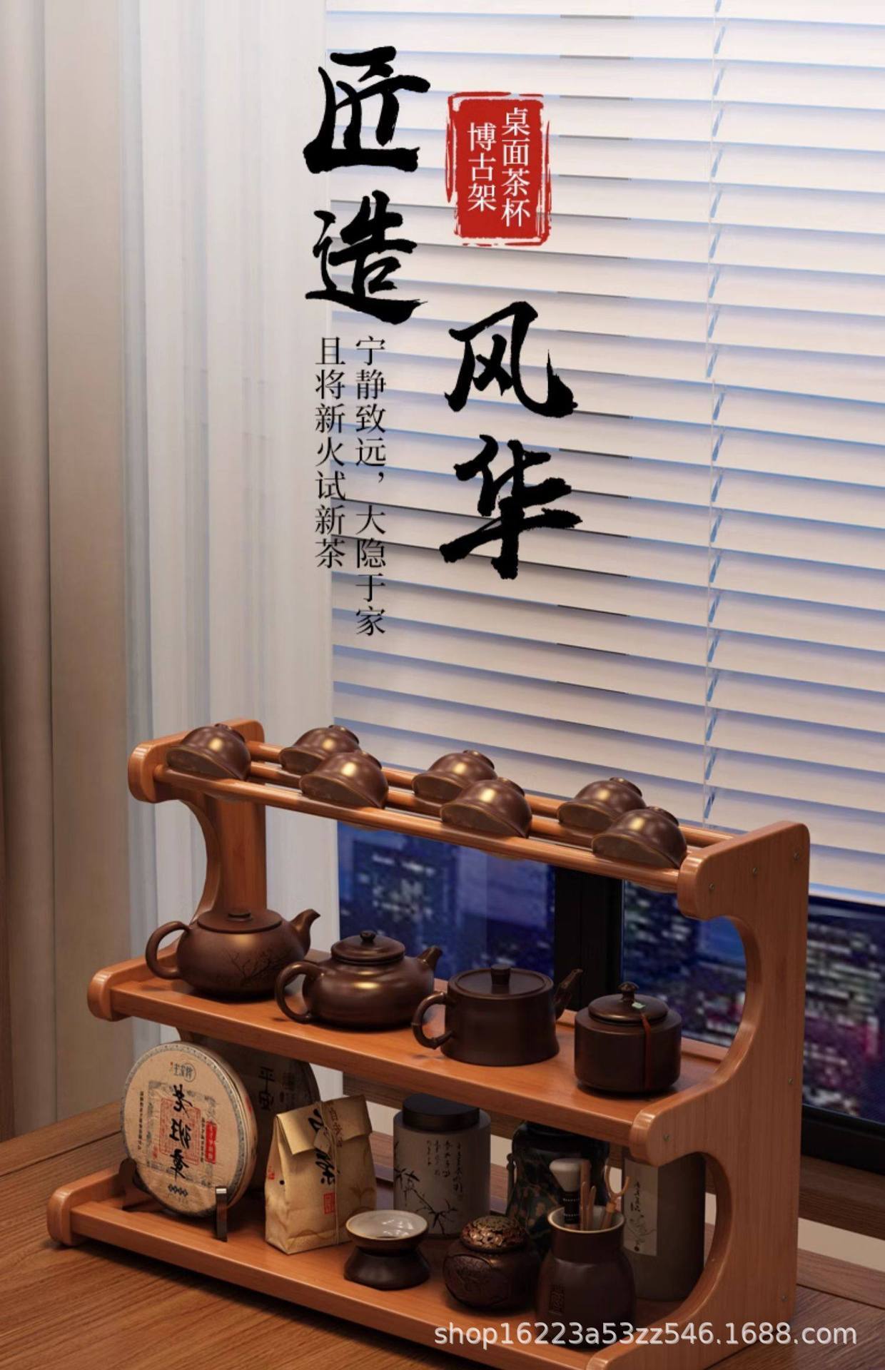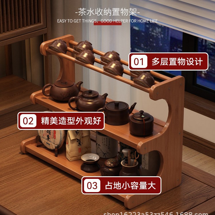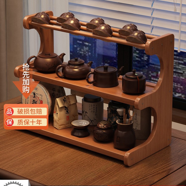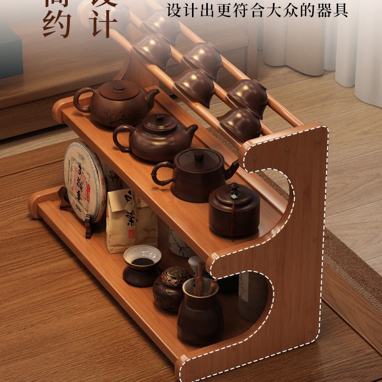 桌面茶杯收纳置物架茶室茶桌小型博古架茶台茶具紫砂壶摆放展示架