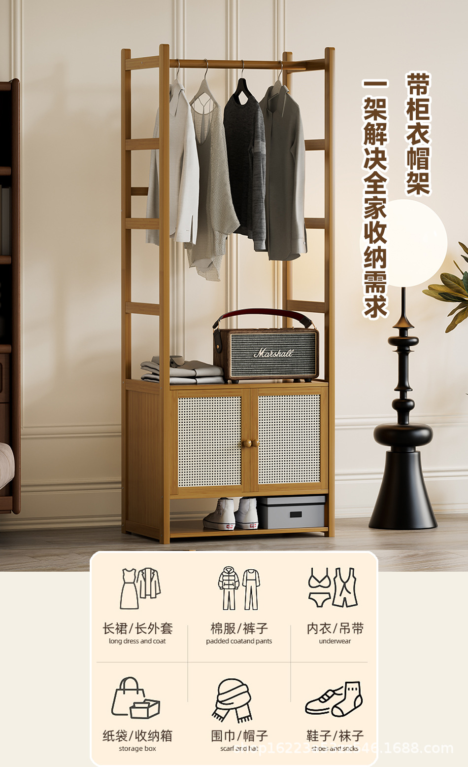 衣帽架落地式多功能收纳置物架简易衣架出租屋卧室家用挂衣架简约