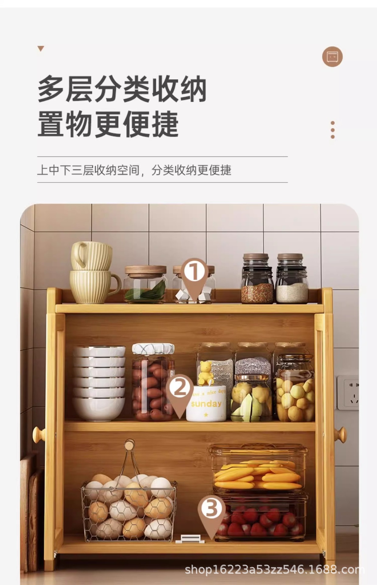 厨房台面夹缝置物架餐具调味品摆放架落地多层楠竹家用收纳储物架