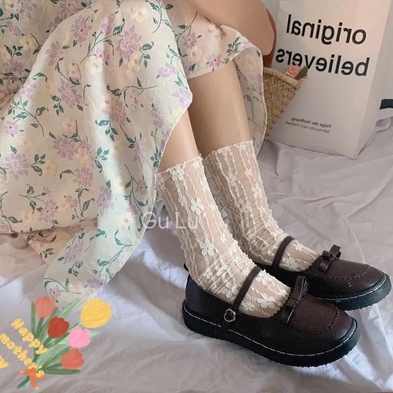 网纱堆堆袜蕾丝法式复古镂空日系甜美小腿袜镂空软妹洛丽塔短袜女