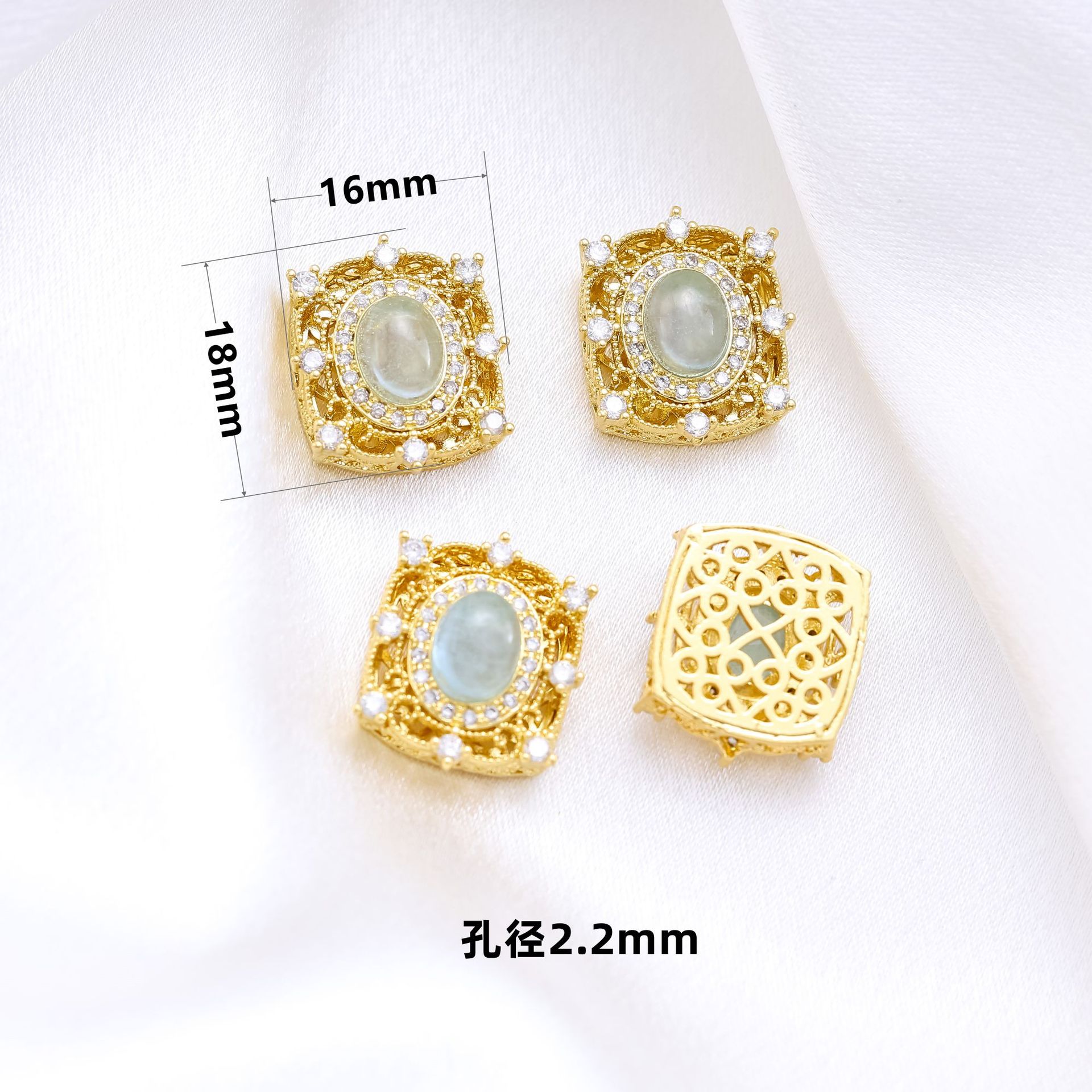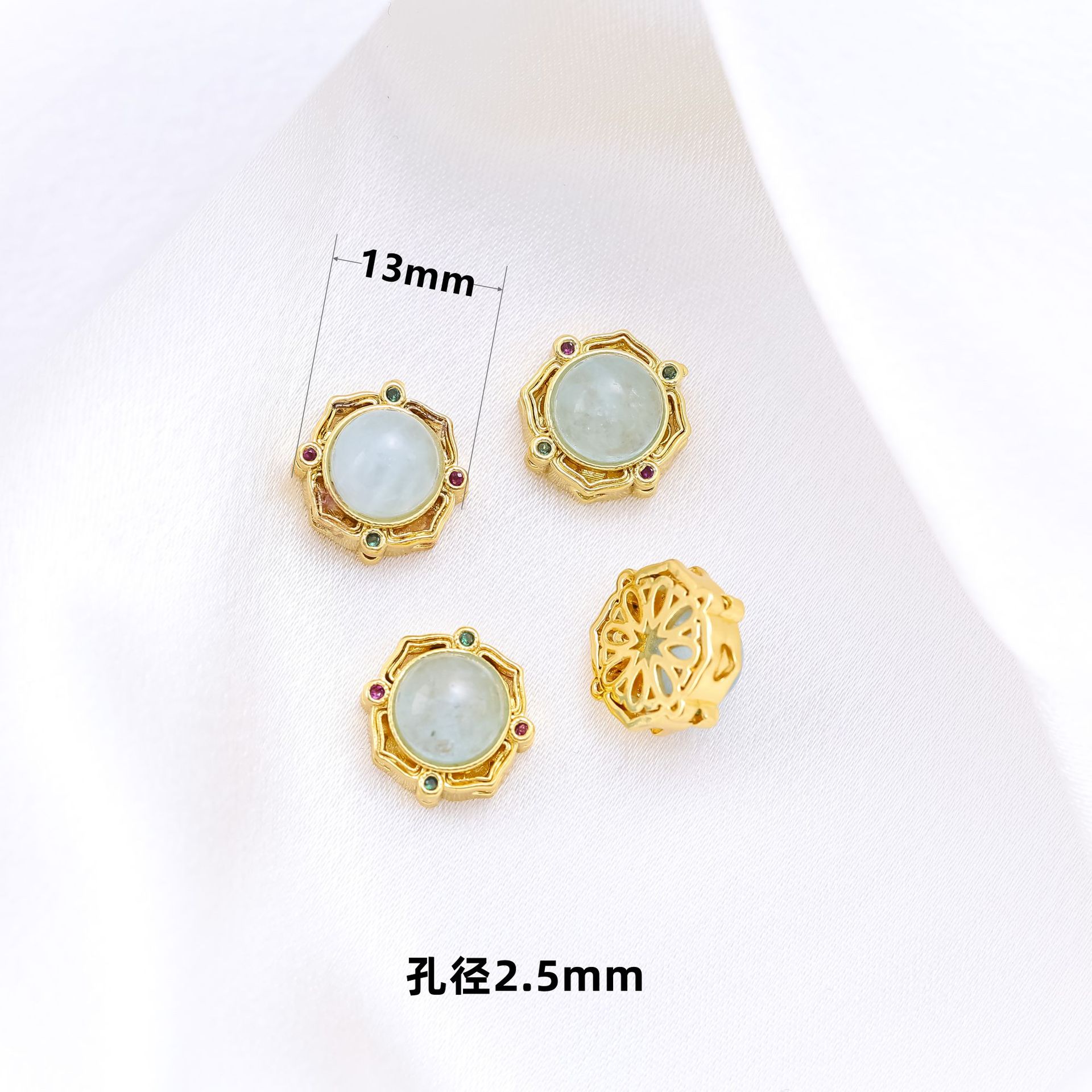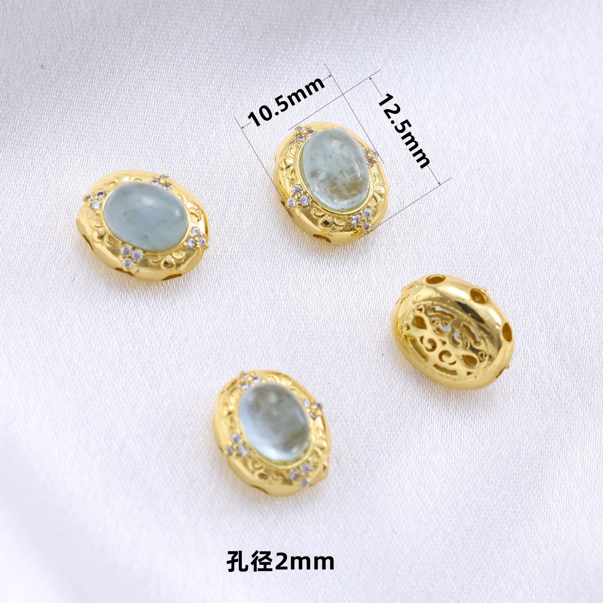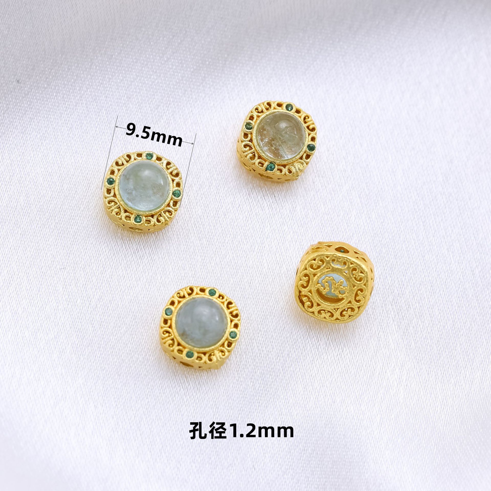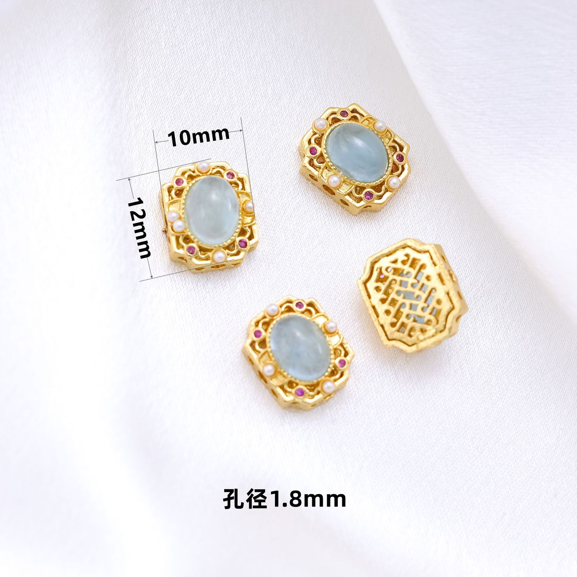 天然海蓝宝魔盒戒面铜镀18K真金镂空饰品配件隔珠diy手串项链配饰