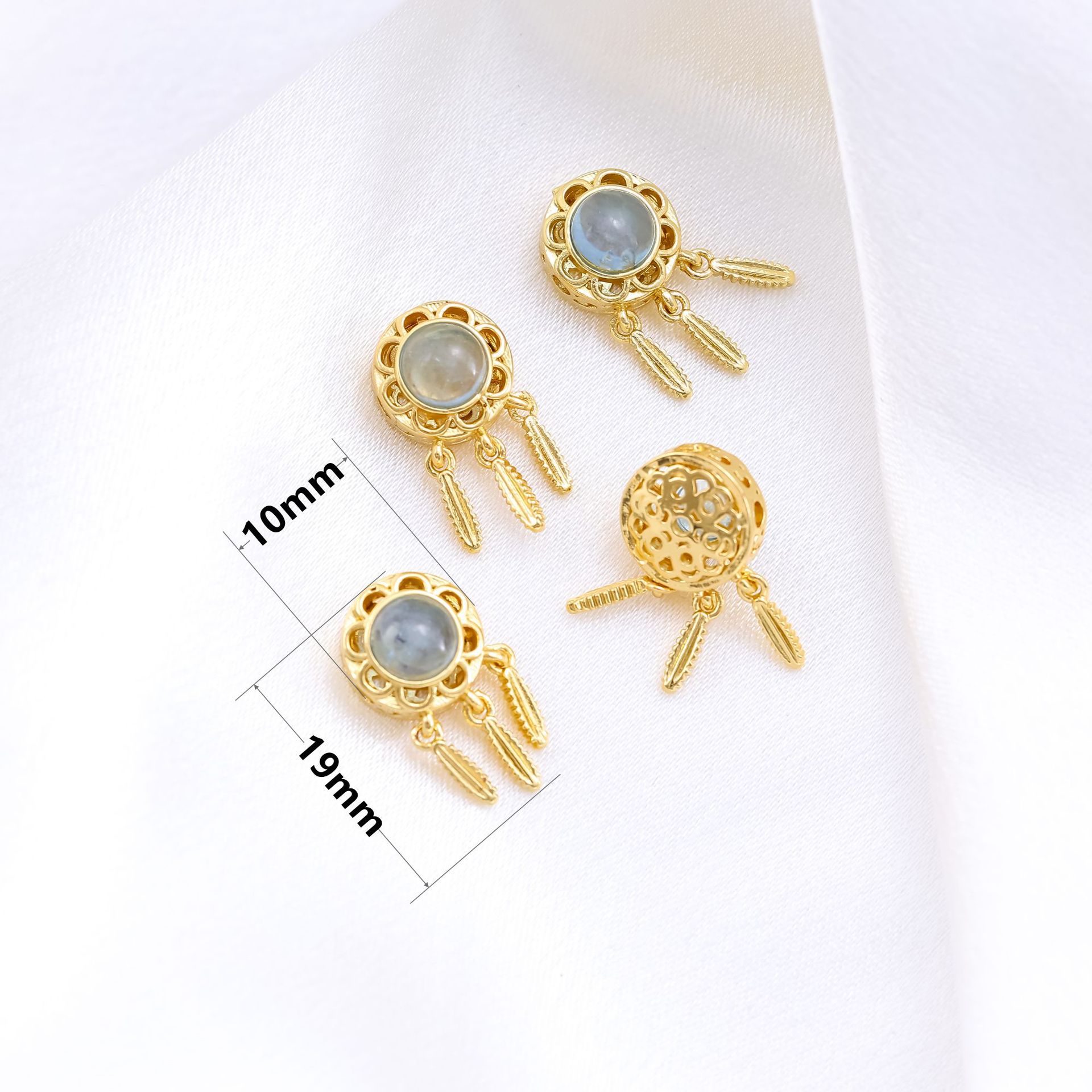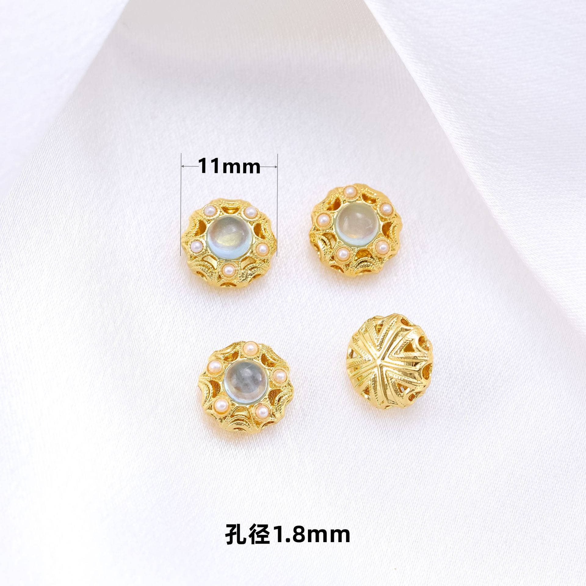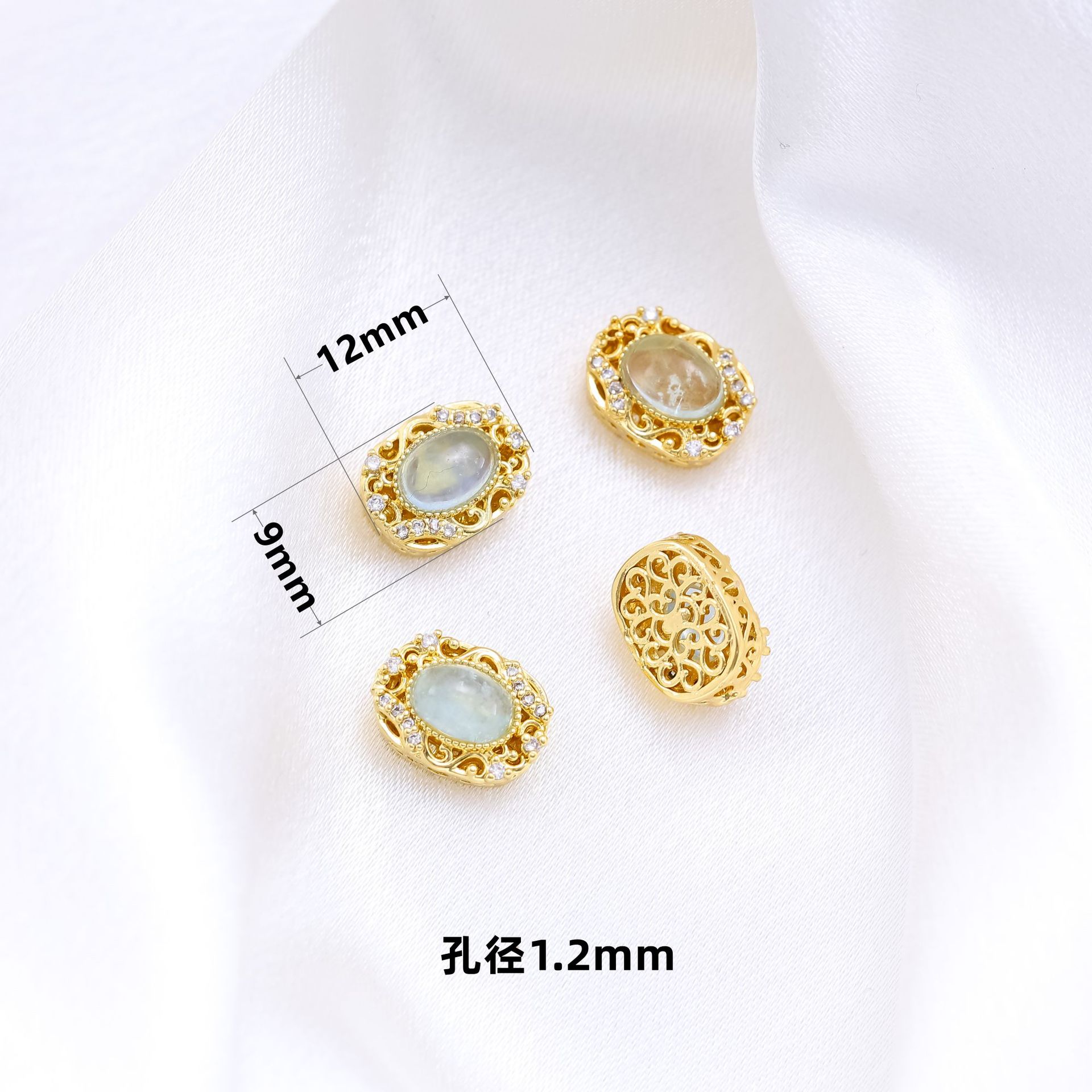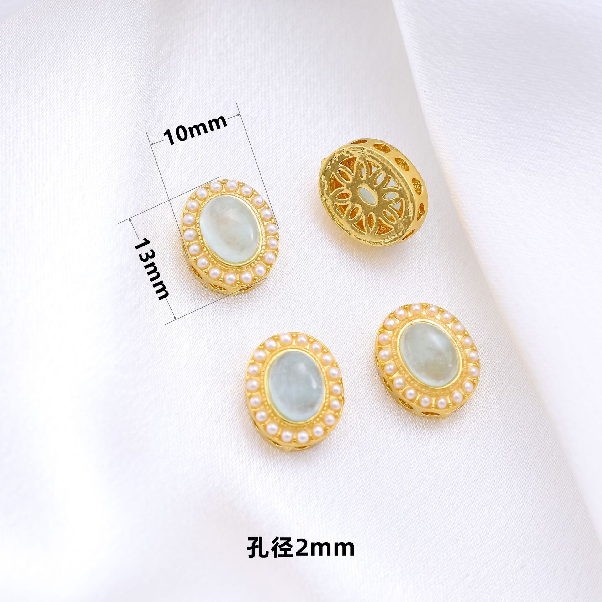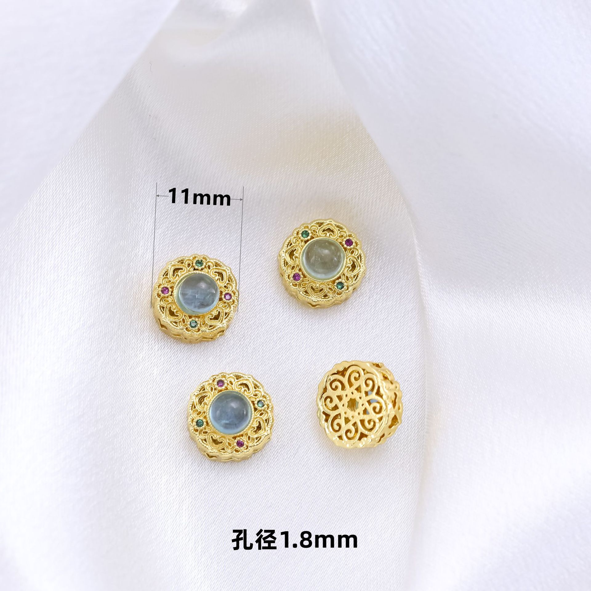 天然海蓝宝魔盒戒面铜镀18K真金镂空饰品配件隔珠diy手串项链配饰