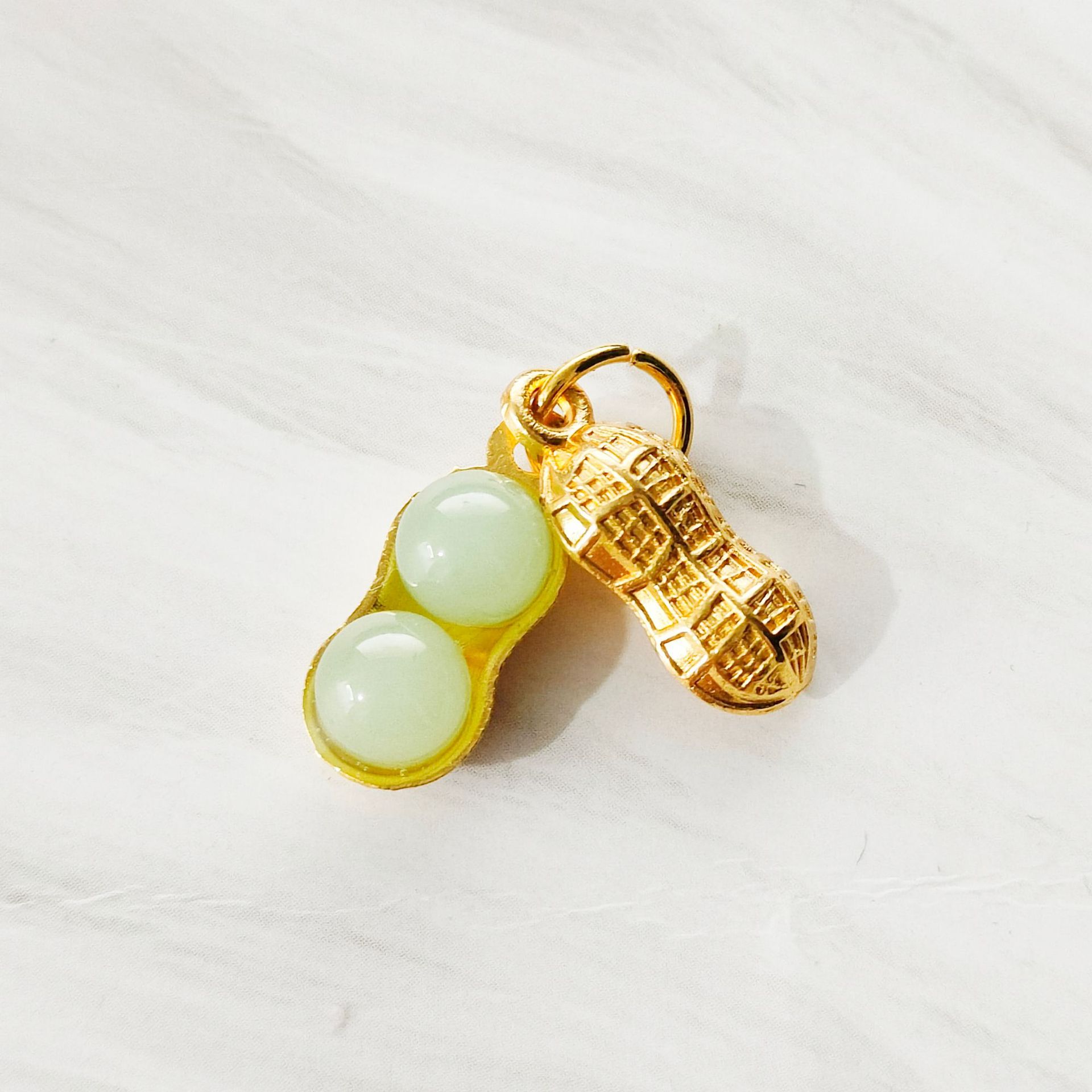 合金花生饰品配件吊坠镶嵌珍珠寓意好事发生diy手链项链配饰挂件