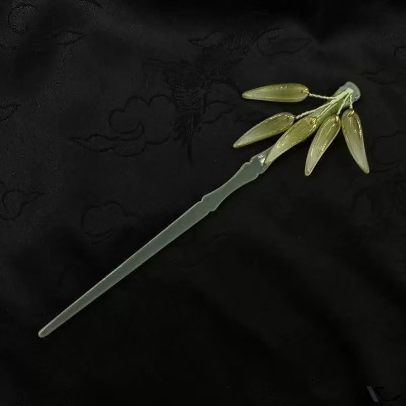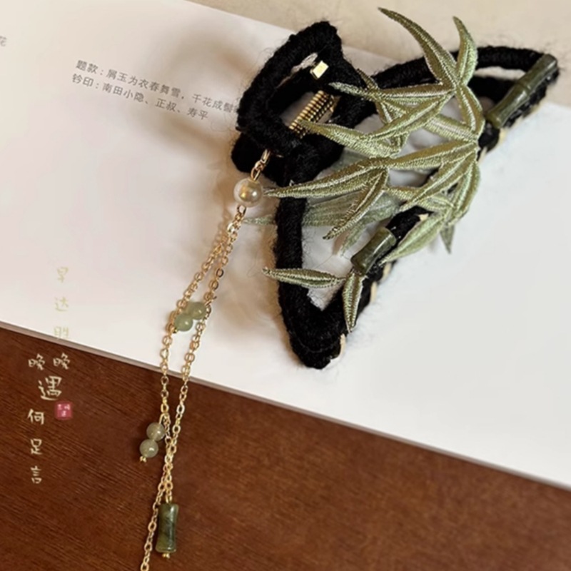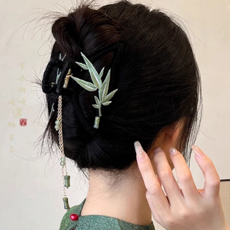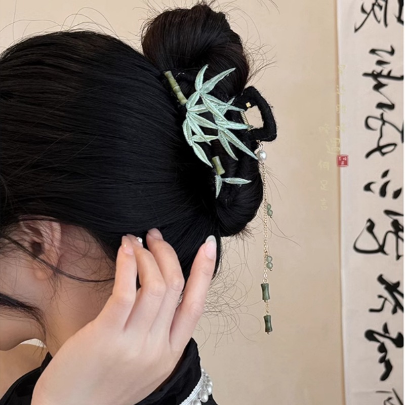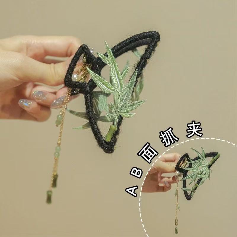 新中式国风竹叶流苏抓夹大号古风发女后脑勺鲨鱼夹高级感汉服头饰