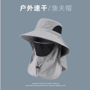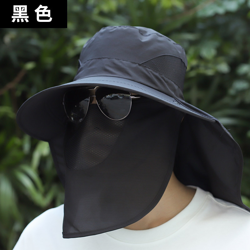 遮阳帽男士纯色防晒帽披肩帽护颈透气时尚休闲防虫户外登山钓鱼帽
