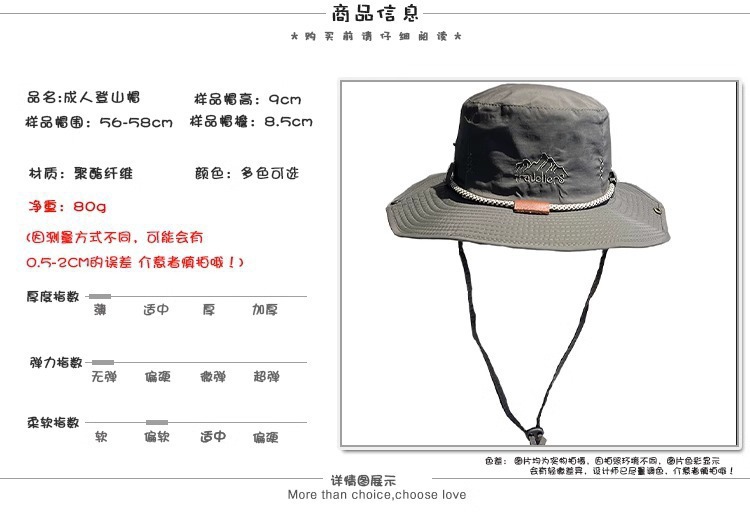 户外透气夏季渔夫帽男女露营登山防晒帽子钓鱼遮阳西部牛仔帽