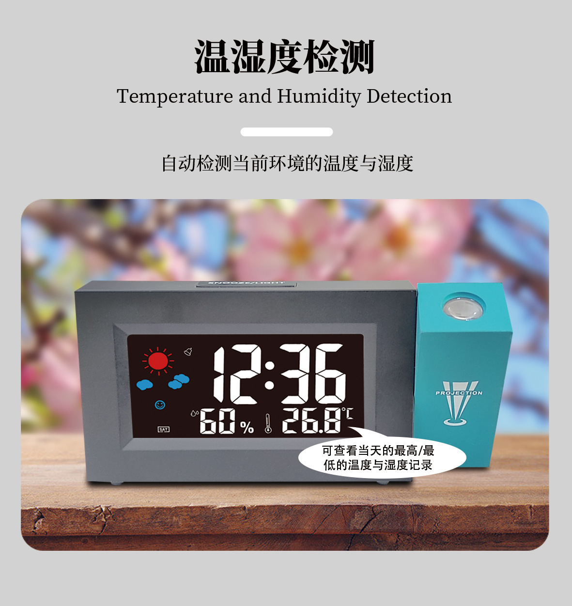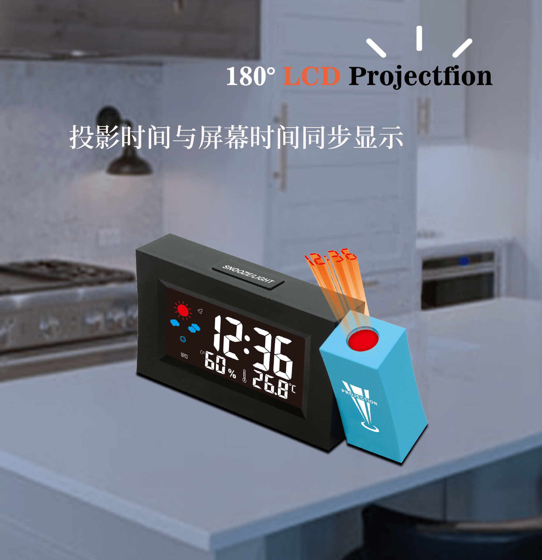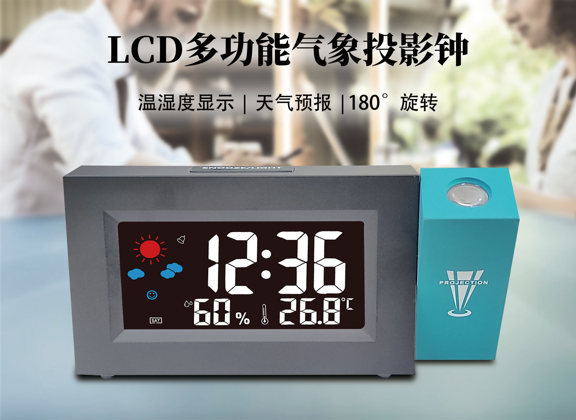 厂家直销电子彩屏气象钟桌面智能天气预报投影钟彩屏旋转电子闹钟