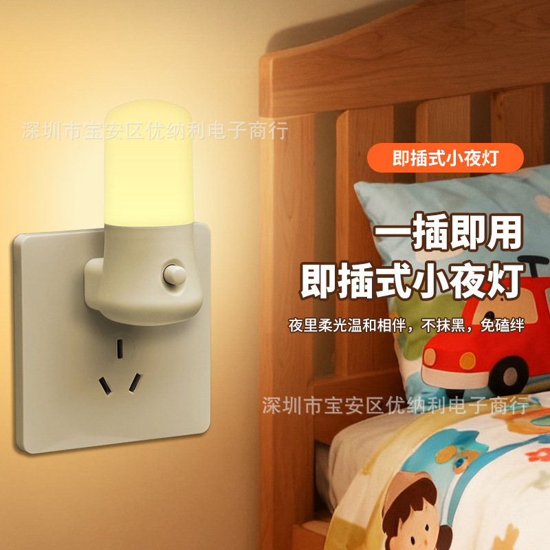 新3W插电带开关LED小夜灯冷暖色客厅卧室睡眠床头灯厂家批发地摊
