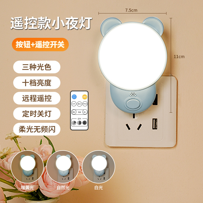 智能语音控制小夜灯卧室睡眠灯声控感应床头灯伴睡灯遥控灯台灯