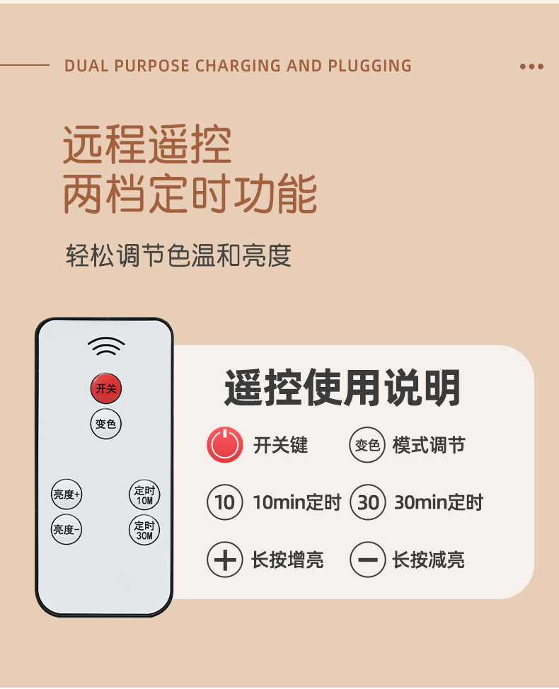新款充电迷你遥控夜间台灯护眼卧室床头睡眠灯usb小夜灯网红爆款