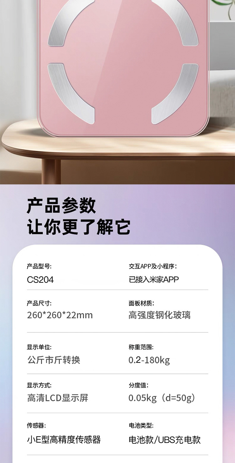 体脂秤家用体重秤精准电子秤人体称成人小型充电款已接入米家APP