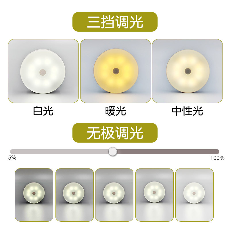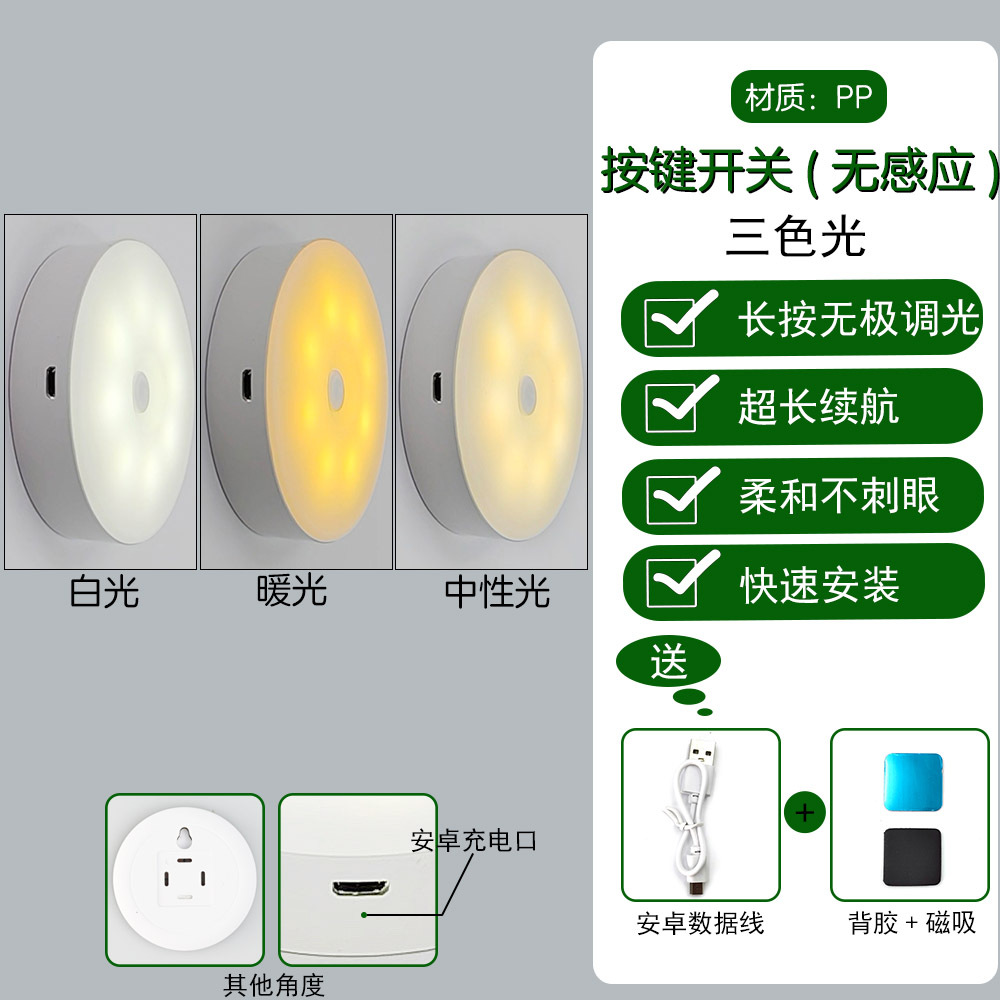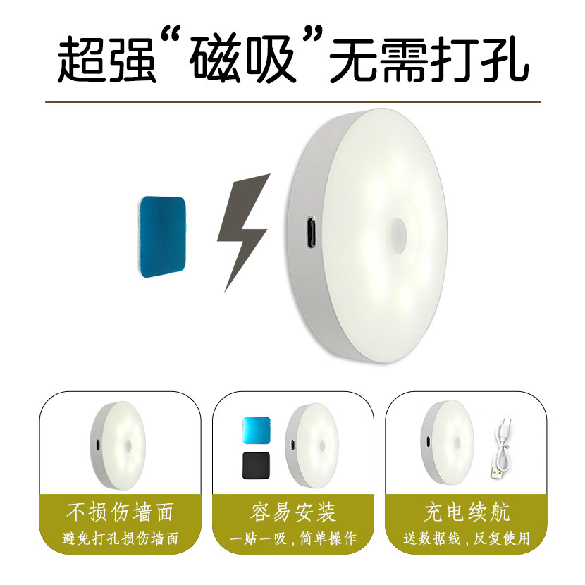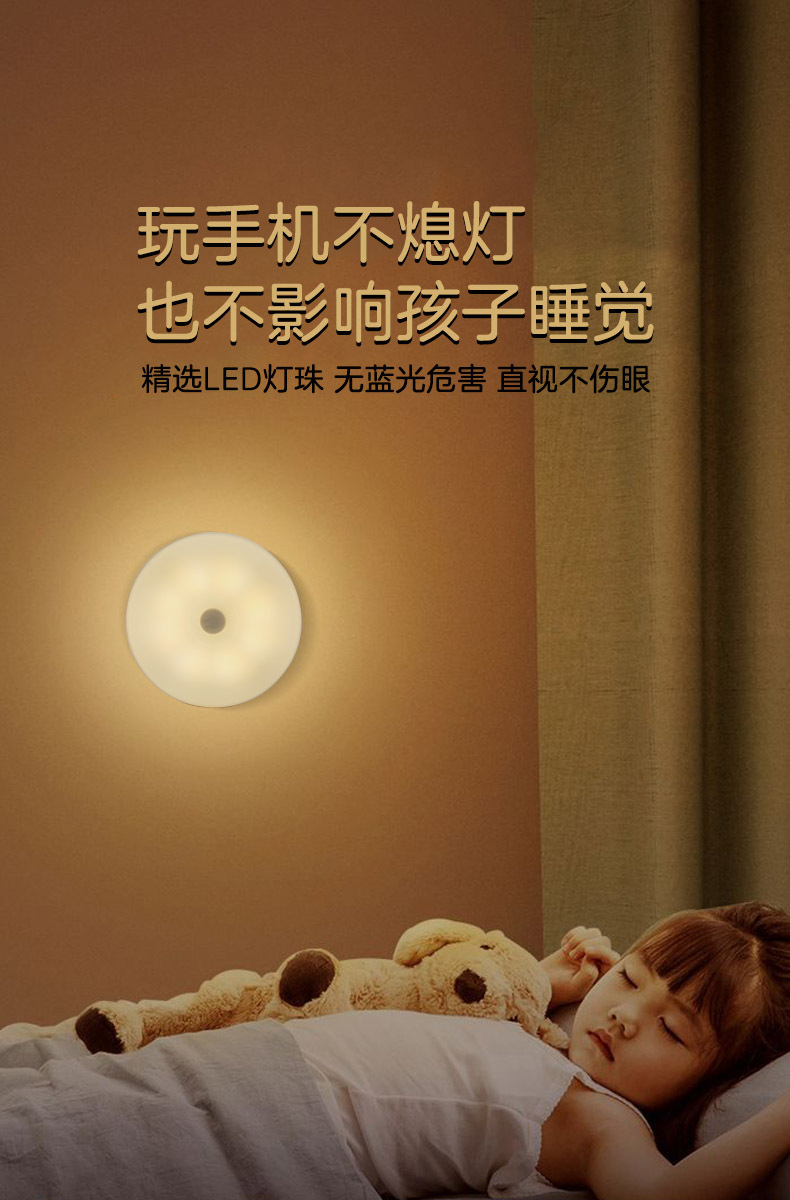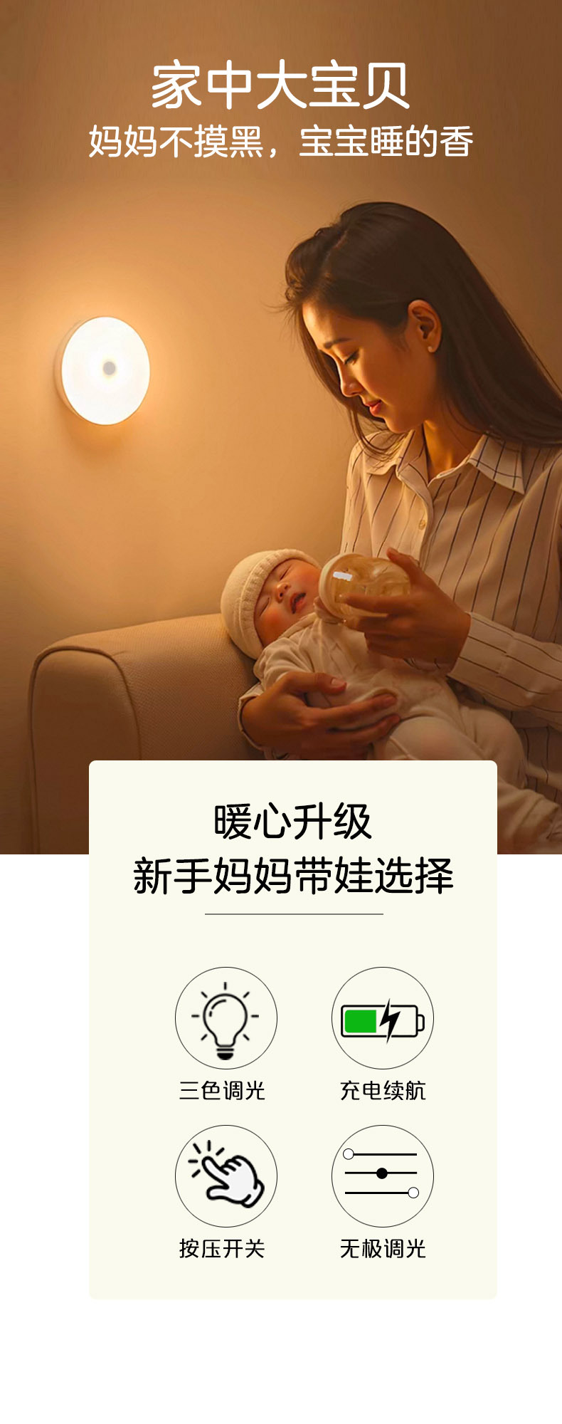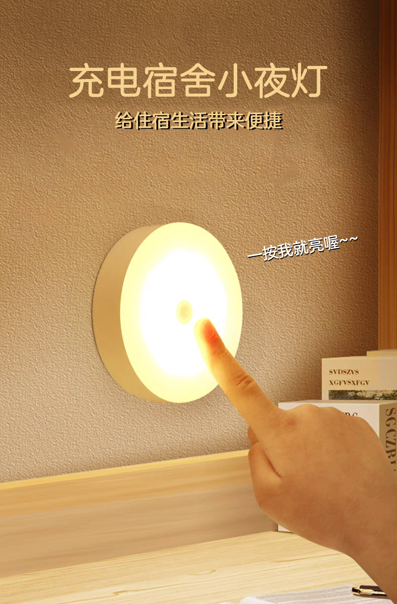 按键无感应LED灯磁吸圆形小夜灯卧室床头婴儿孕妈妈喂奶宿舍夜灯