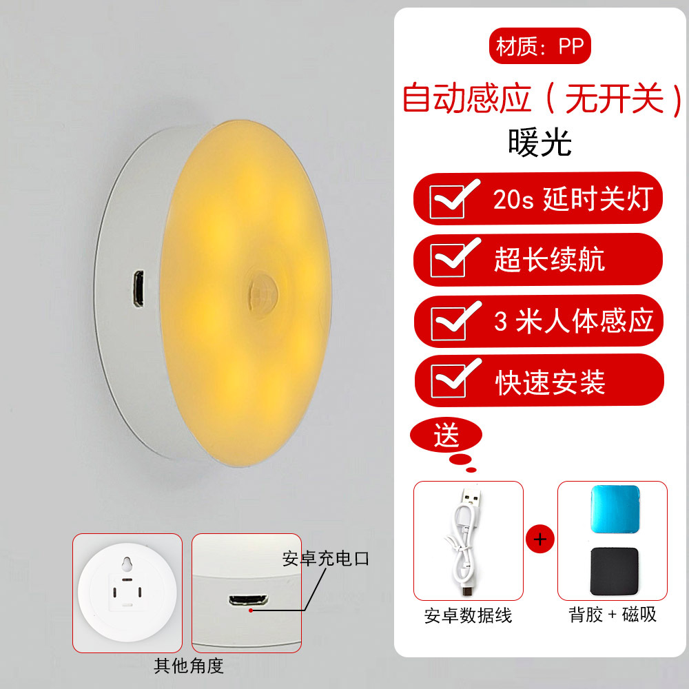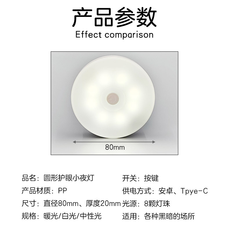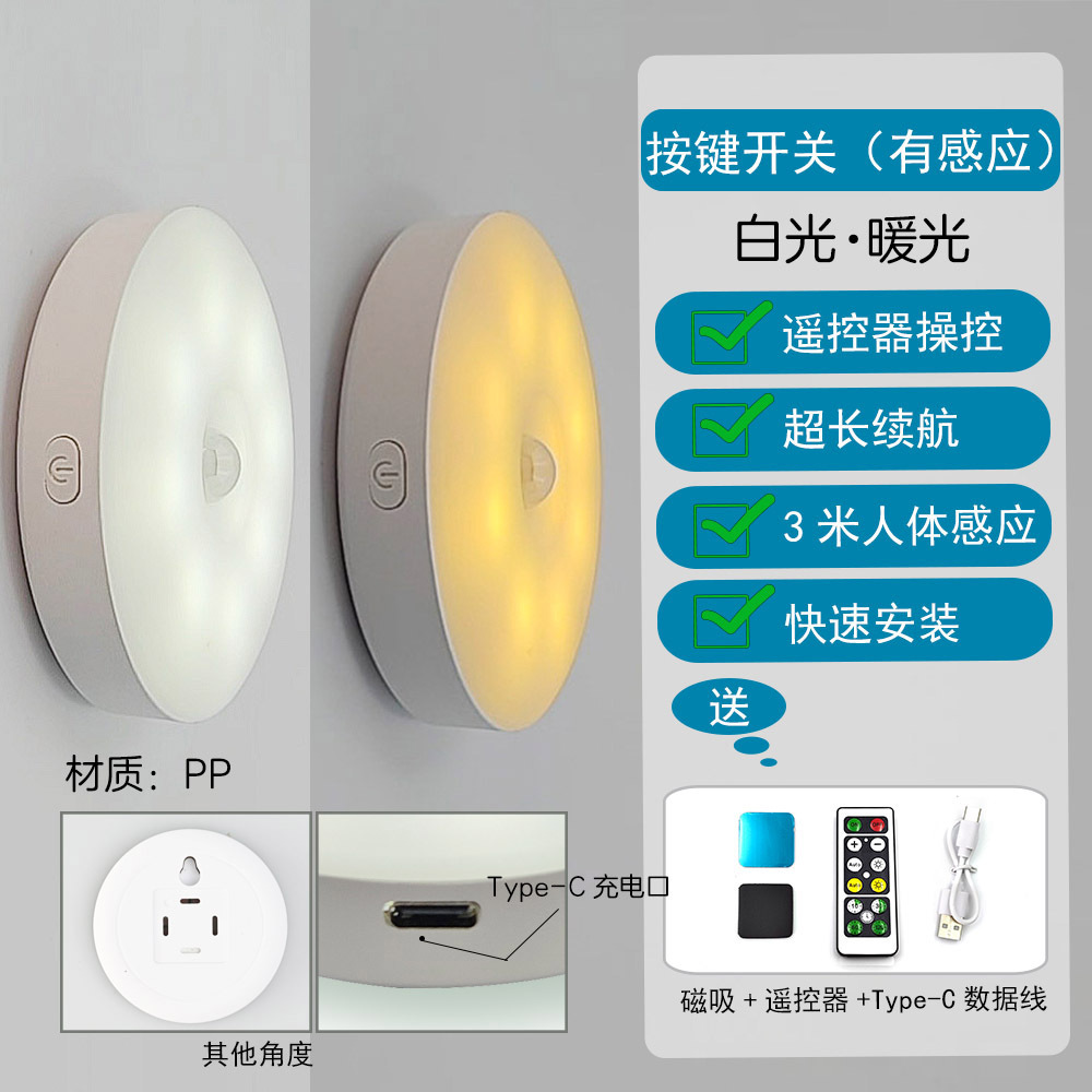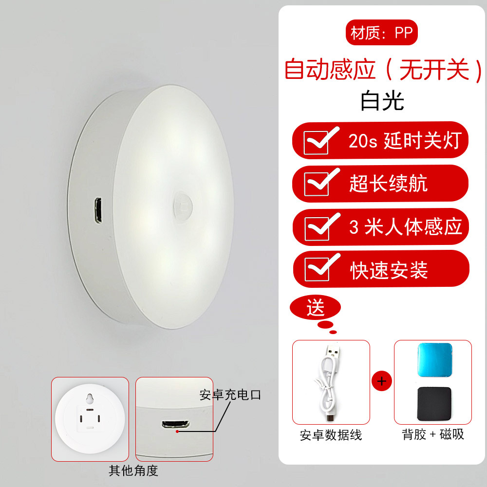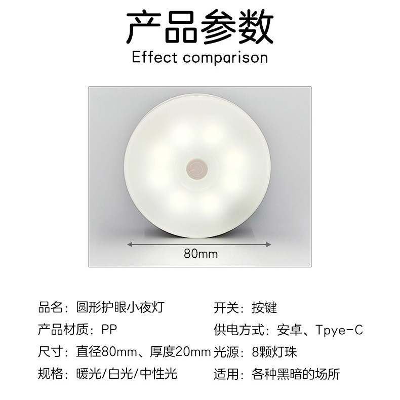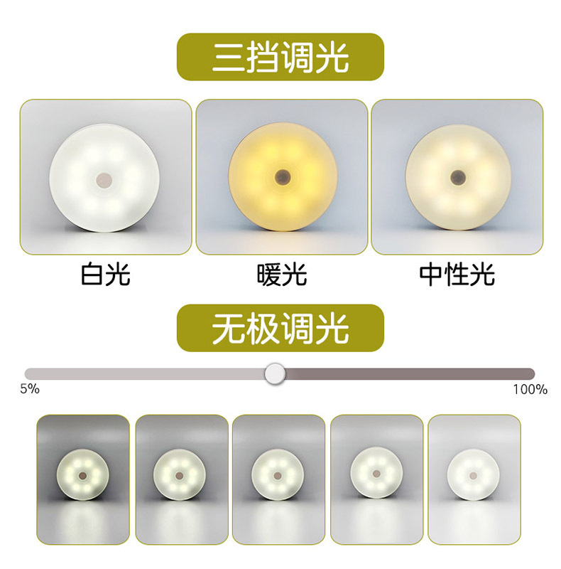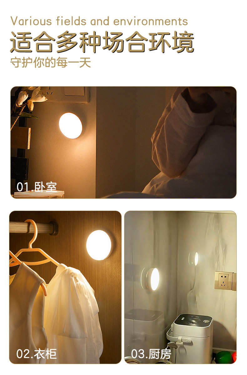按键无感应LED灯磁吸圆形小夜灯卧室床头婴儿孕妈妈喂奶宿舍夜灯